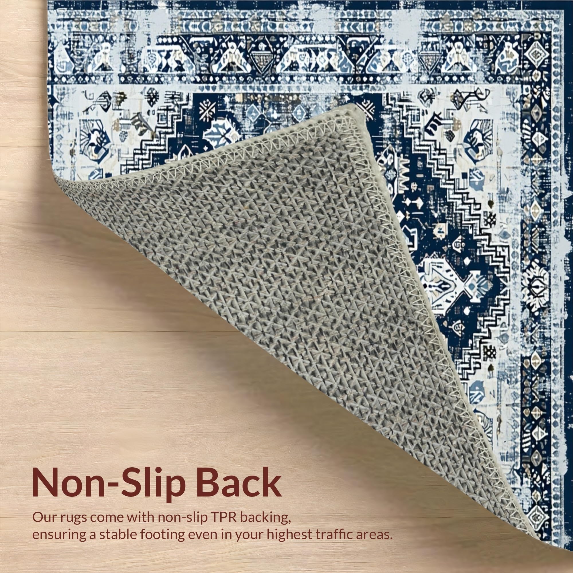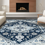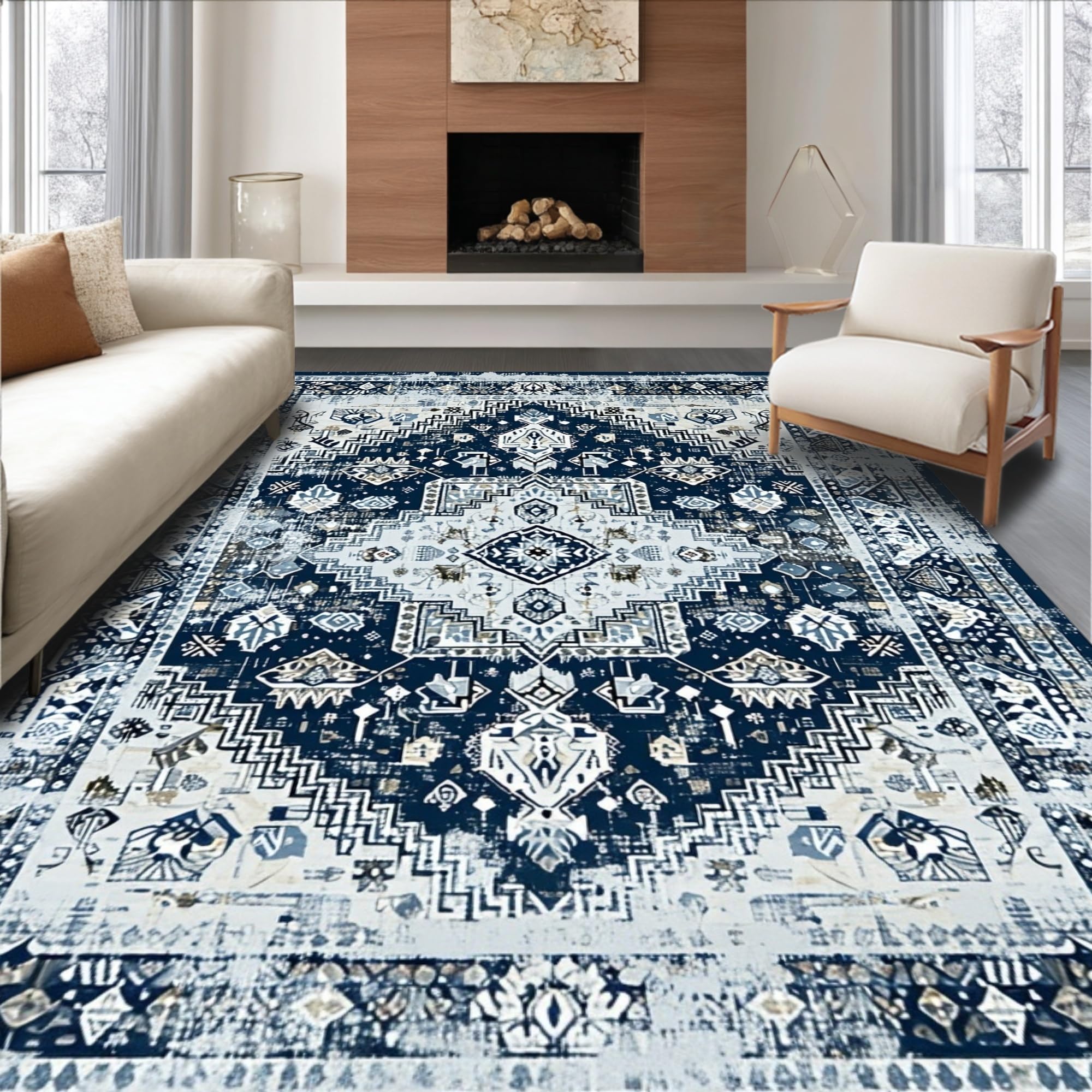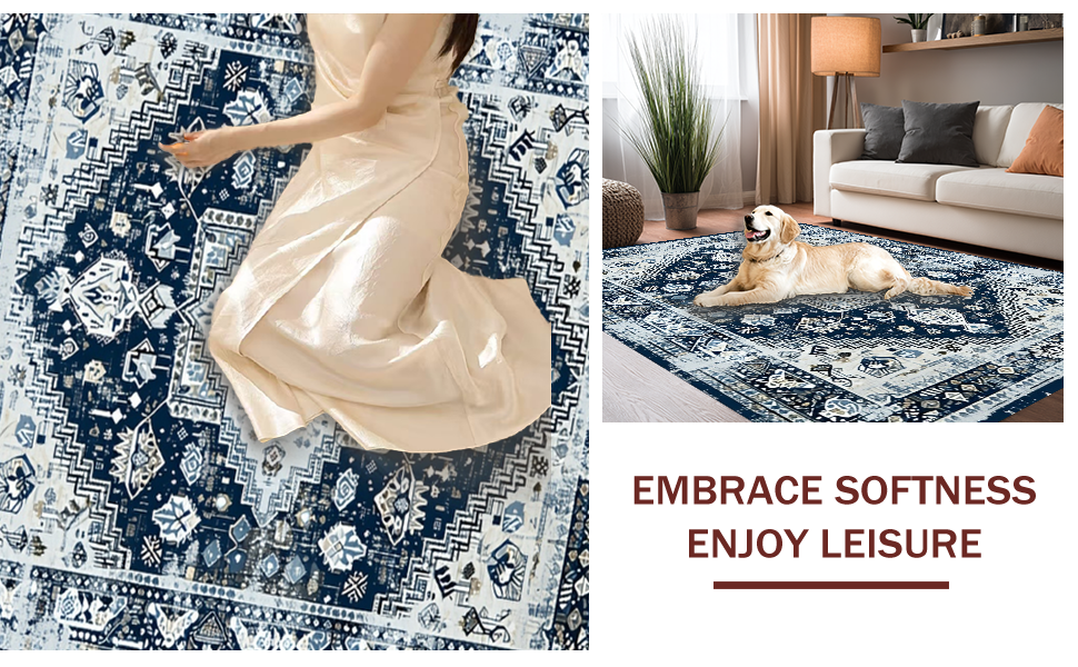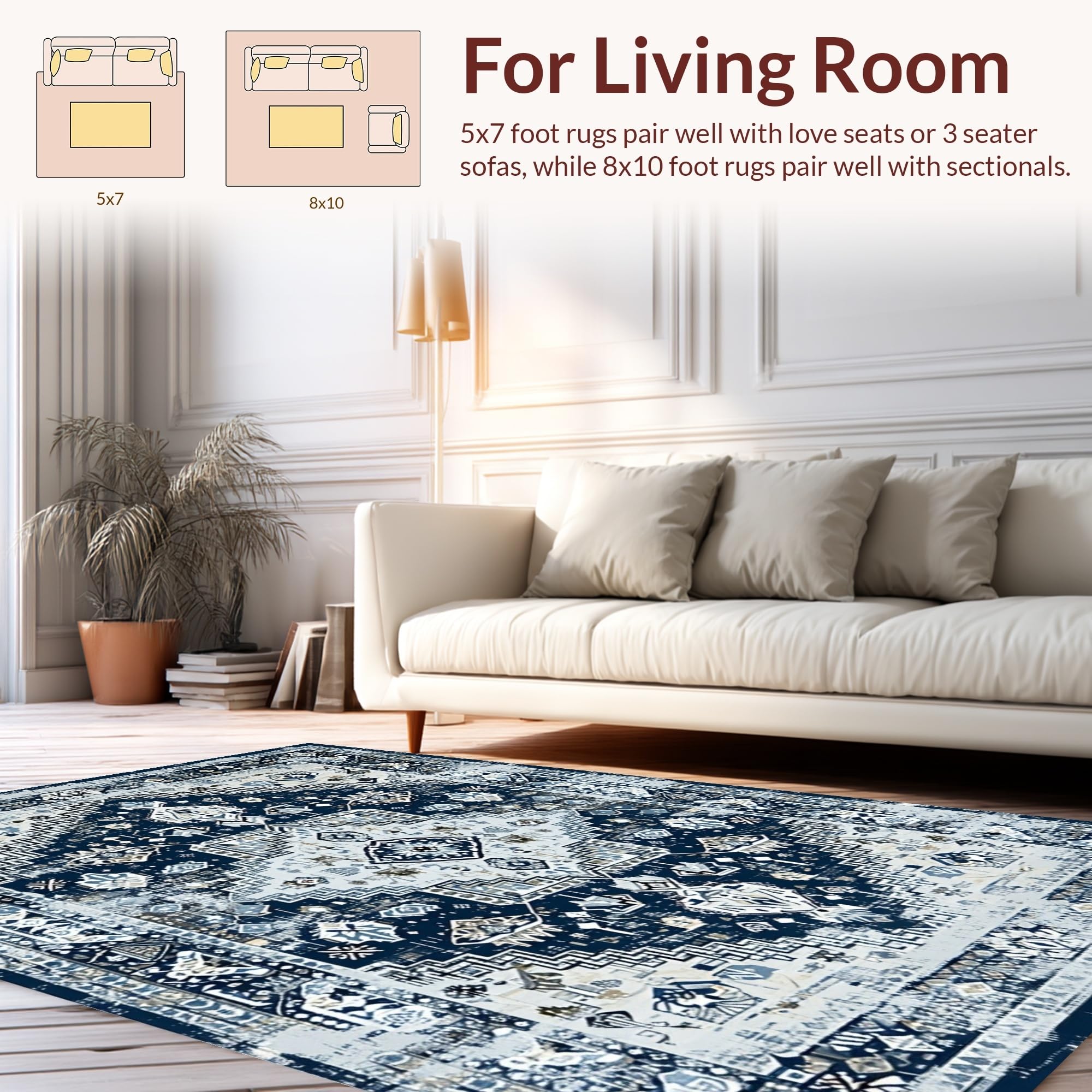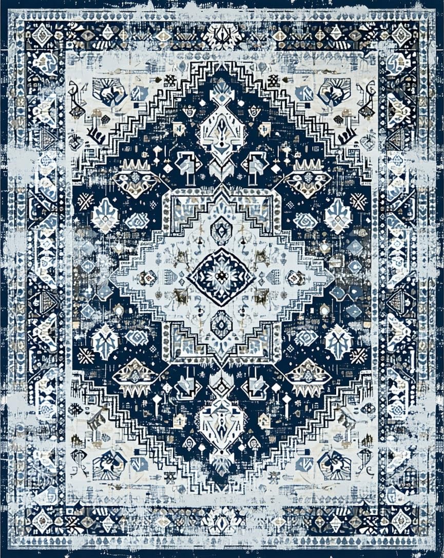Ultra Soft Area Rug, Non Slip, Stain Resistant, Washable Area Rugs for Living Room, Bedroom, Luxurious Light Grey Geometric Design(Blue) Overview: