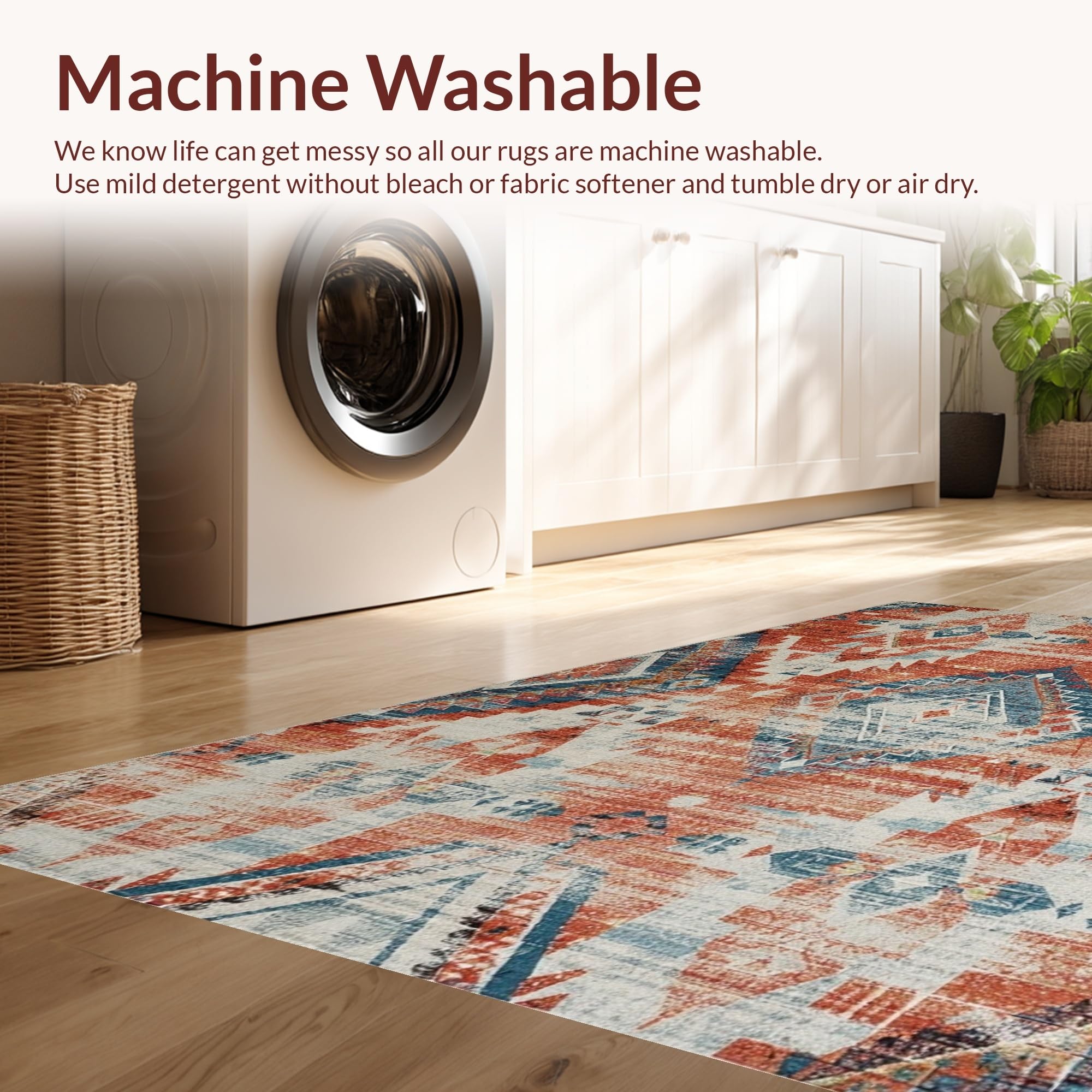 - Machine Washable: Our rugs can be easily thrown in the wash machine.