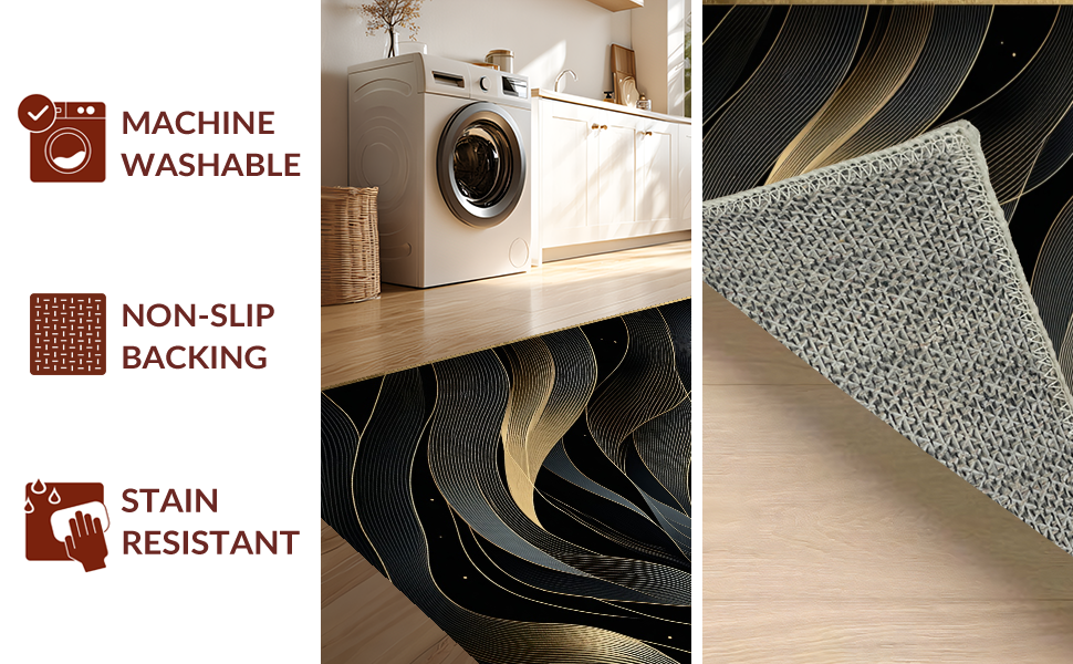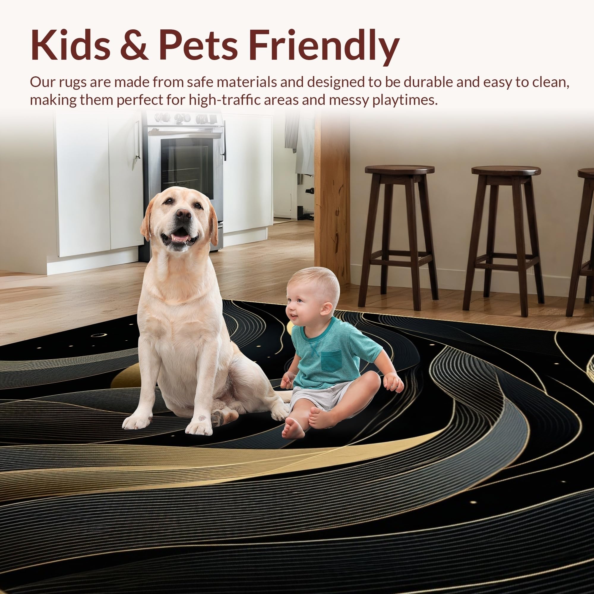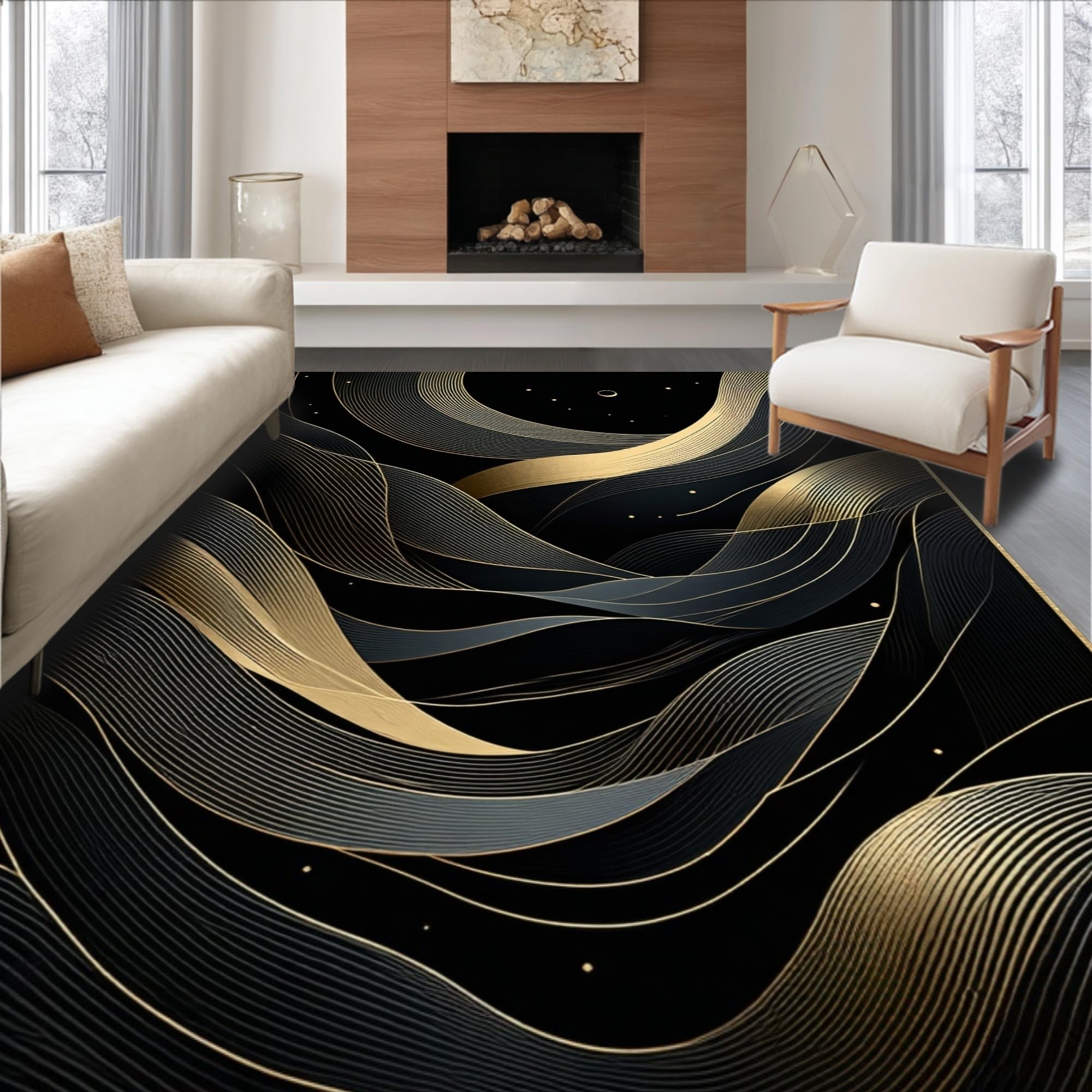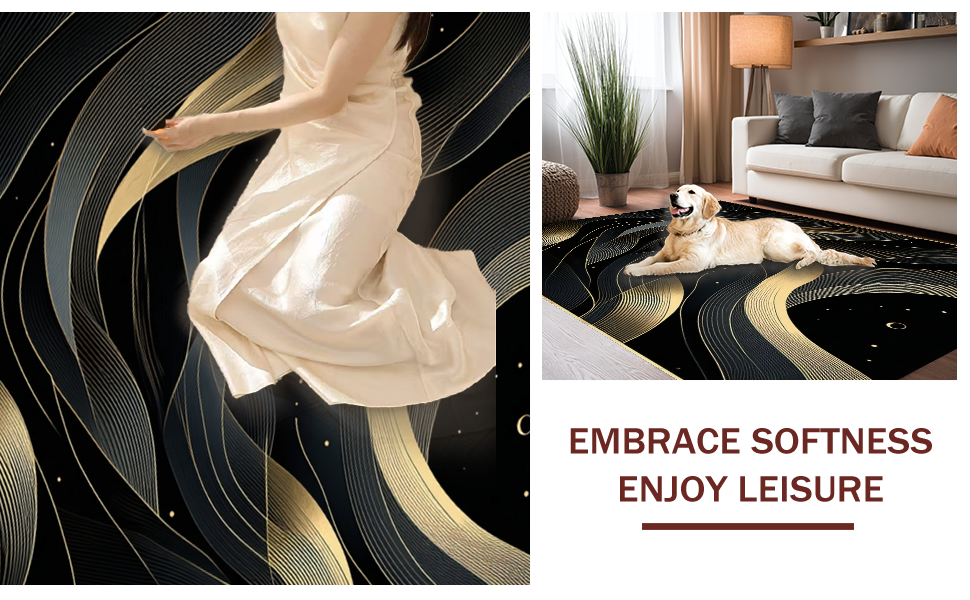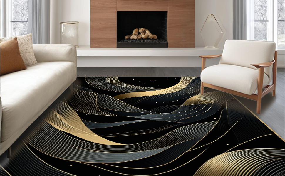 Ultra Soft Area Rug, Non Slip, Stain Resistant, Washable Area Rugs for Living Room, Bedroom, Luxurious Minimalist Textured Swirls(Black) Overview: