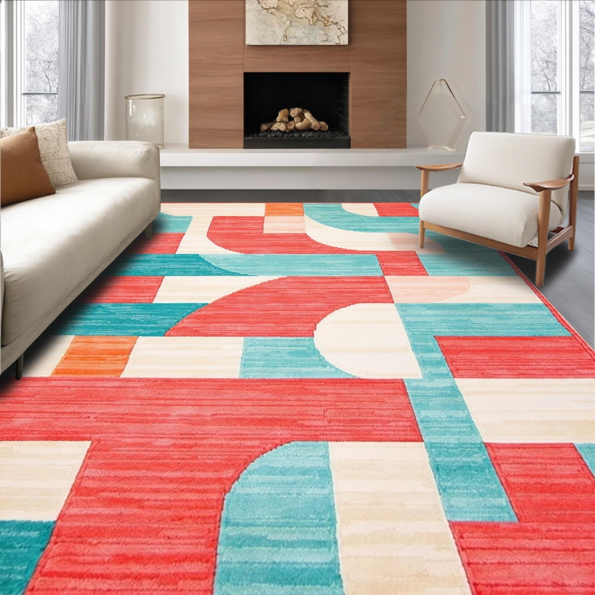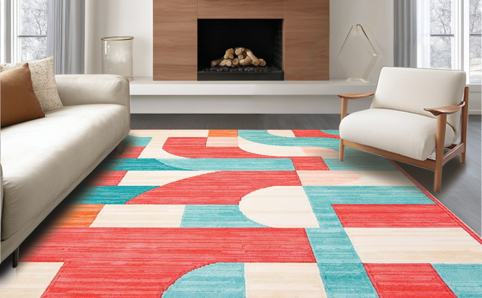 Ultra Soft Area Rug, Non Slip, Stain Resistant, Washable Area Rugs for Living Room, Bedroom, Luxurious Modern Ombre Texture(Red) Overview: