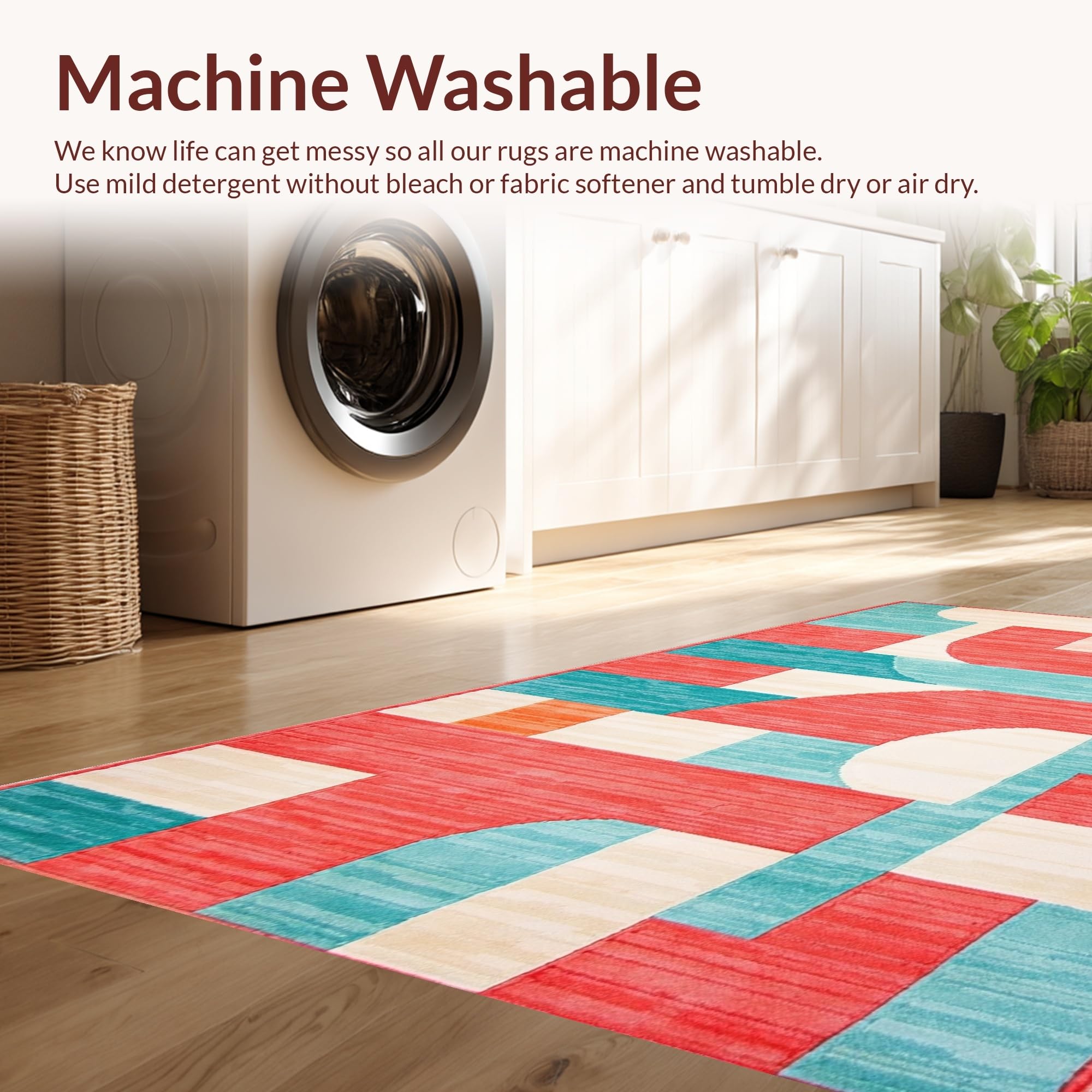 - Machine Washable: Our rugs can be easily thrown in the wash machine.