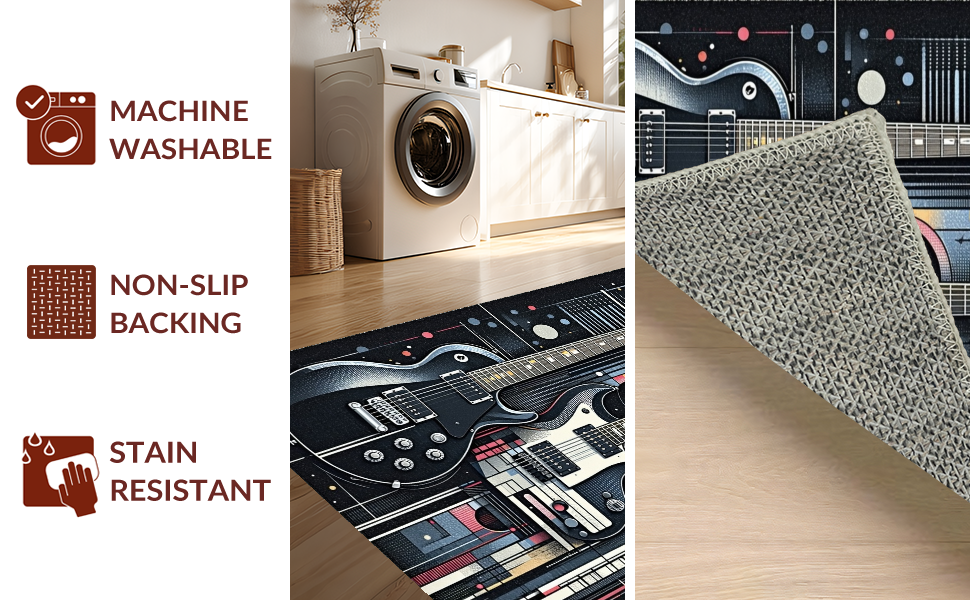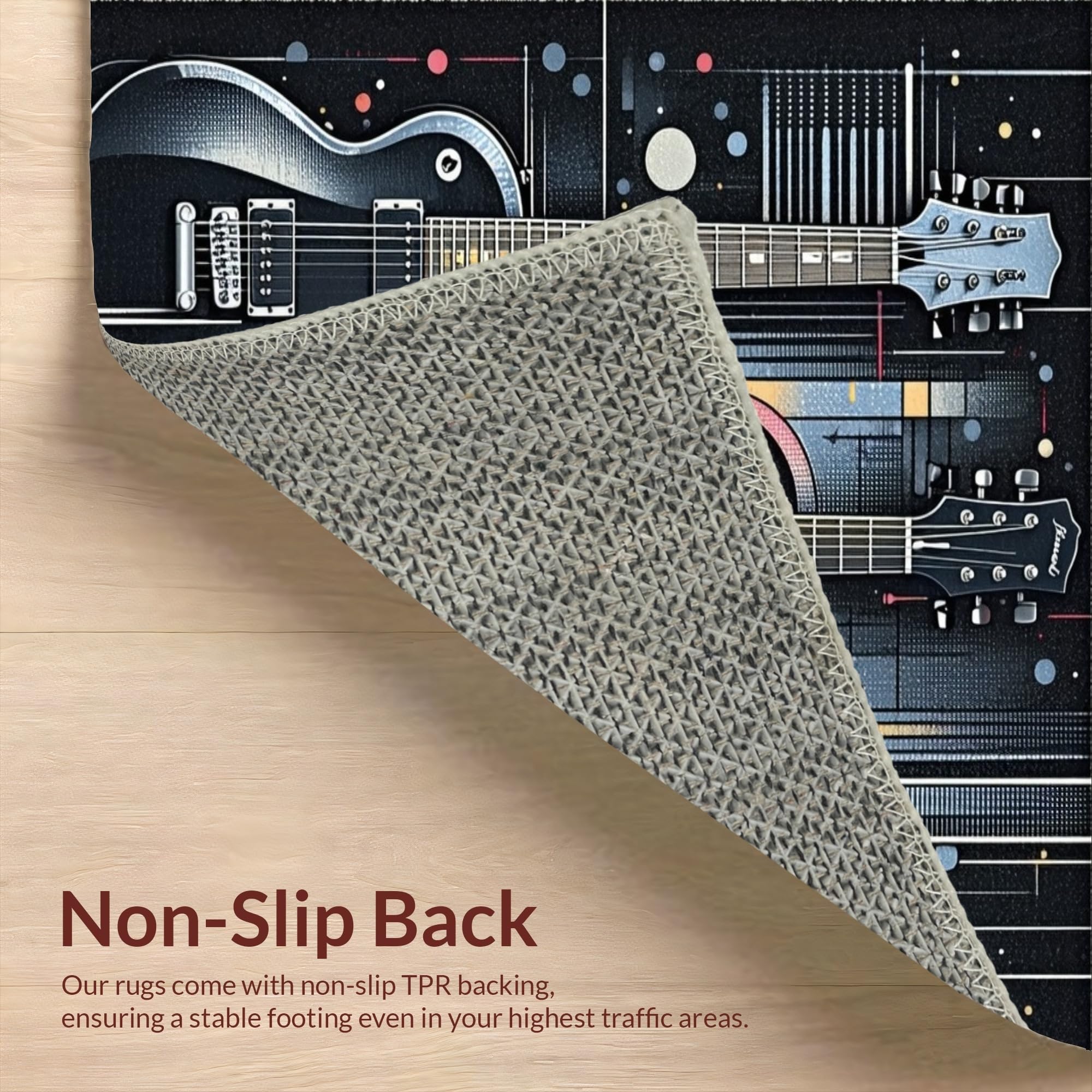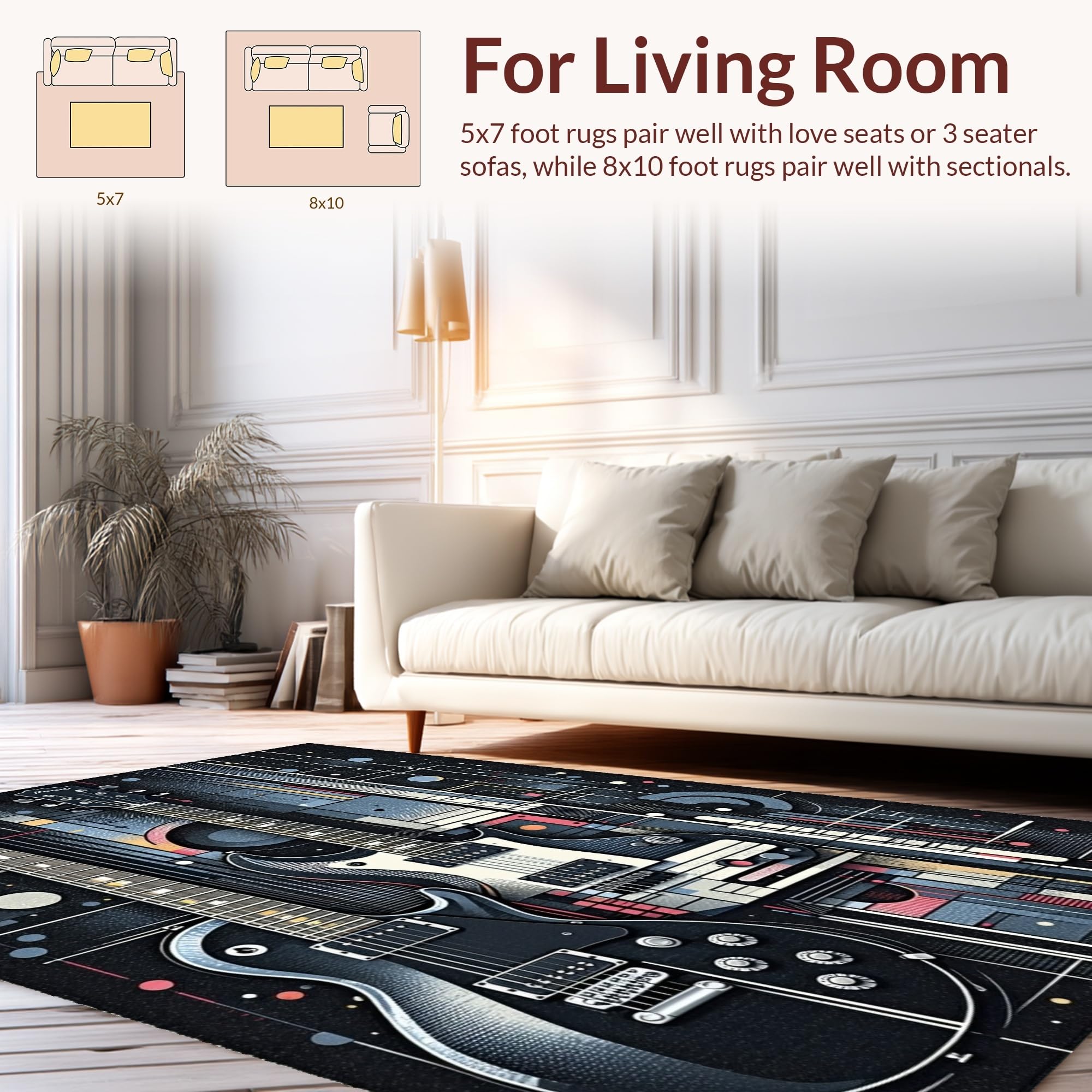 Ultra Soft Area Rug, Non Slip, Stain Resistant, Washable Area Rugs for Living Room, Bedroom, Luxurious Modernist Music Expression(Black) Overview:
