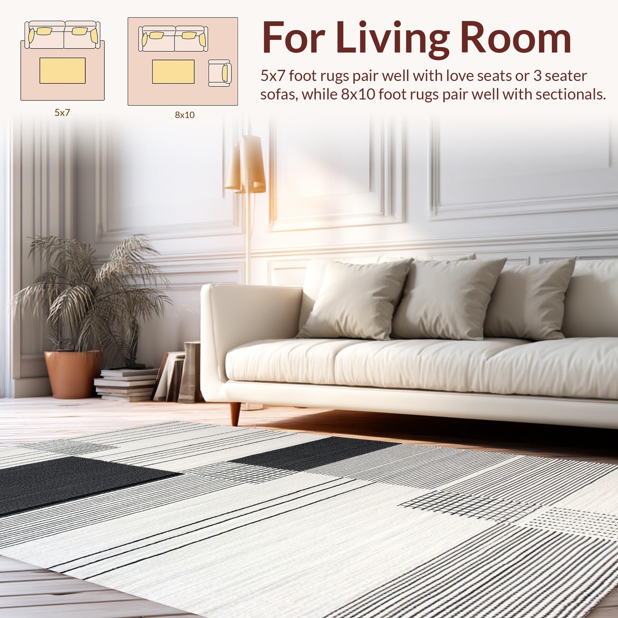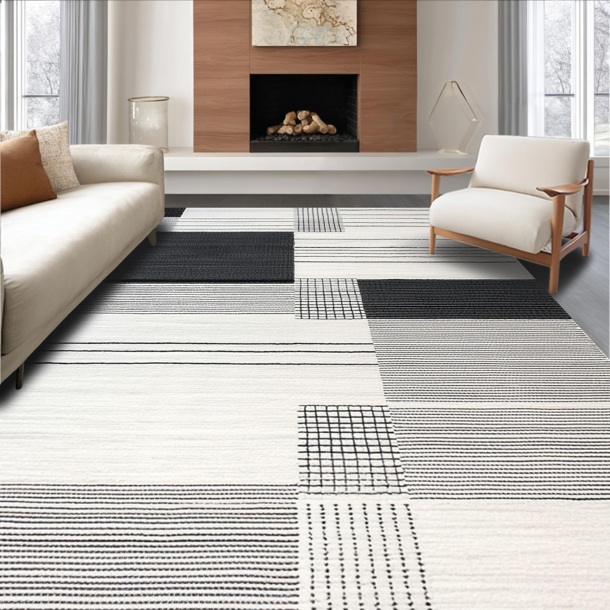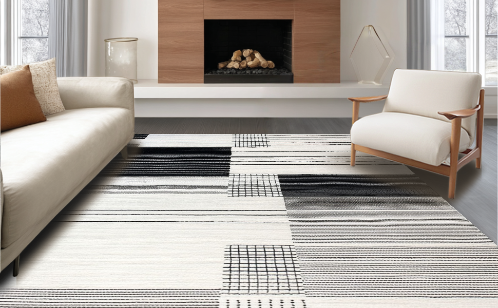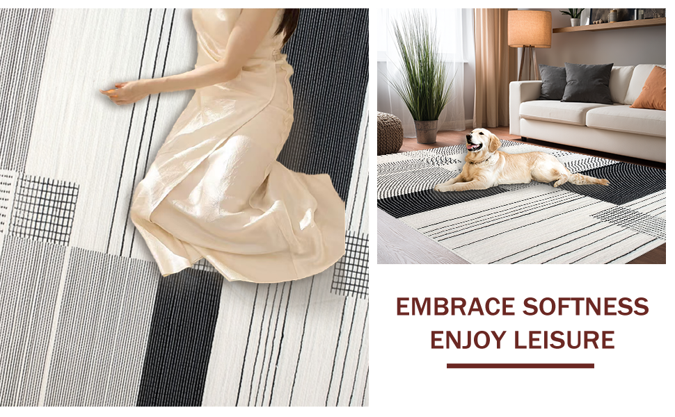 Ultra Soft Area Rug, Non Slip, Stain Resistant, Washable Area Rugs for Living Room, Bedroom, Luxurious Monochrome Flowing Patterns(Black) Overview: