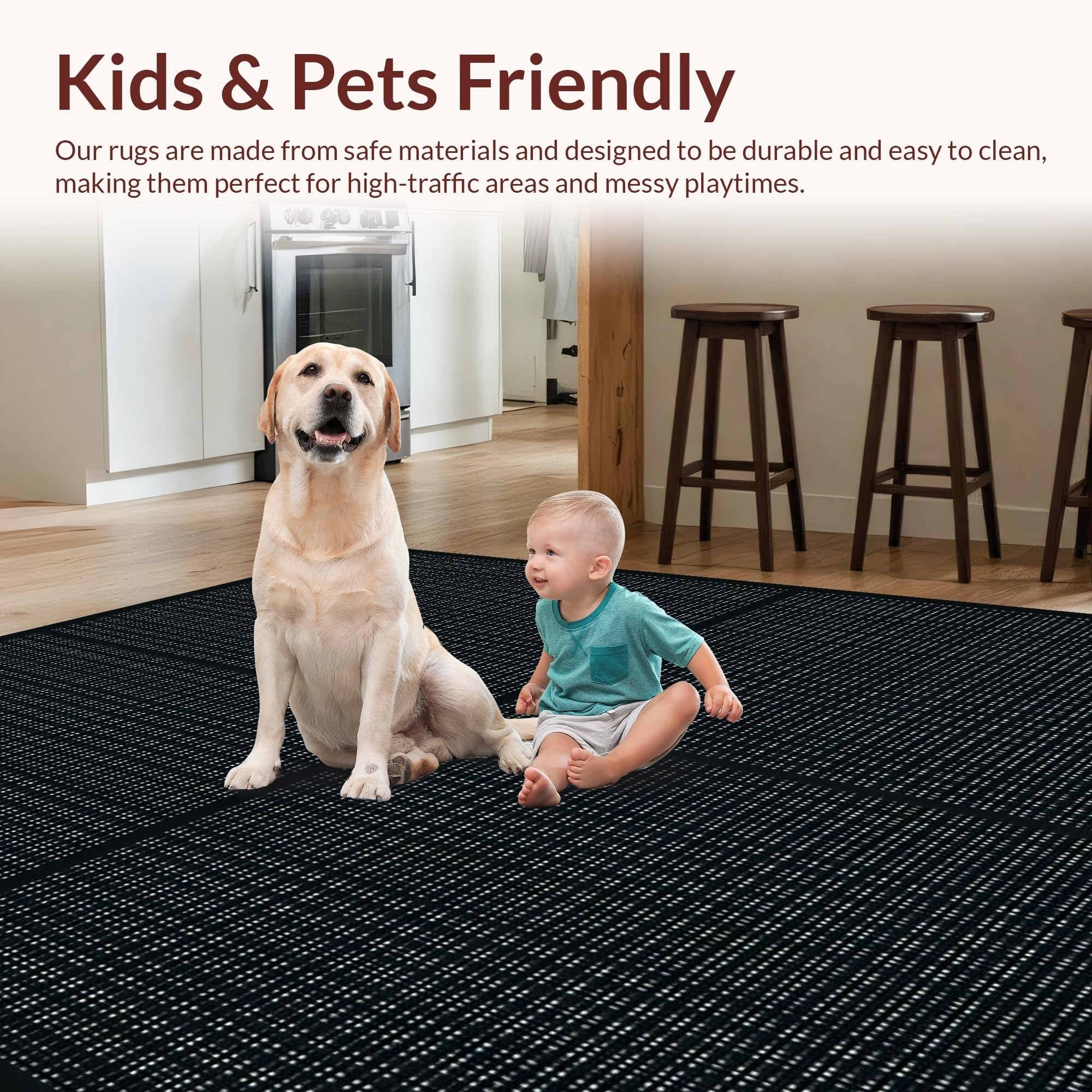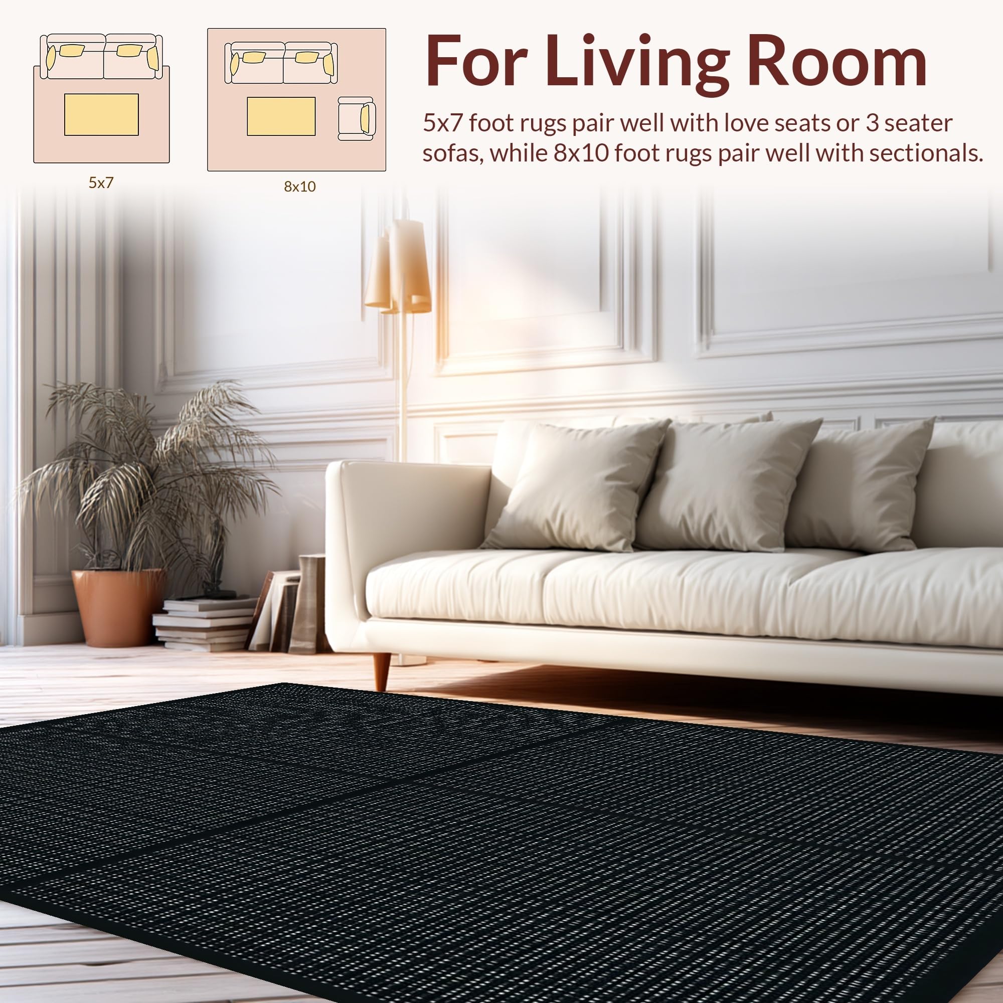 Ultra Soft Area Rug, Non Slip, Stain Resistant, Washable Area Rugs for Living Room, Bedroom, Luxurious Monochrome Furry Texture(Black) Overview: