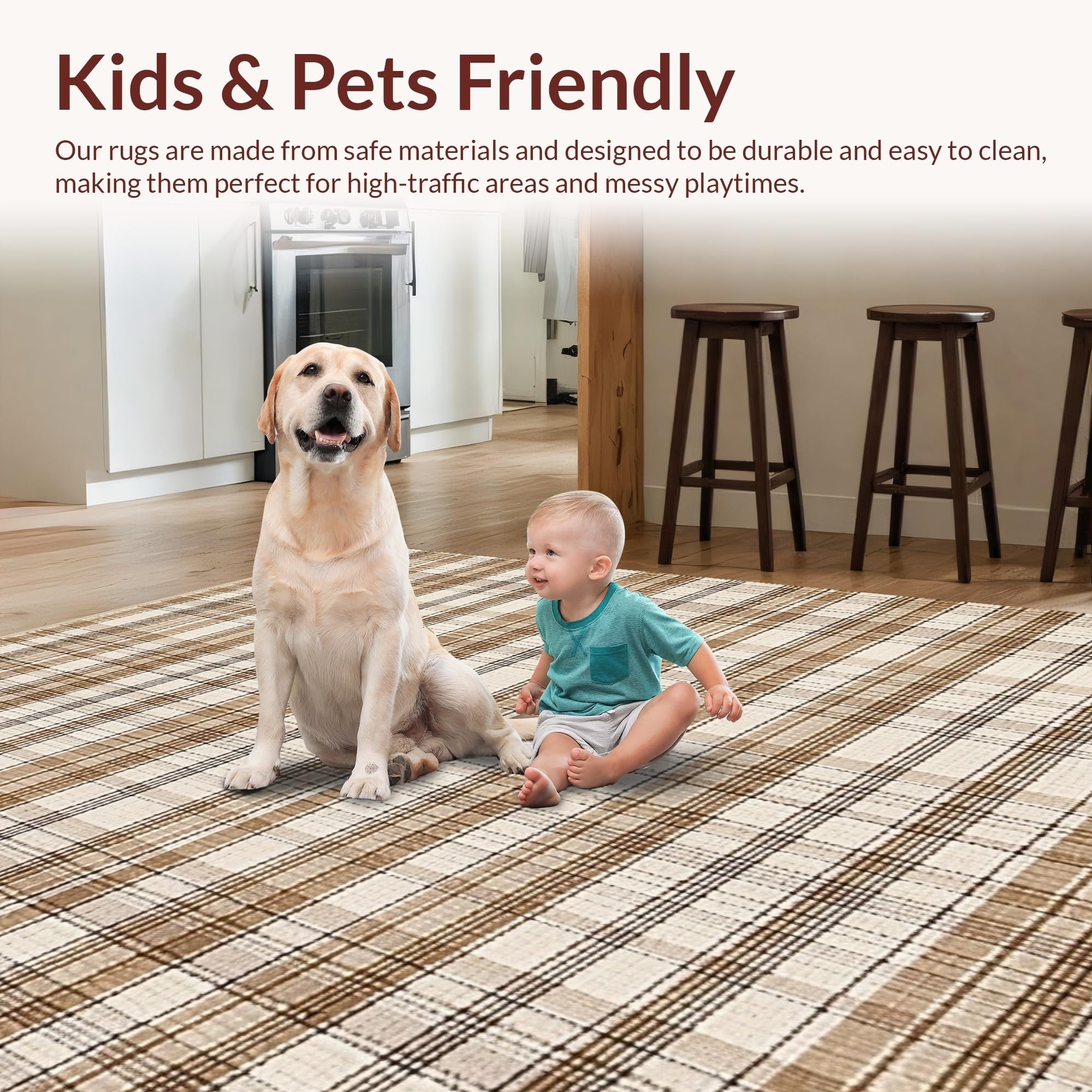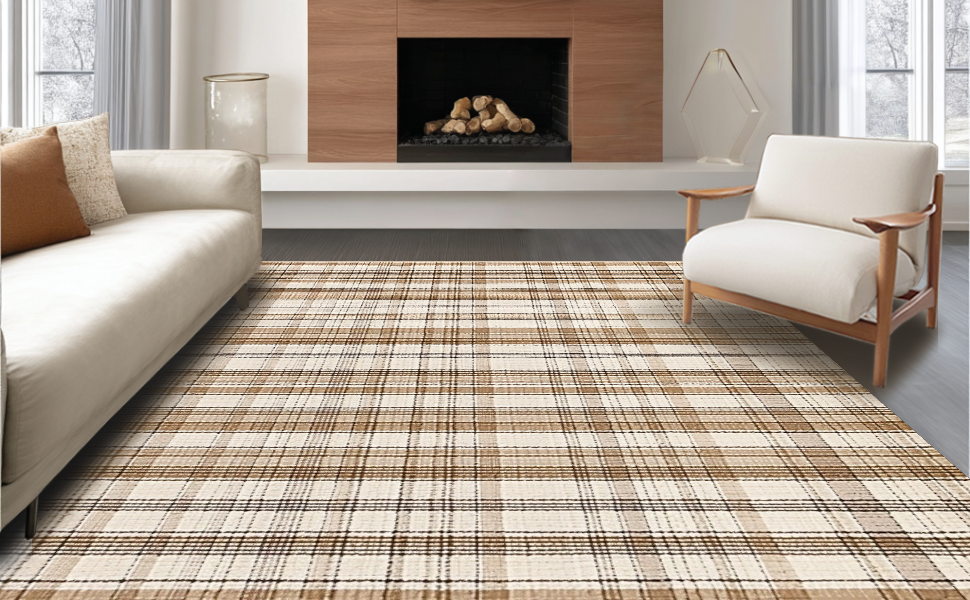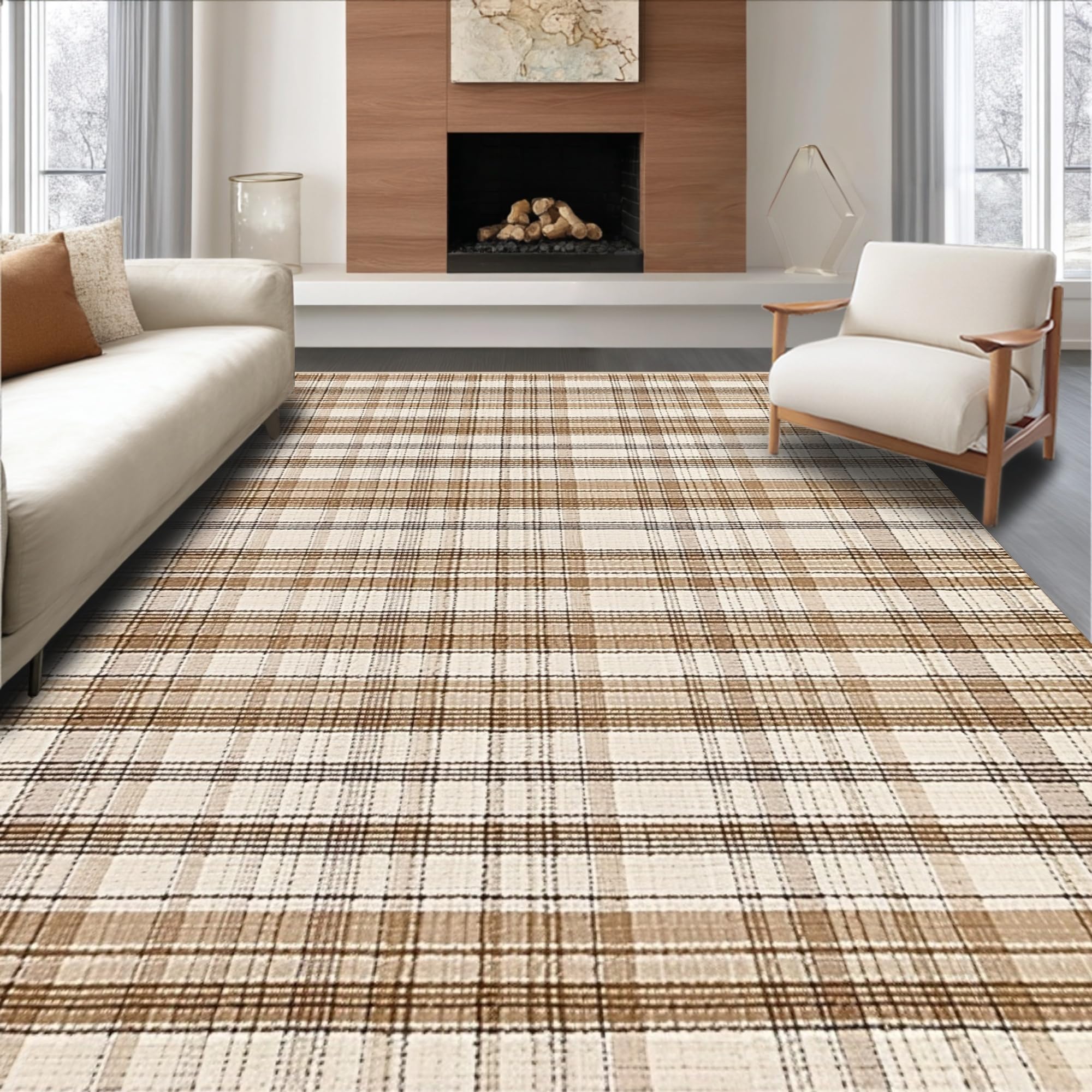 Ultra Soft Area Rug, Non Slip, Stain Resistant, Washable Area Rugs for Living Room, Bedroom, Luxurious Monochrome Geometric Theme(Beige) Overview: