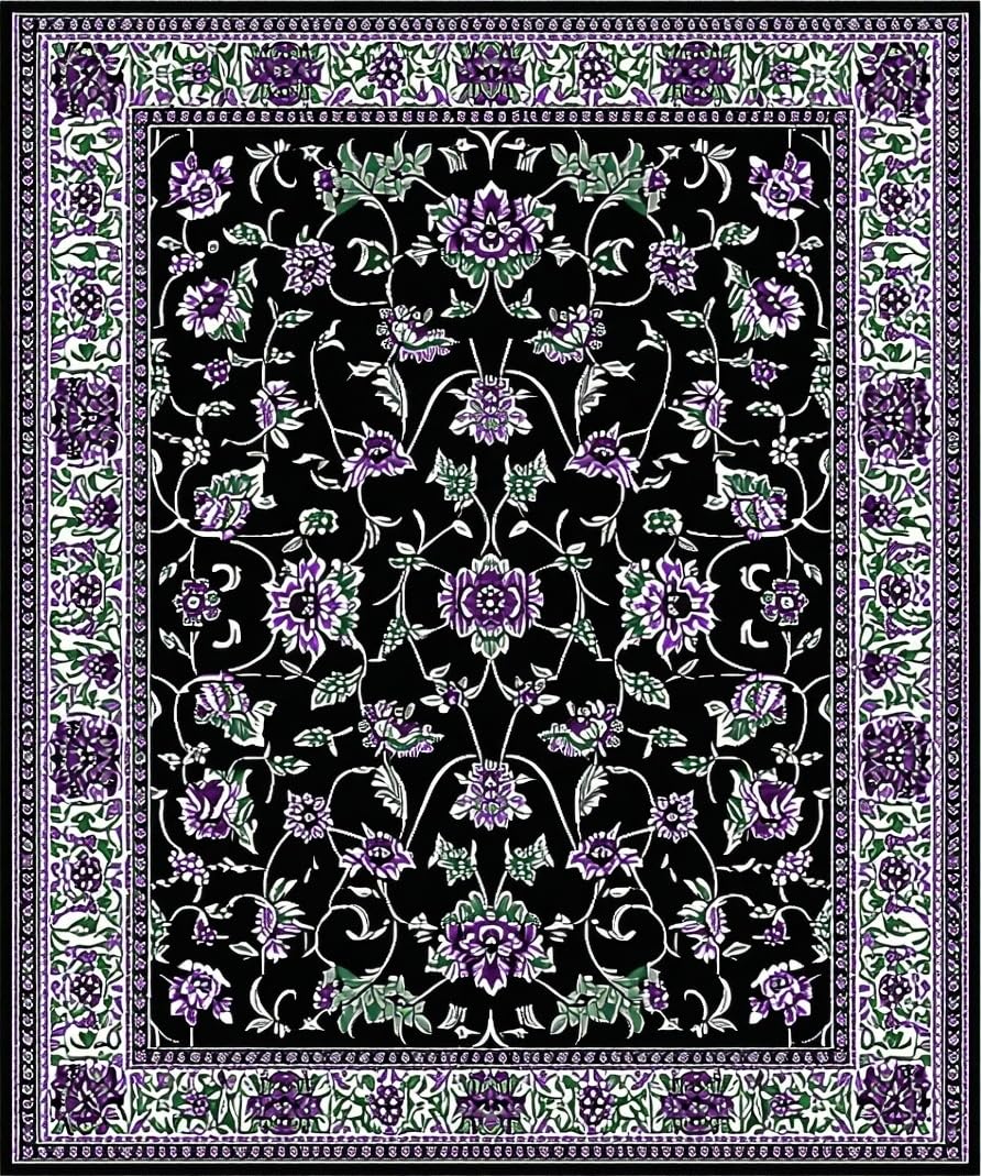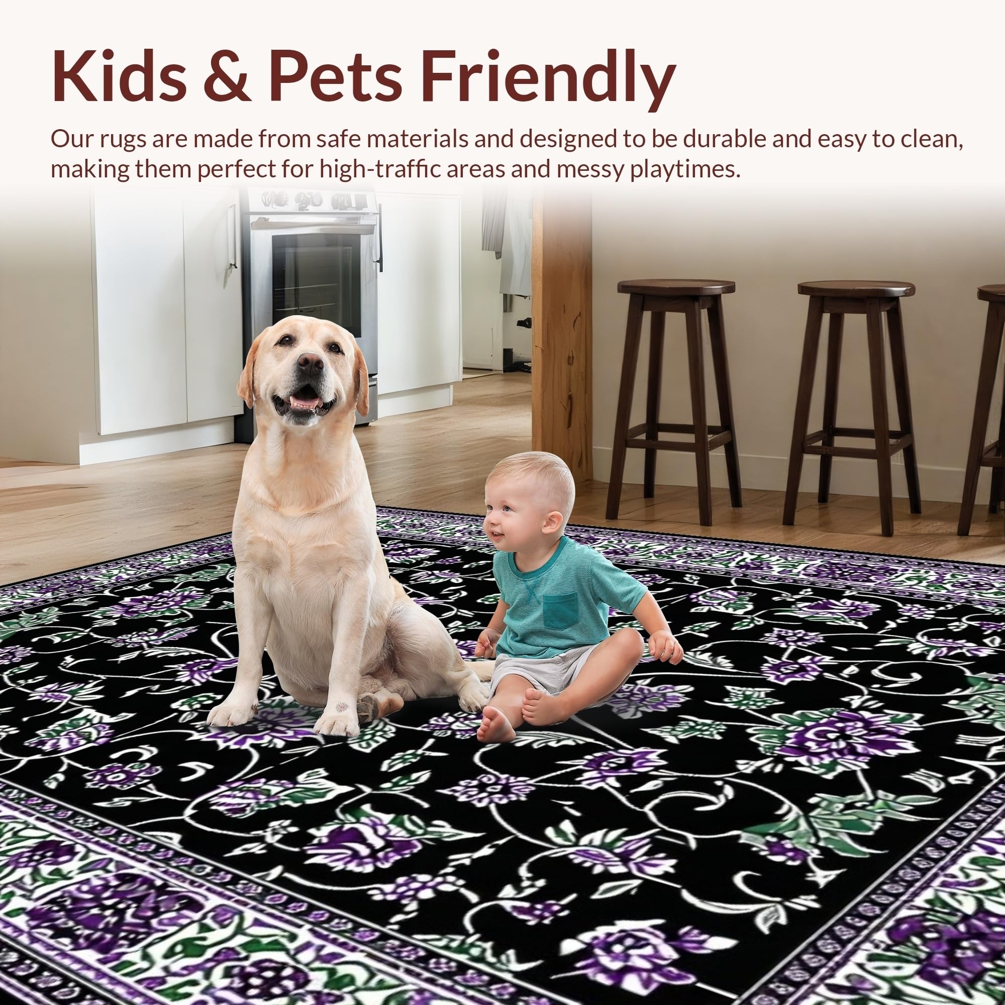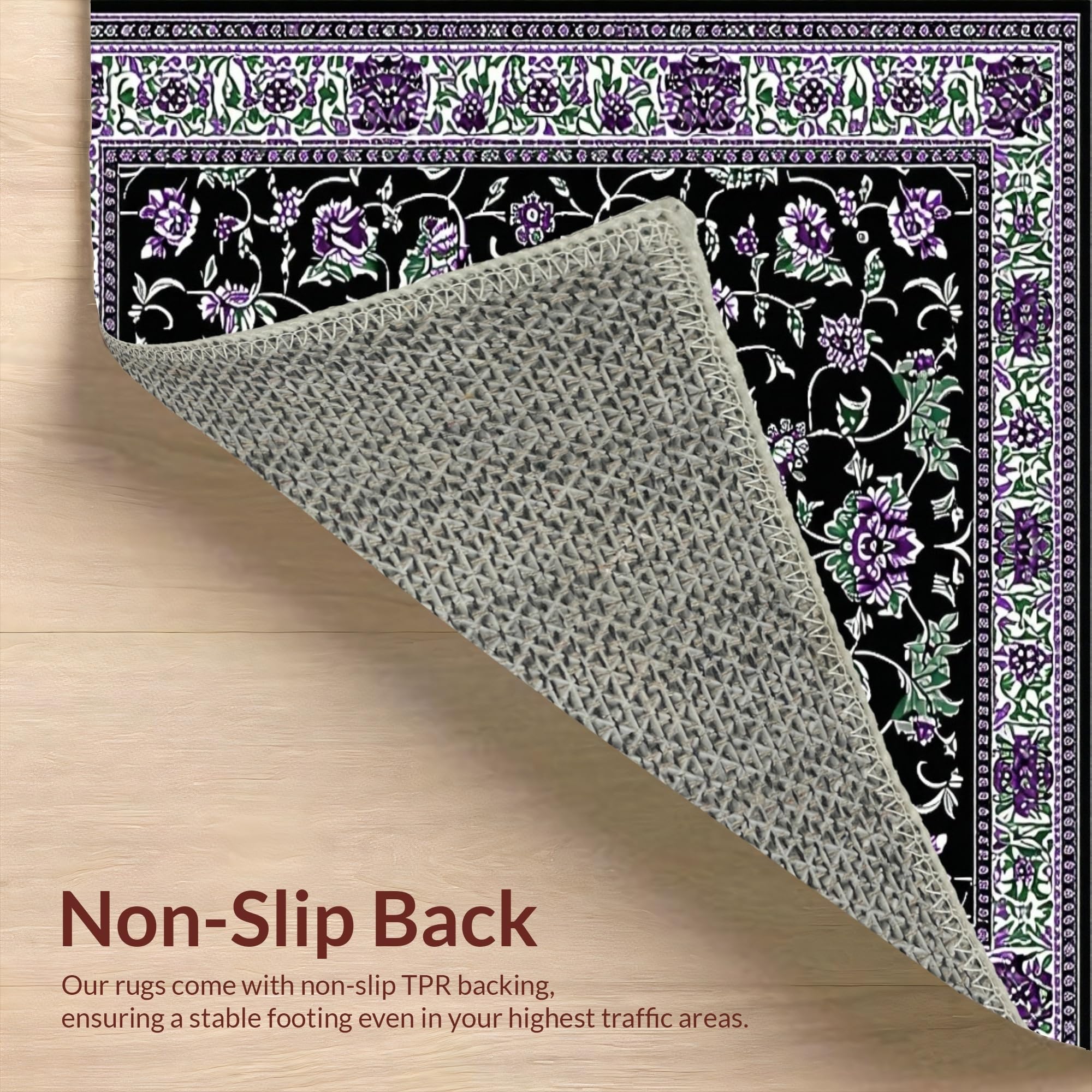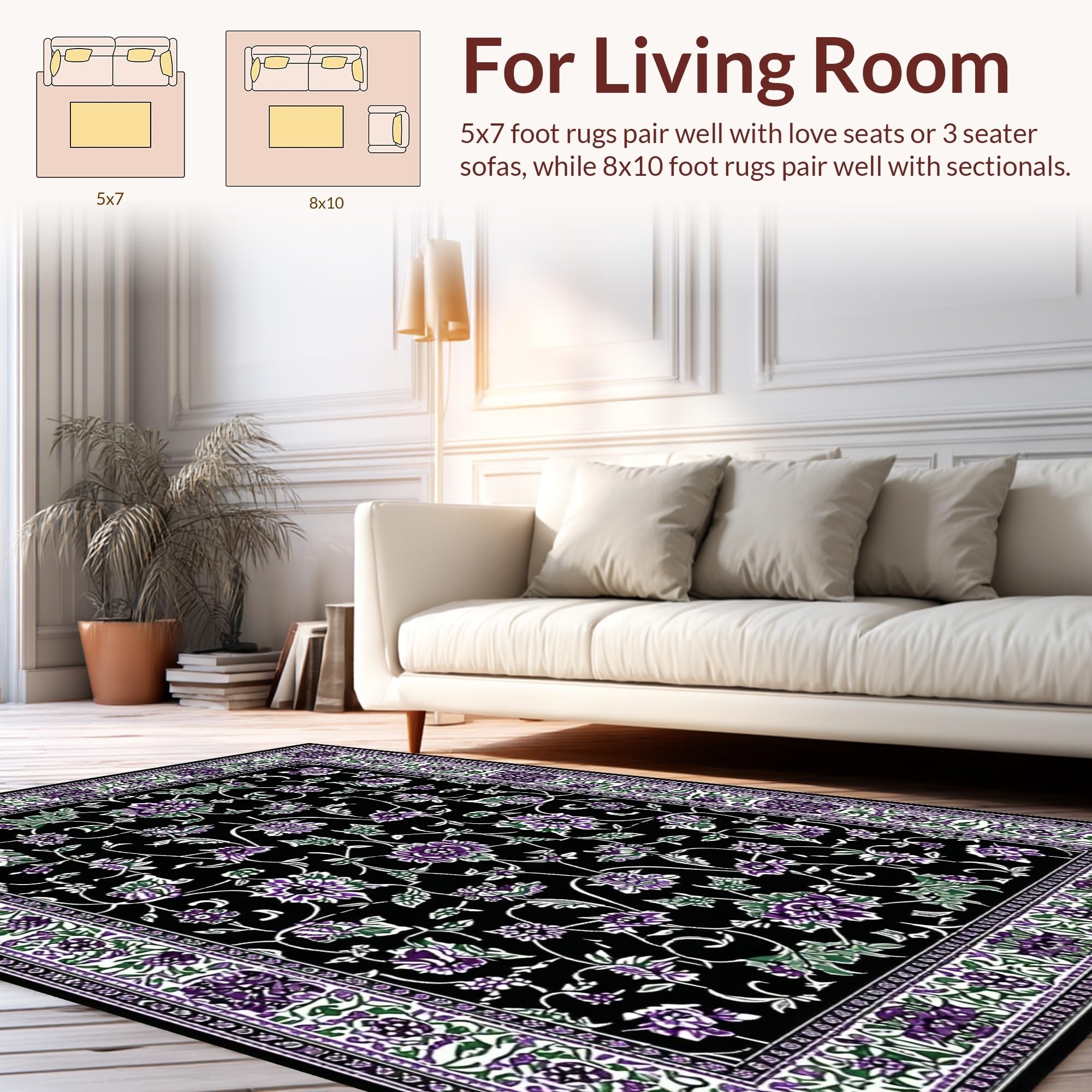 Ultra Soft Area Rug, Non Slip, Stain Resistant, Washable Area Rugs for Living Room, Bedroom, Luxurious Monochrome Nature Motif(Black) Overview: