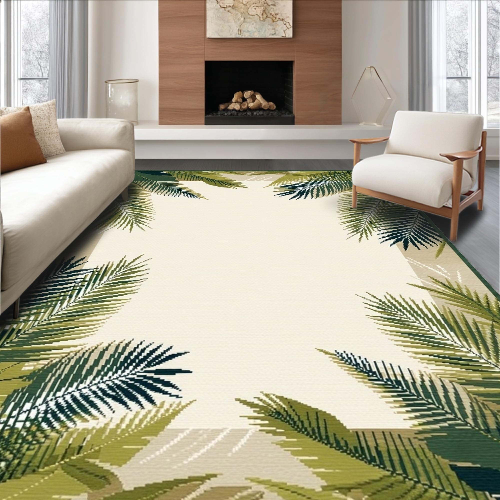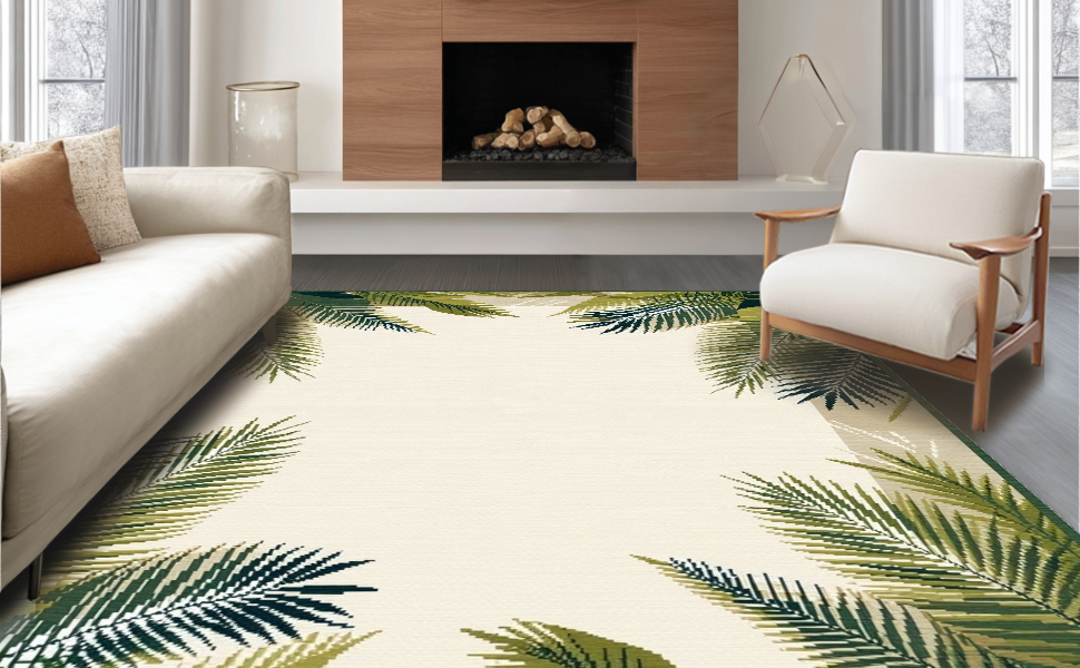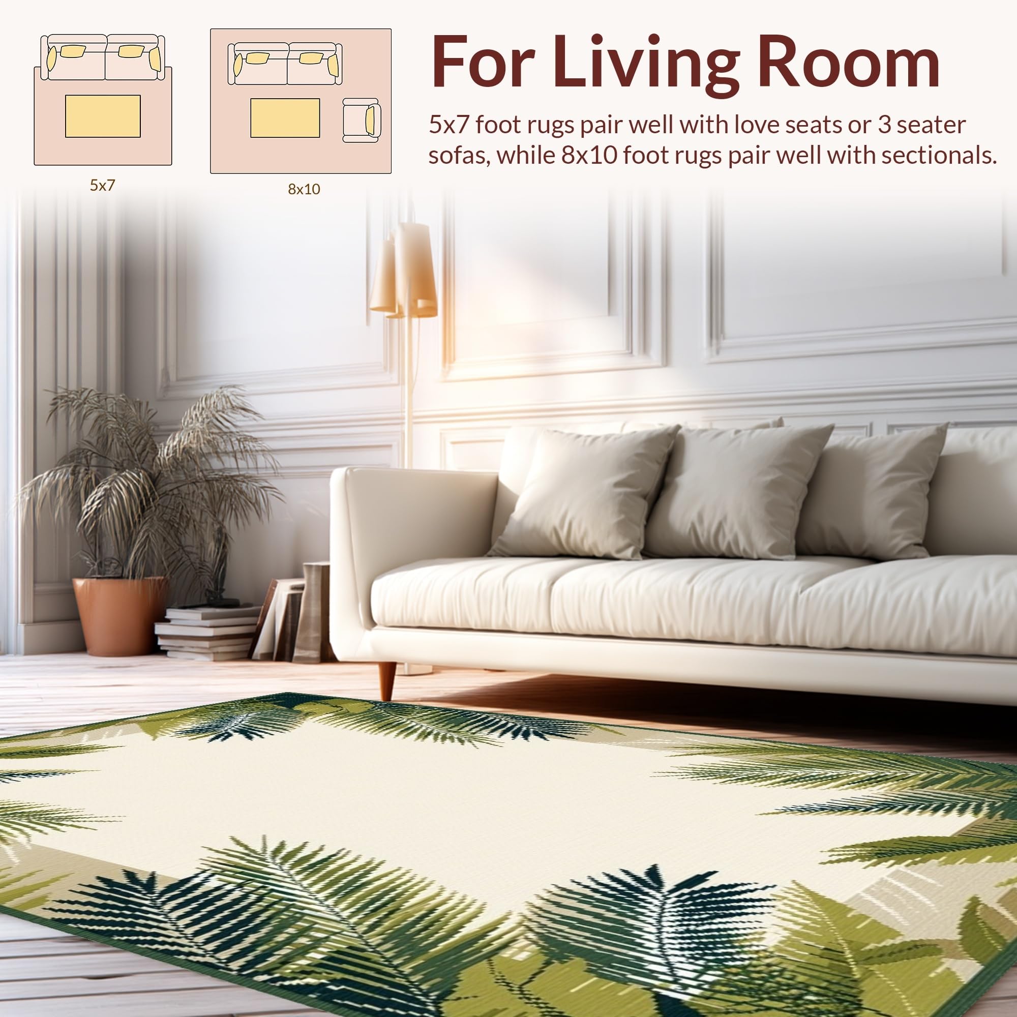 Ultra Soft Area Rug, Non Slip, Stain Resistant, Washable Area Rugs for Living Room, Bedroom, Luxurious Multi-Color Tropical Vibe(Beige) Overview: