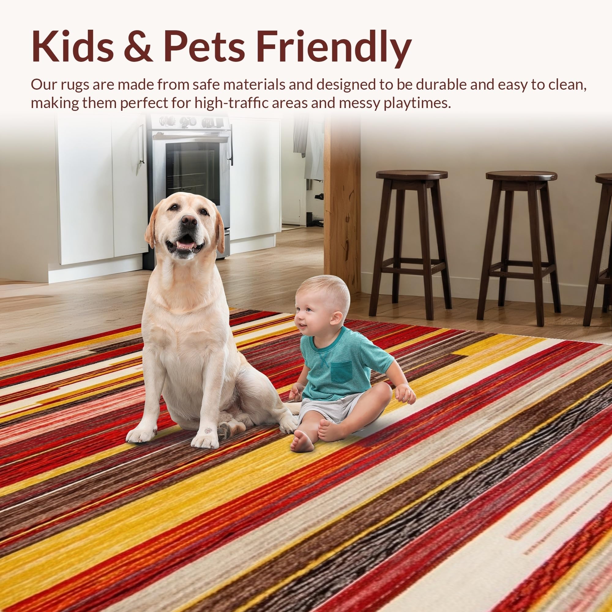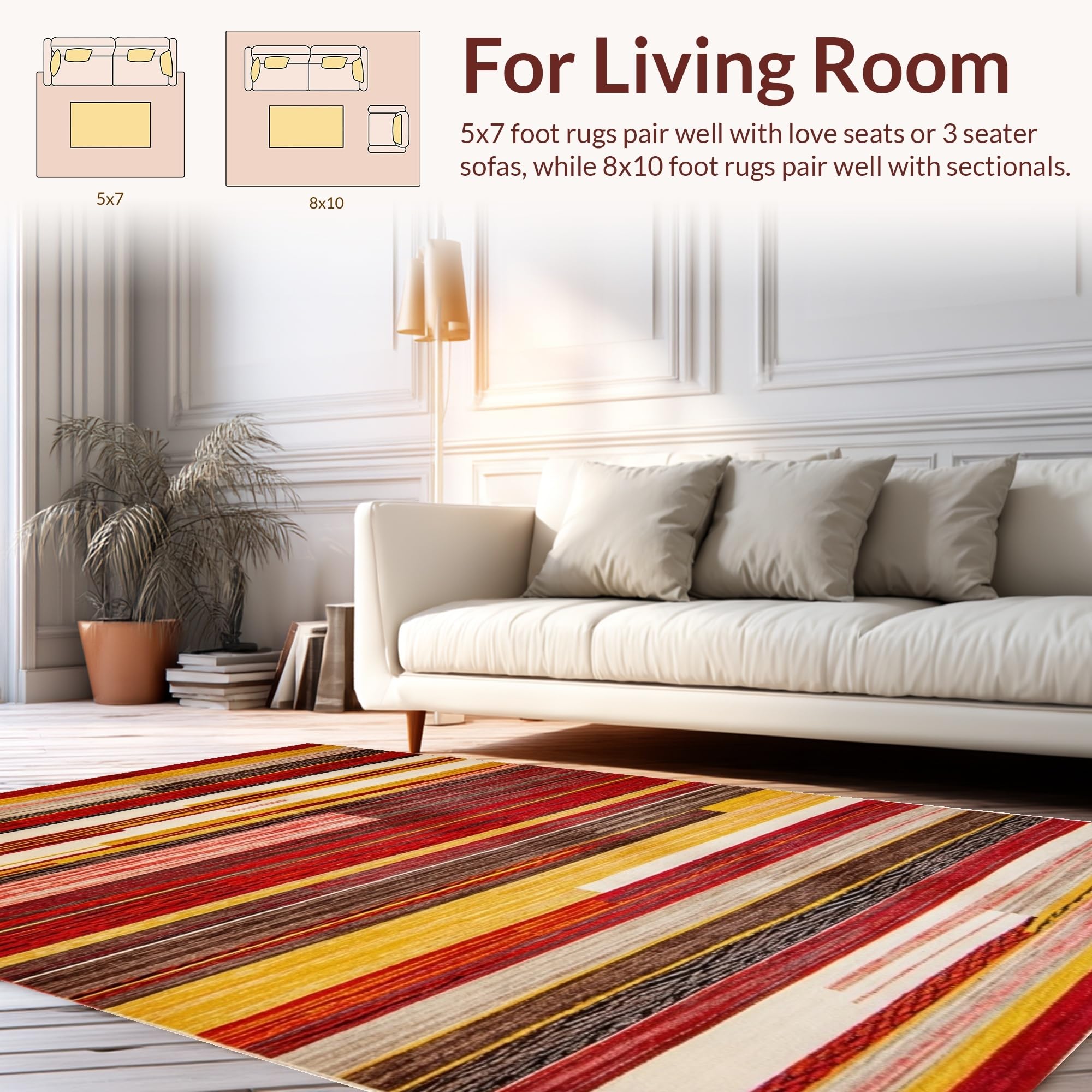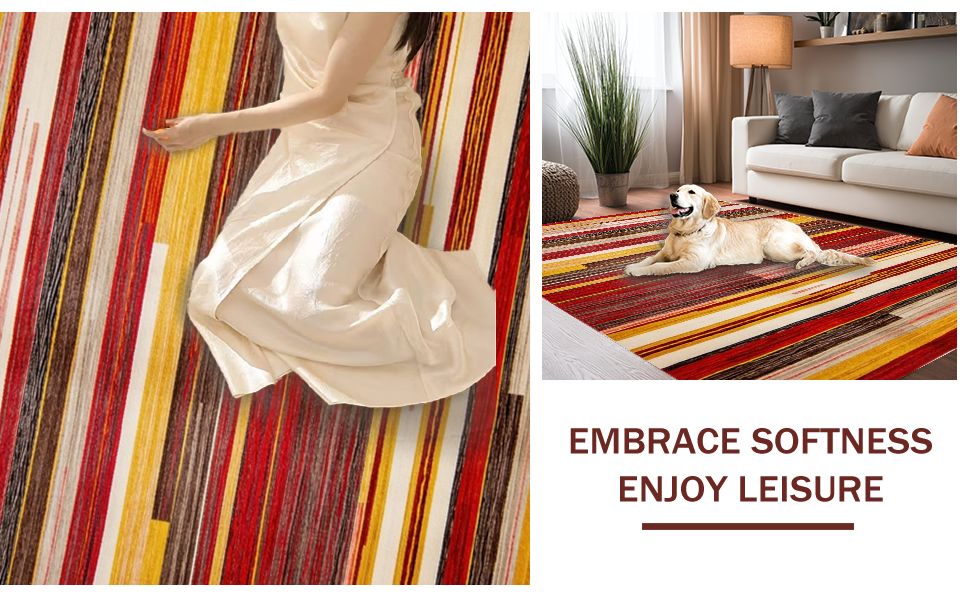 Ultra Soft Area Rug, Non Slip, Stain Resistant, Washable Area Rugs for Living Room, Bedroom, Luxurious Multihued Fabric Fusion(Red) Overview: