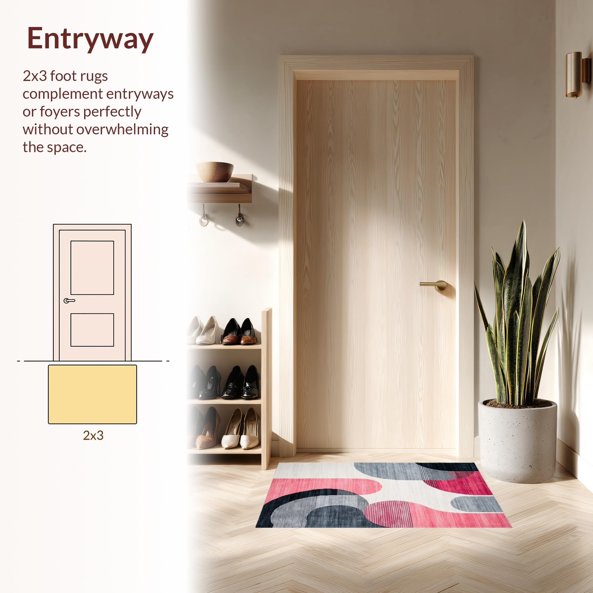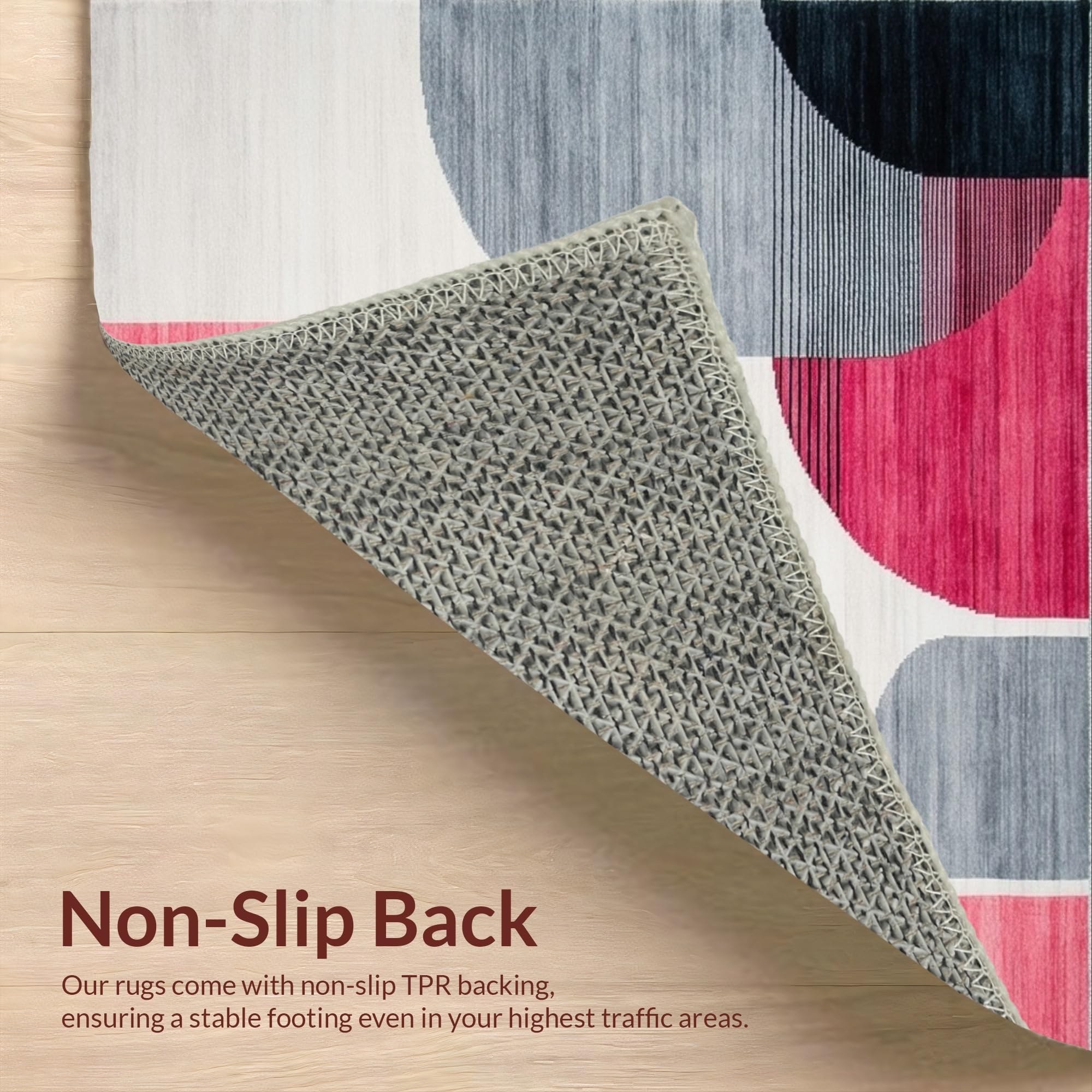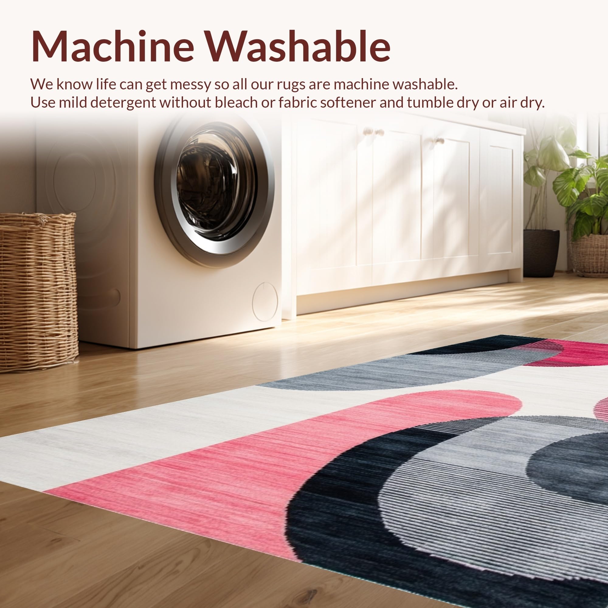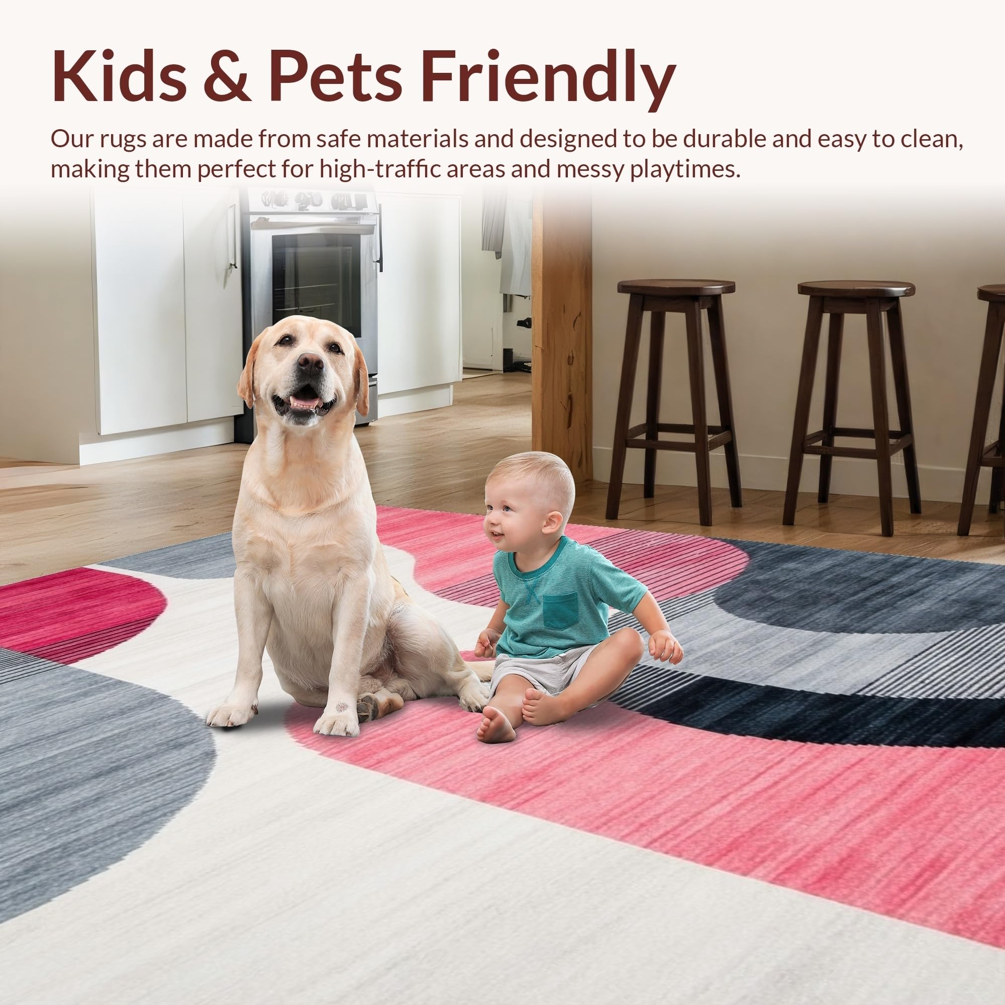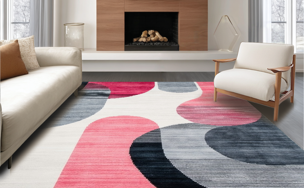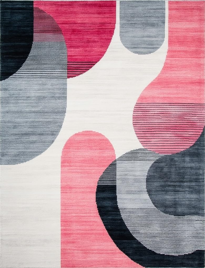 Ultra Soft Area Rug, Non Slip, Stain Resistant, Washable Area Rugs for Living Room, Bedroom, Luxurious Muted Tones Artful Geometry(Pink) Overview: