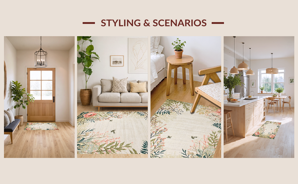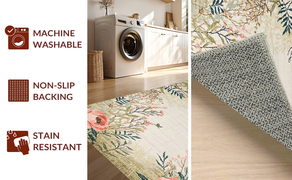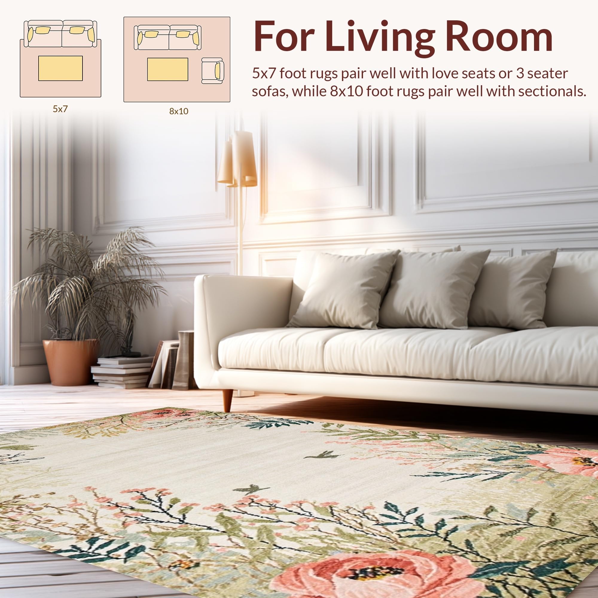 Ultra Soft Area Rug, Non Slip, Stain Resistant, Washable Area Rugs for Living Room, Bedroom, Luxurious Nature-Infused Decor(Ivory) Overview: