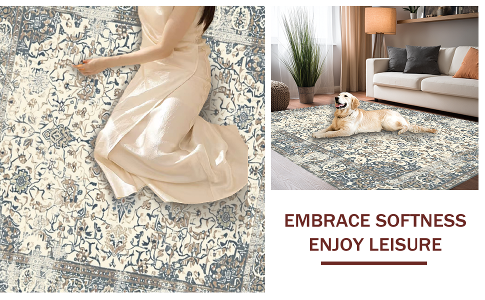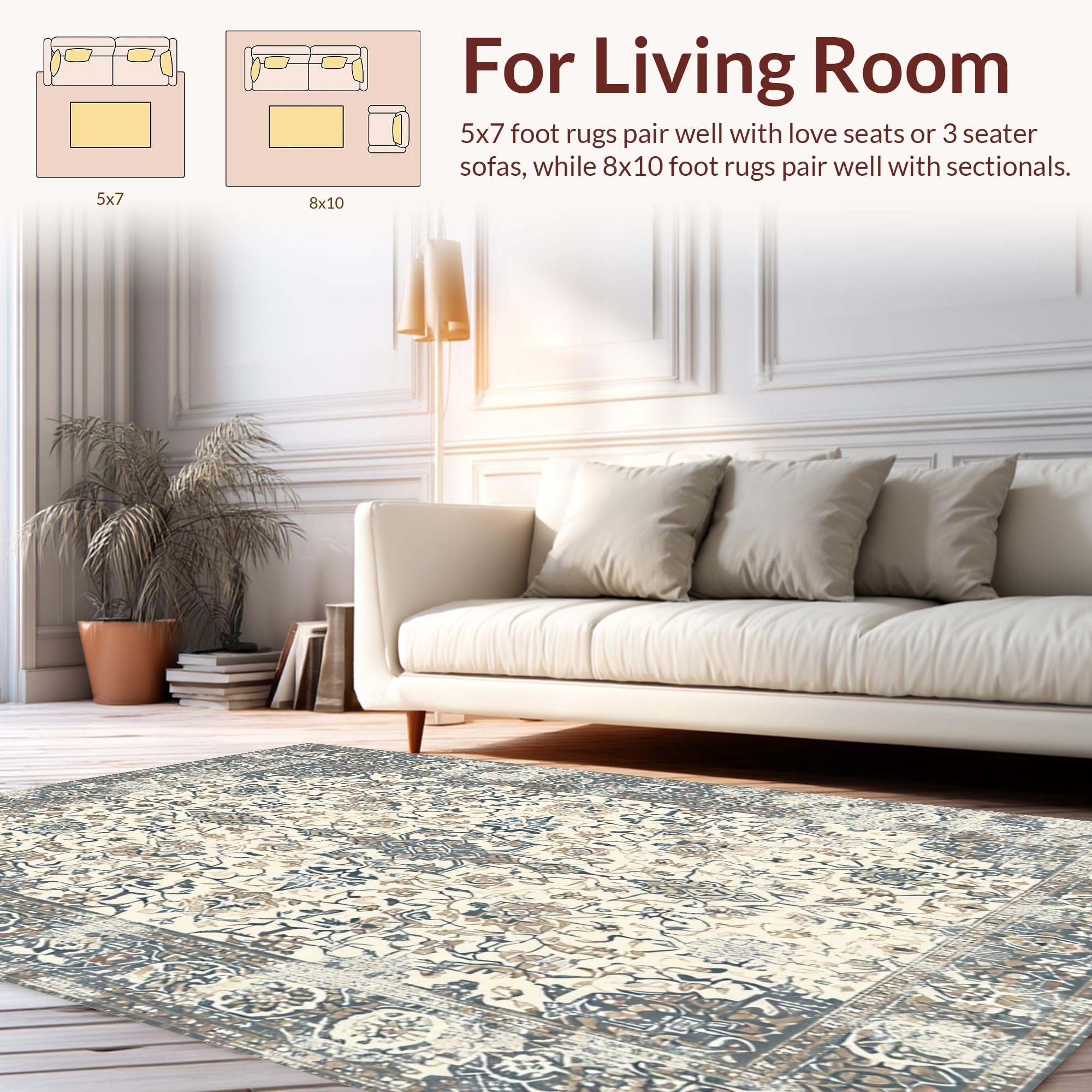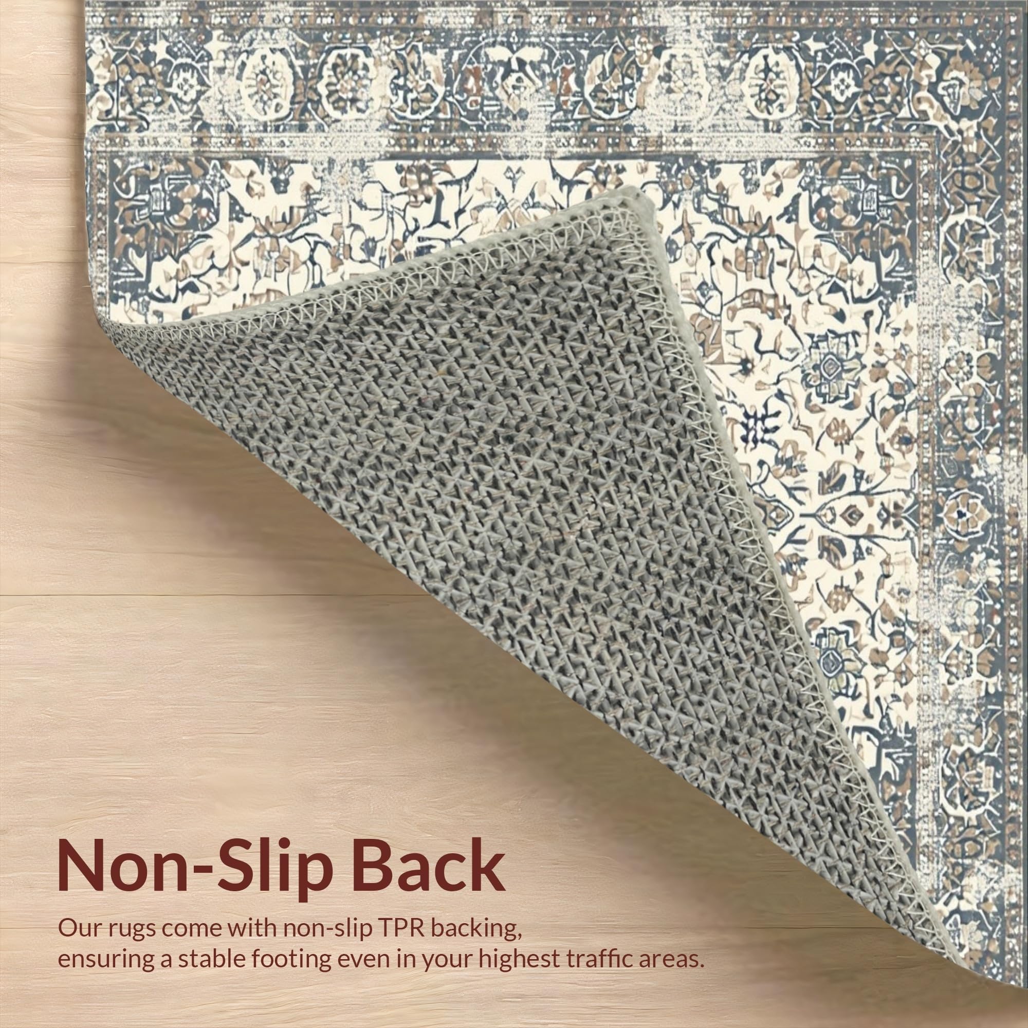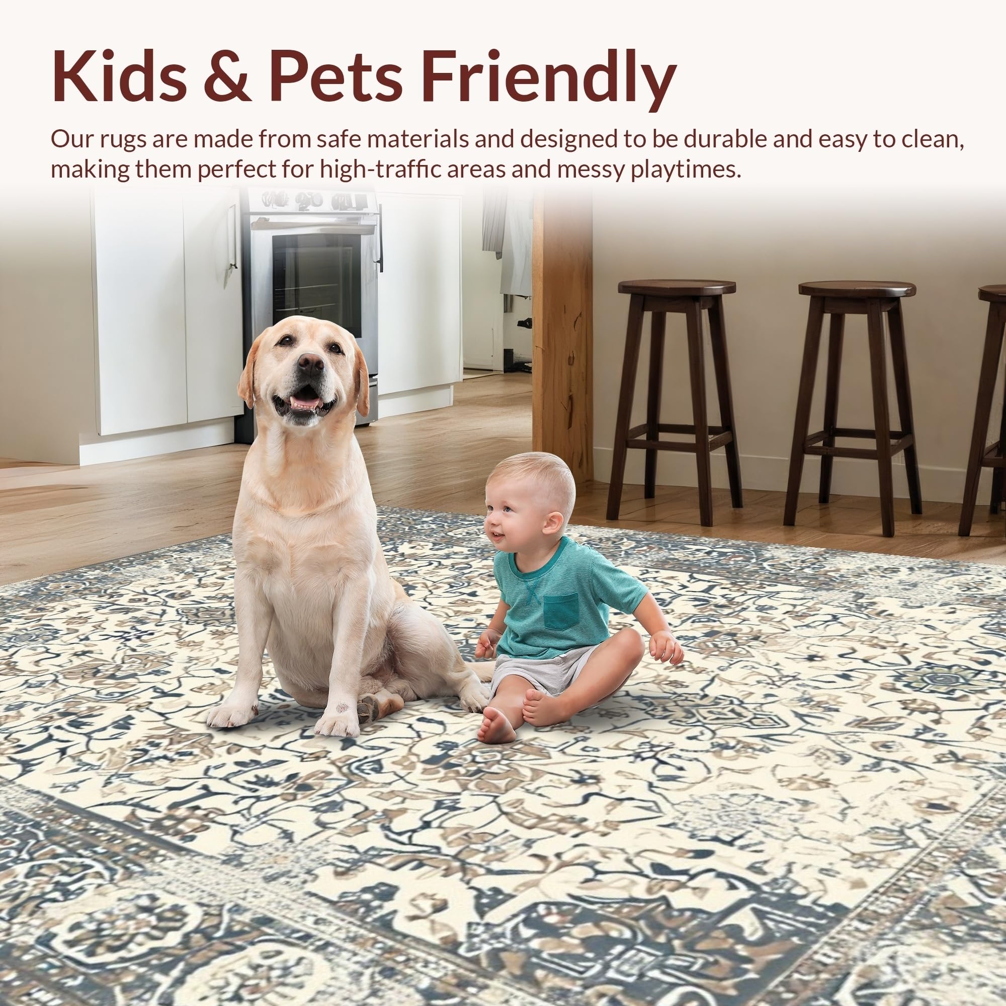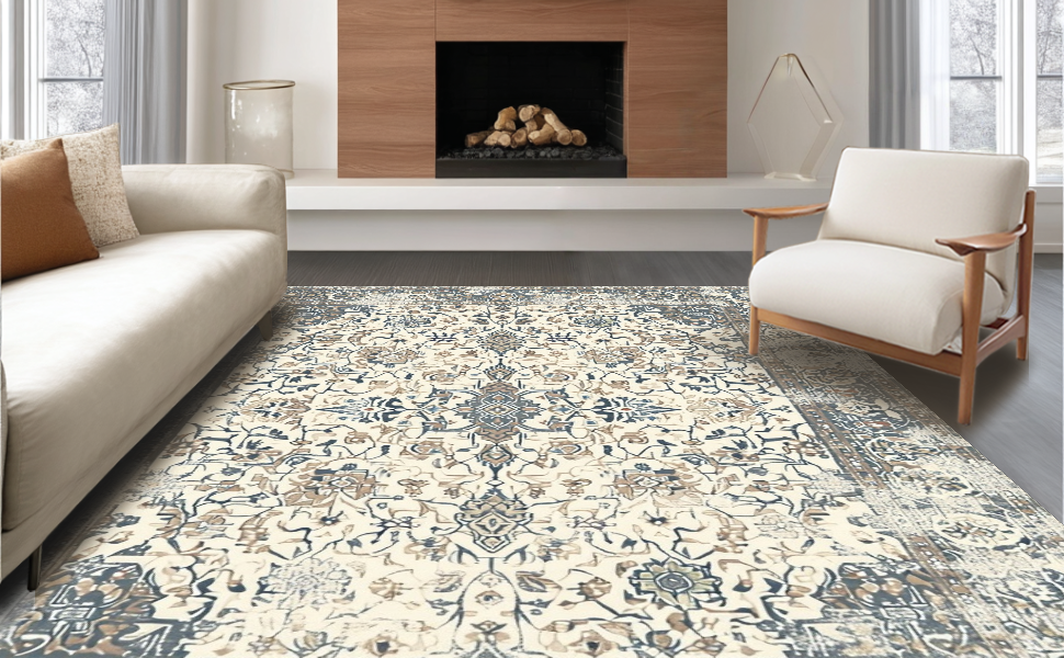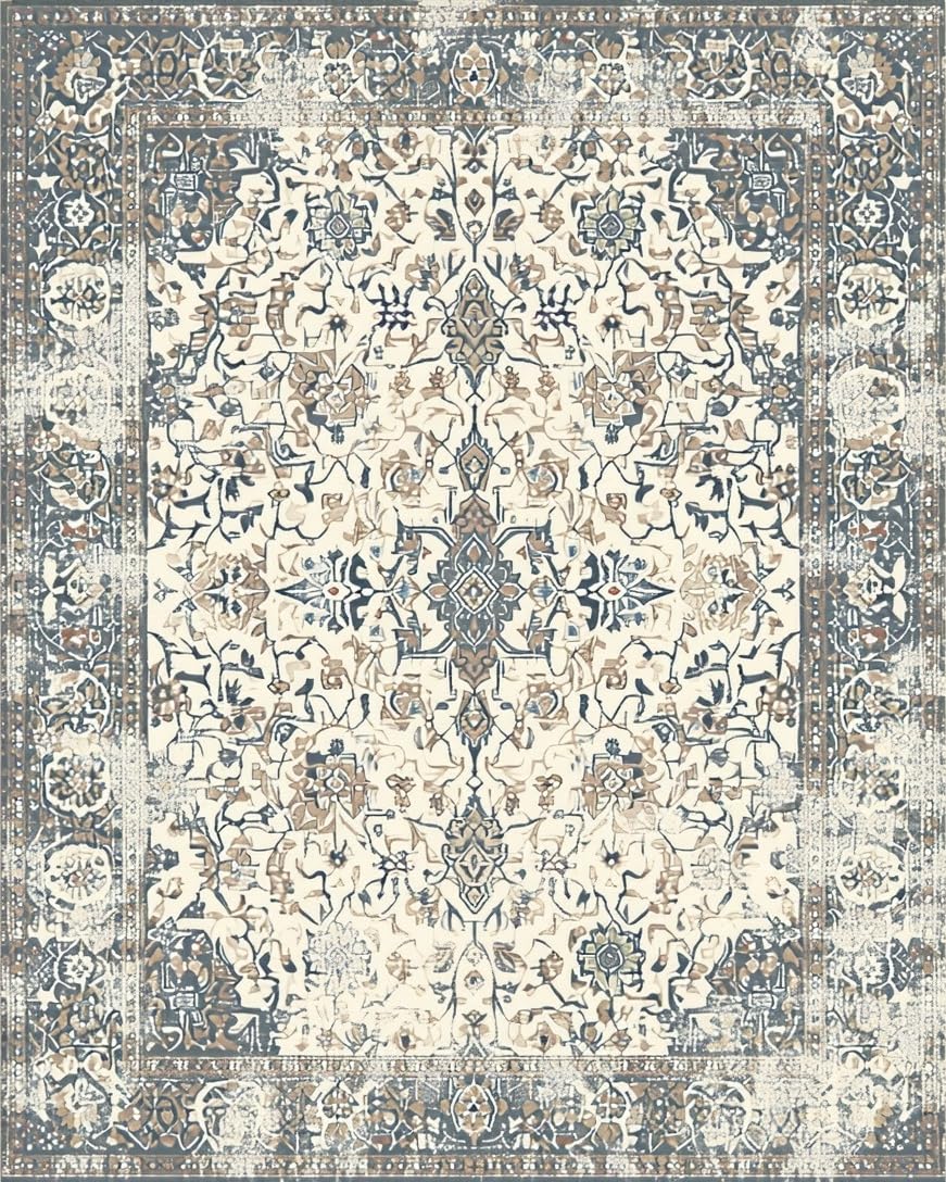 Ultra Soft Area Rug, Non Slip, Stain Resistant, Washable Area Rugs for Living Room, Bedroom, Luxurious Neutral Medallion Style(Ivory) Overview: