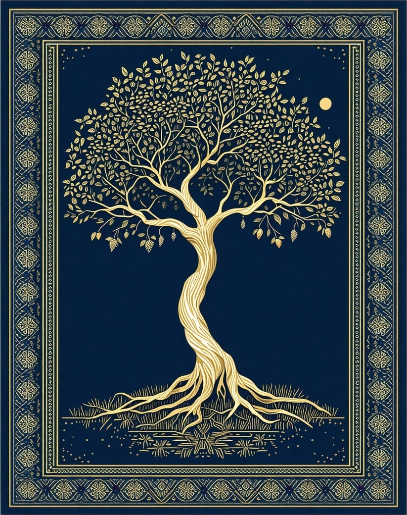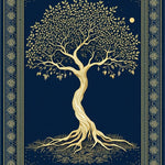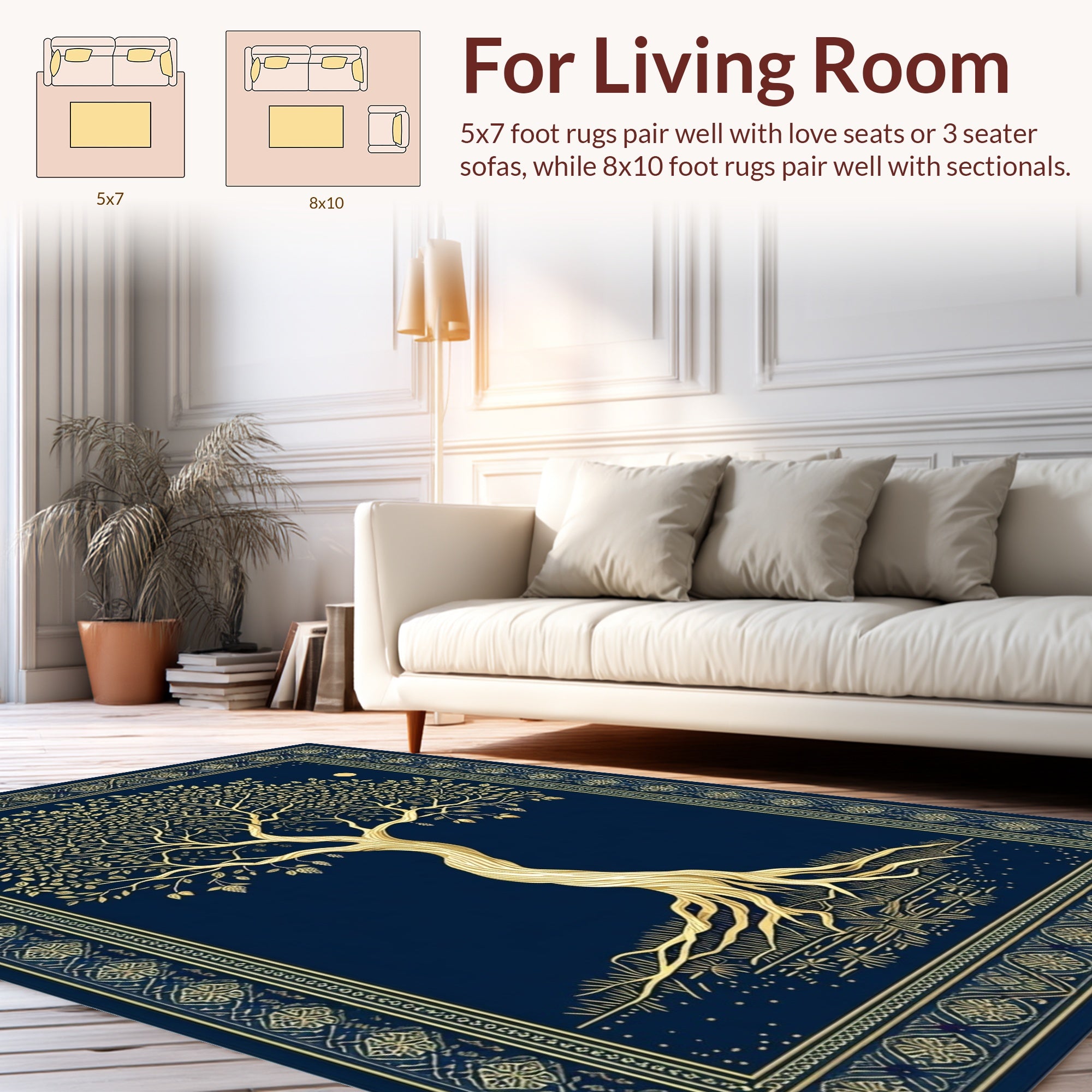 Flatwoven High Traffic Area Rug, Luxurious Oceanic Tree Symbol, Non Slip, Stain Resistant, Washable Area Rugs for Living Room, Bedroom (Blue) Overview: