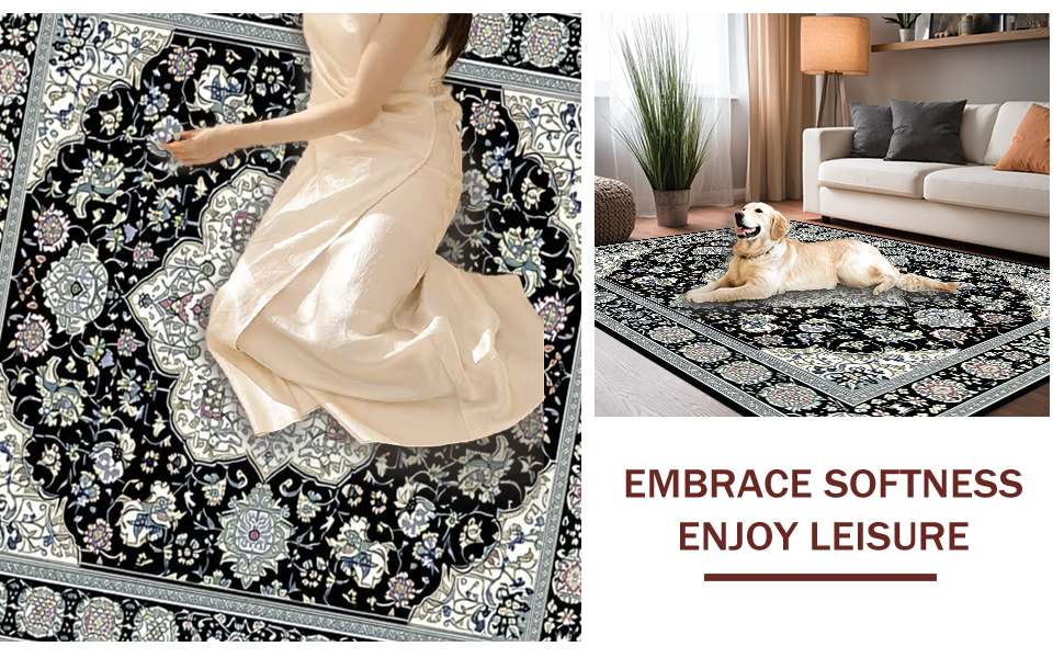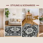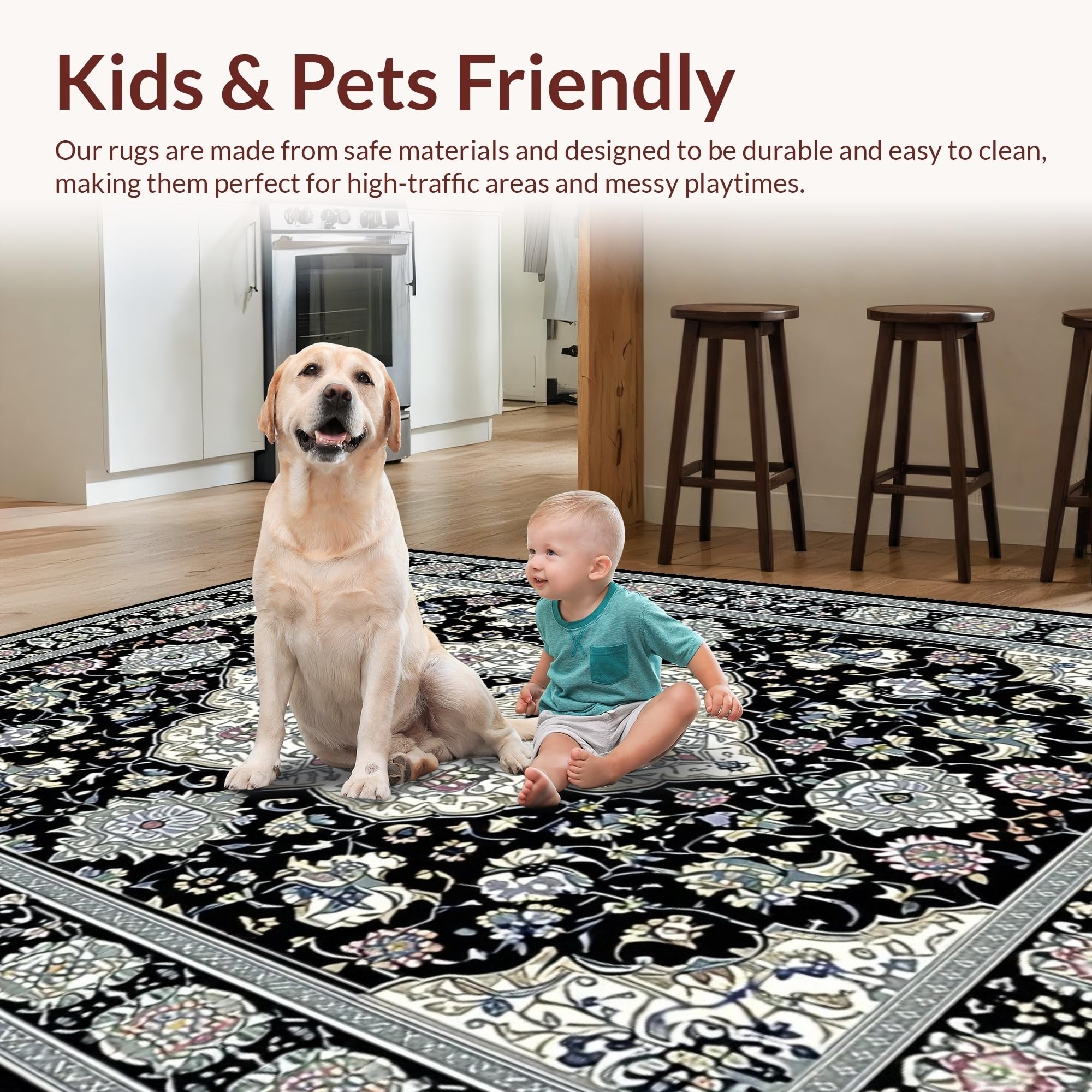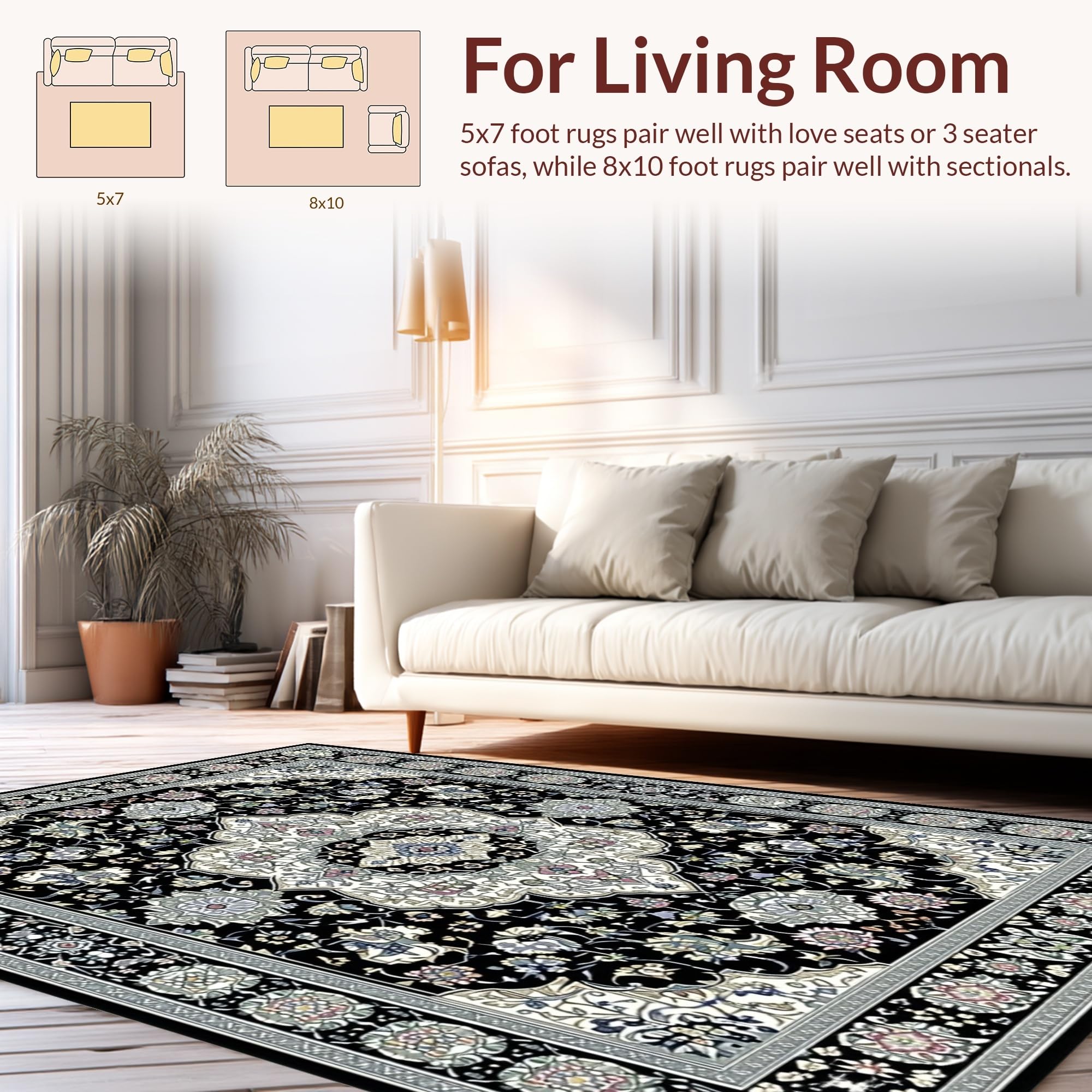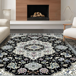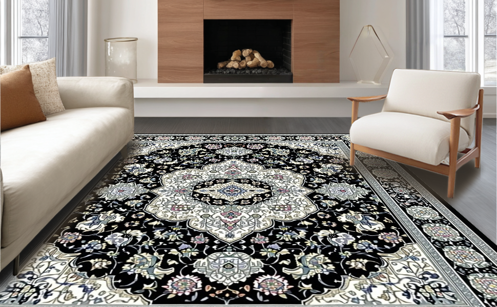 Ultra Soft Area Rug, Non Slip, Stain Resistant, Washable Area Rugs for Living Room, Bedroom, Luxurious Ogee Pattern with Contrast(Black) Overview: