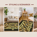 Ultra Soft Area Rug, Non Slip, Stain Resistant, Washable Area Rugs for Living Room, Bedroom, Luxurious Ornamental Geometric Composition(Gold) Overview: