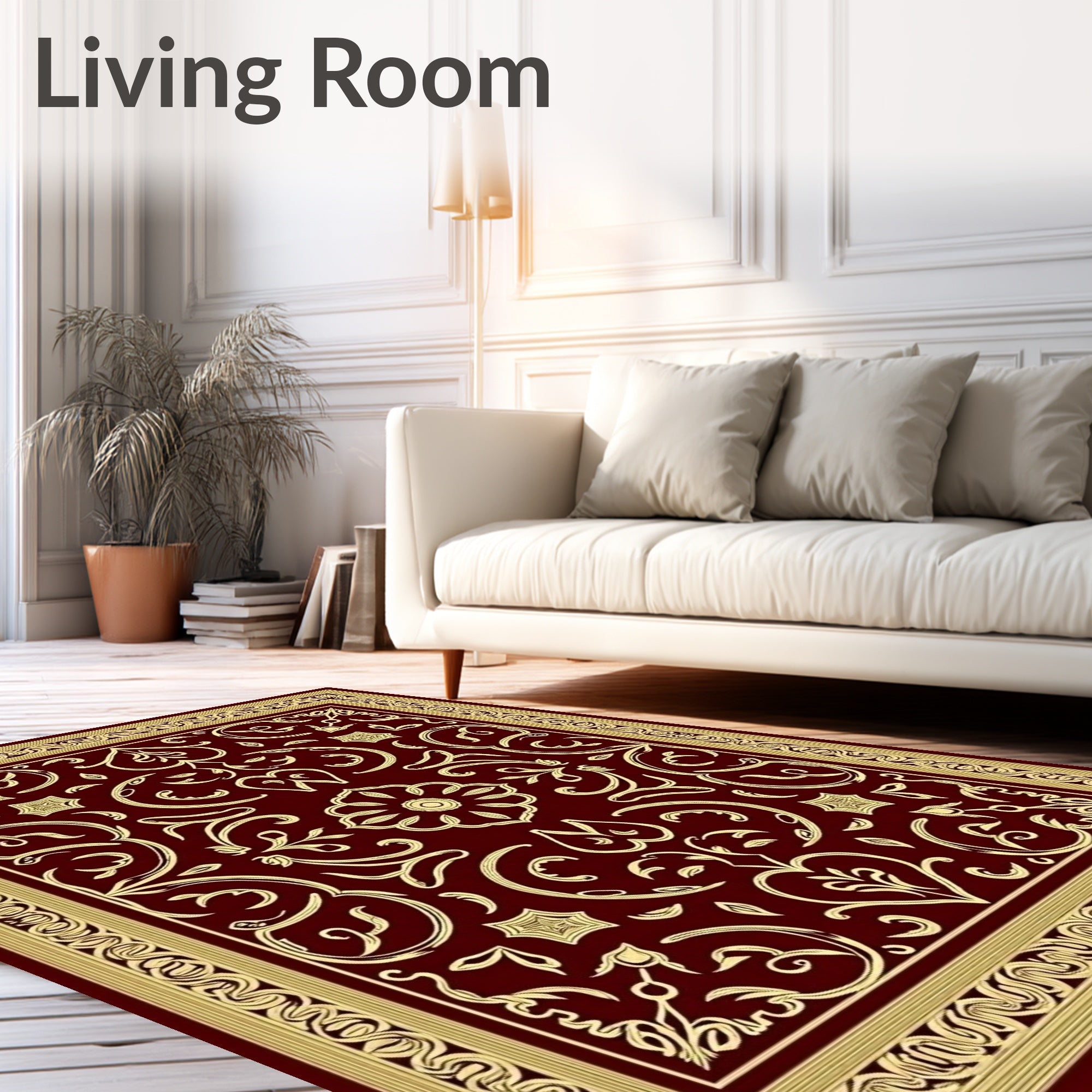 Ultra Soft Area Rug, Non Slip, Stain Resistant, Washable Area Rugs for Living Room, Bedroom, Luxurious Paisley Swirl with Intricate Border Details(Gold) Overview: