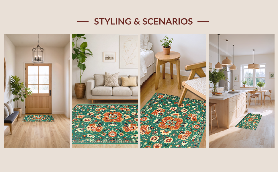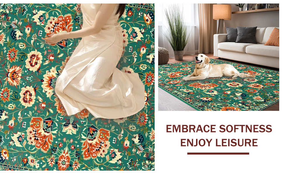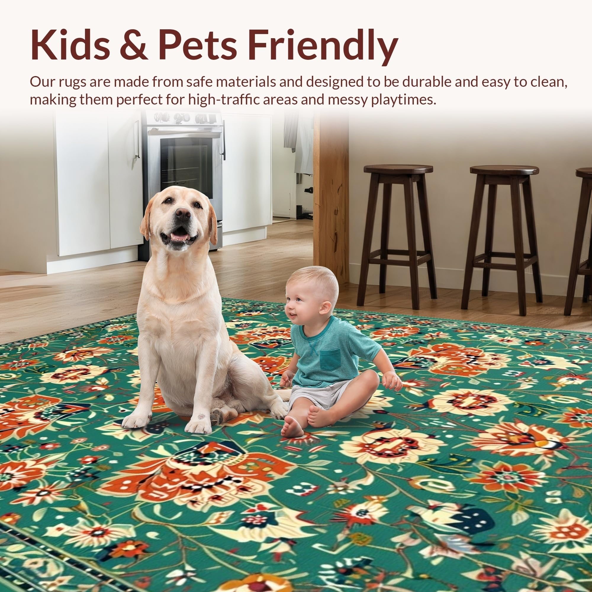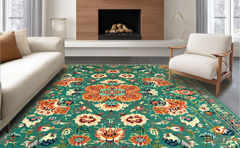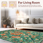 Ultra Soft Area Rug, Non Slip, Stain Resistant, Washable Area Rugs for Living Room, Bedroom, Luxurious Pastel Medallion Style(Green) Overview: