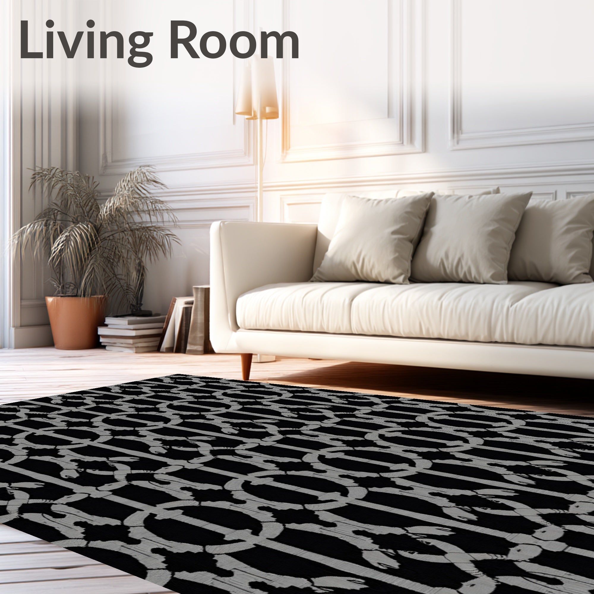 Ultra Soft Area Rug, Non Slip, Stain Resistant, Washable Area Rugs for Living Room, Bedroom, Luxurious Plush Lattice Aesthetic Decoration(Black) Overview: