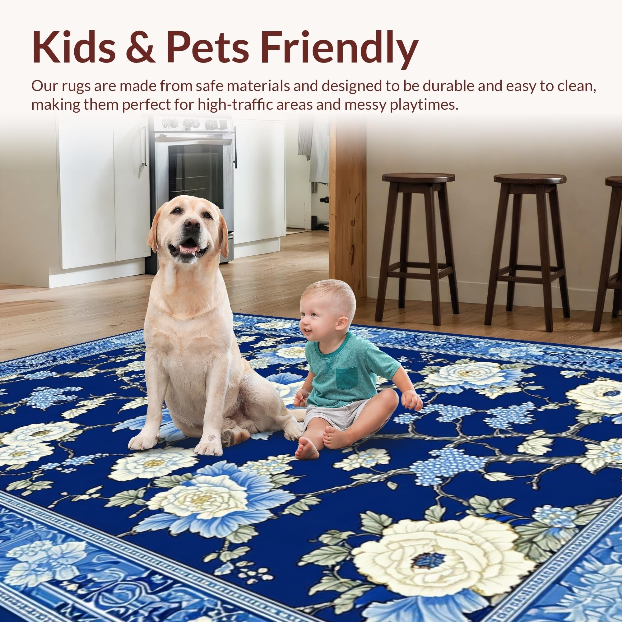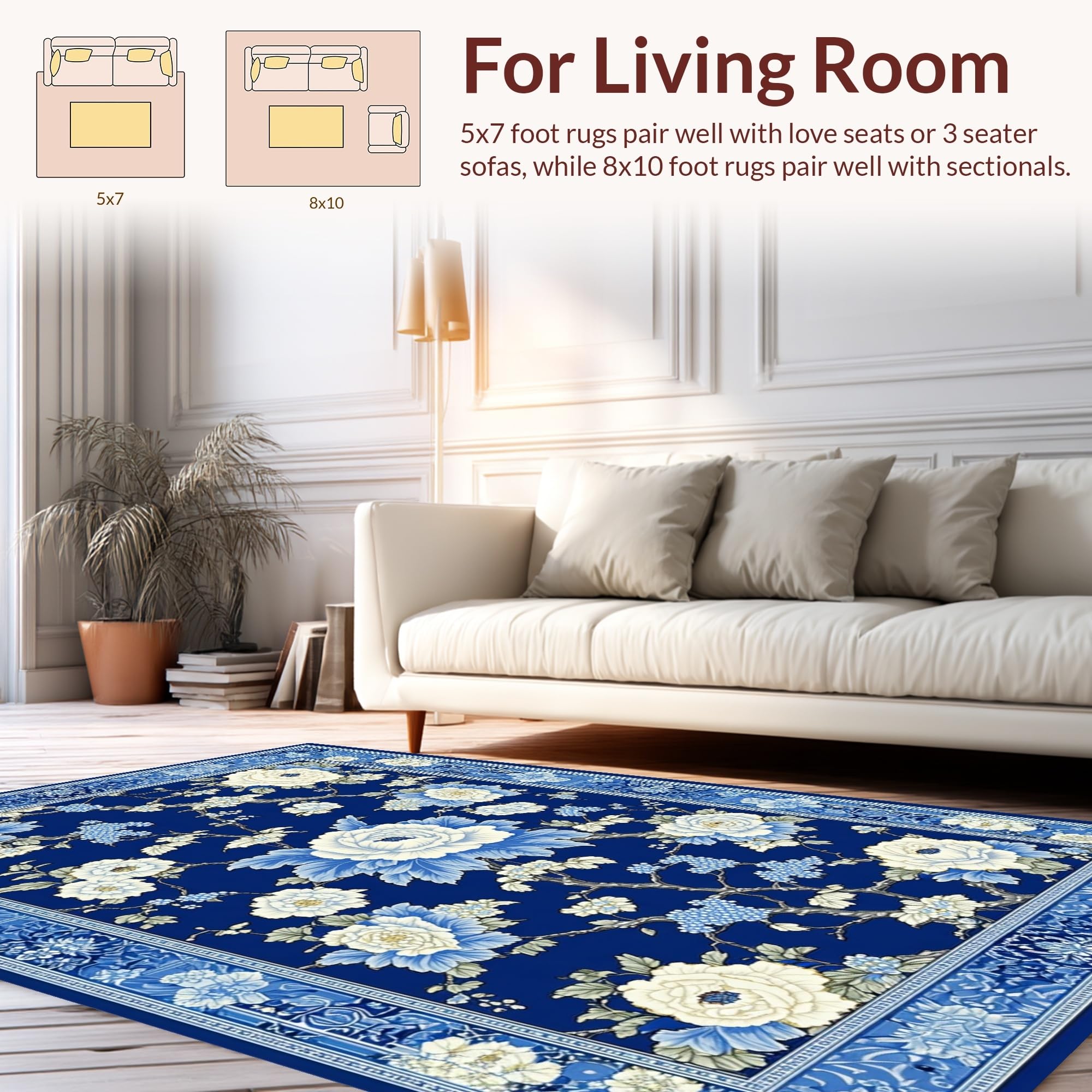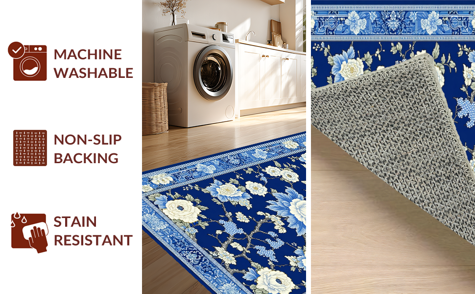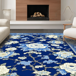 Ultra Soft Area Rug, Non Slip, Stain Resistant, Washable Area Rugs for Living Room, Bedroom, Luxurious Porcelain Inspired Design Elements(Blue) Overview: