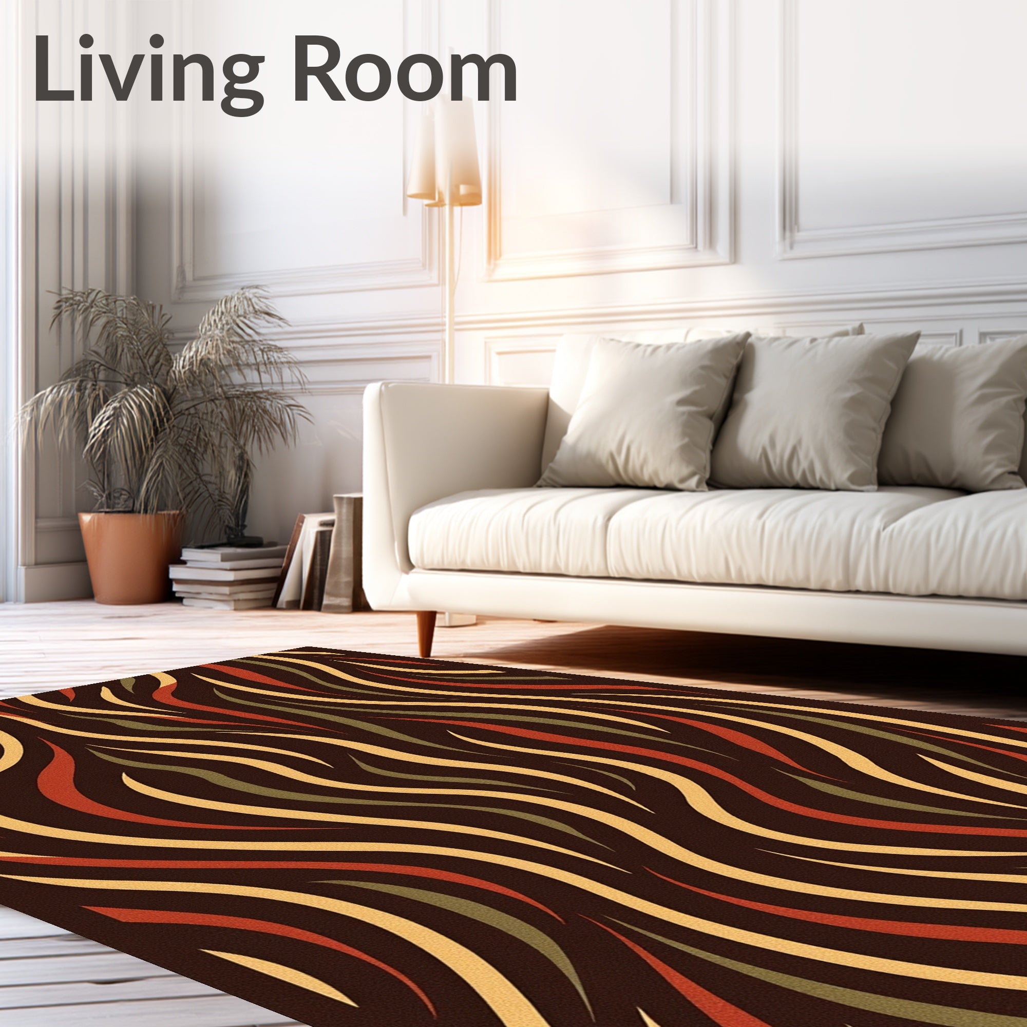 Flatwoven High Traffic Area Rug, Luxurious Shaggy Textured Wave Decorative Accent, Non Slip, Stain Resistant, Washable Area Rugs for Living Room, Bedroom (Brown) Overview: