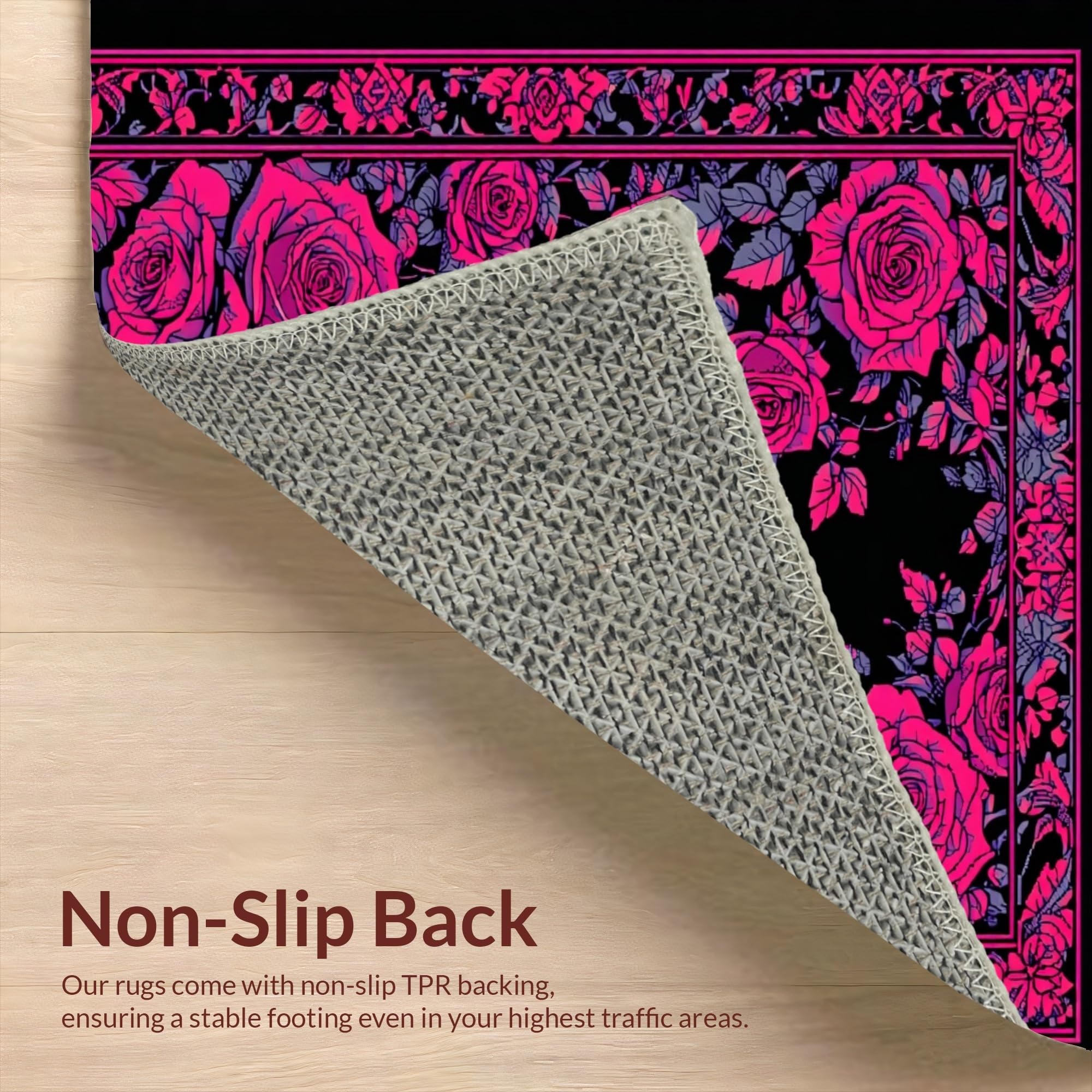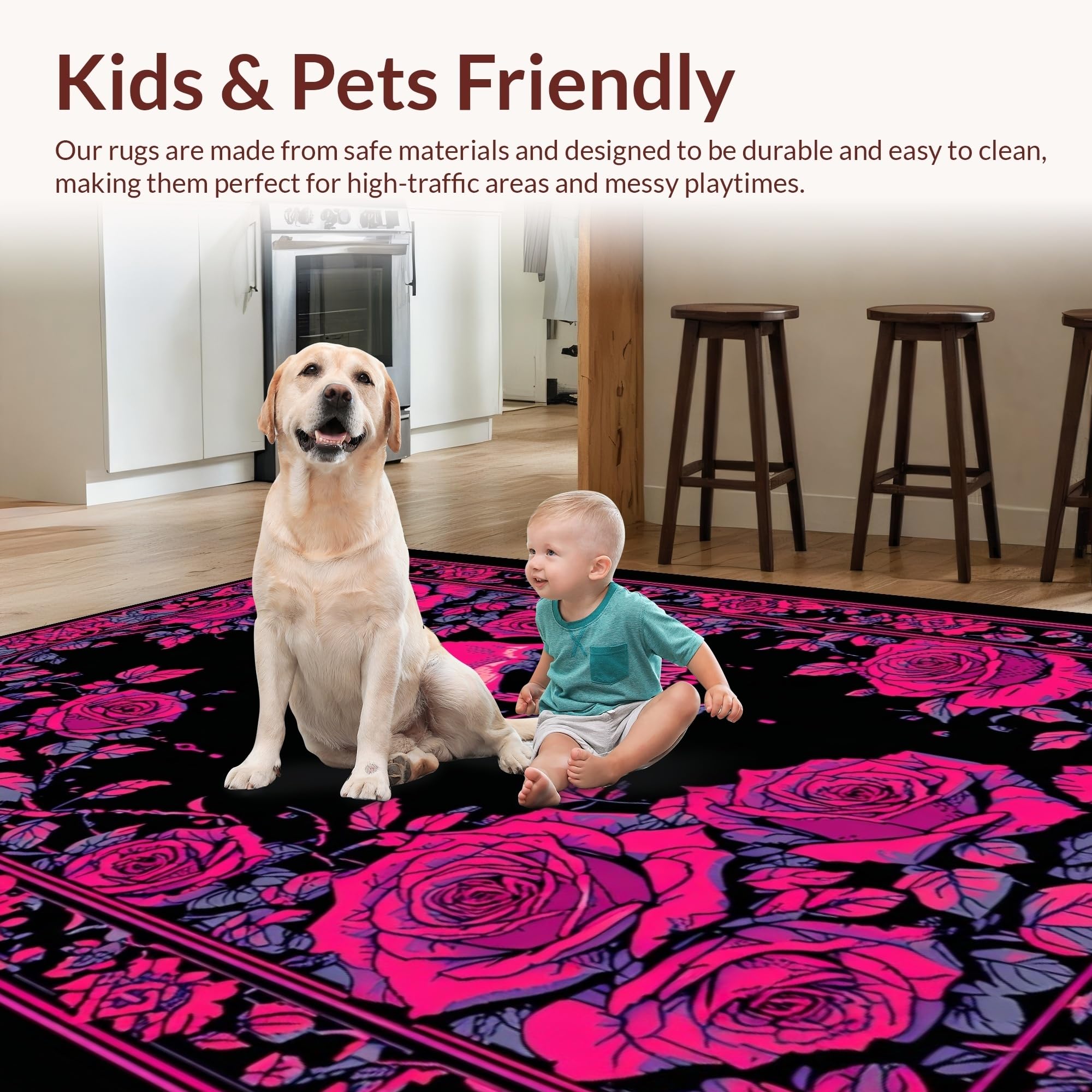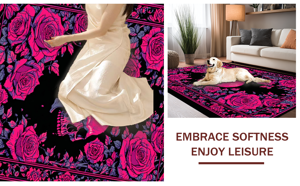 Ultra Soft Area Rug, Non Slip, Stain Resistant, Washable Area Rugs for Living Room, Bedroom, Luxurious Skull Petal Fusion(Pink) Overview:
