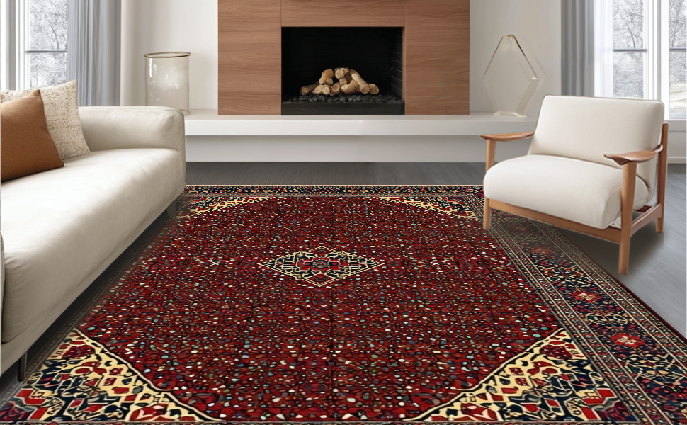 Ultra Soft Area Rug, Non Slip, Stain Resistant, Washable Area Rugs for Living Room, Bedroom, Luxurious Soft Symmetrical Textures(Red) Overview: