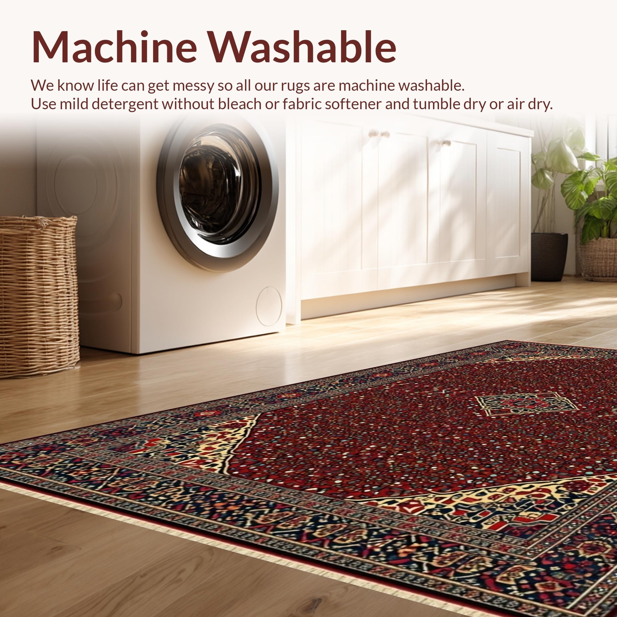 - Machine Washable: Our rugs can be easily thrown in the wash machine.