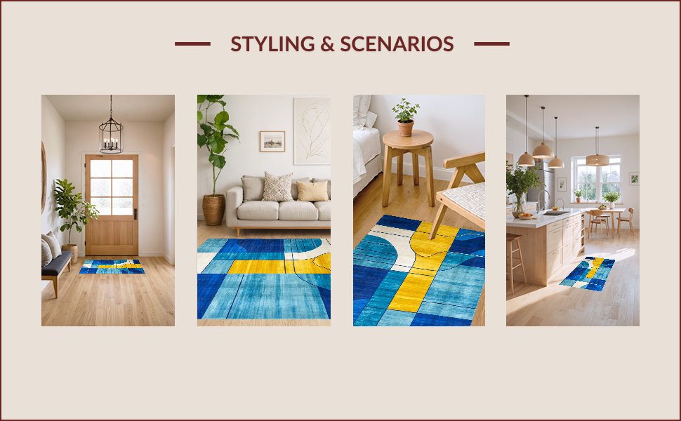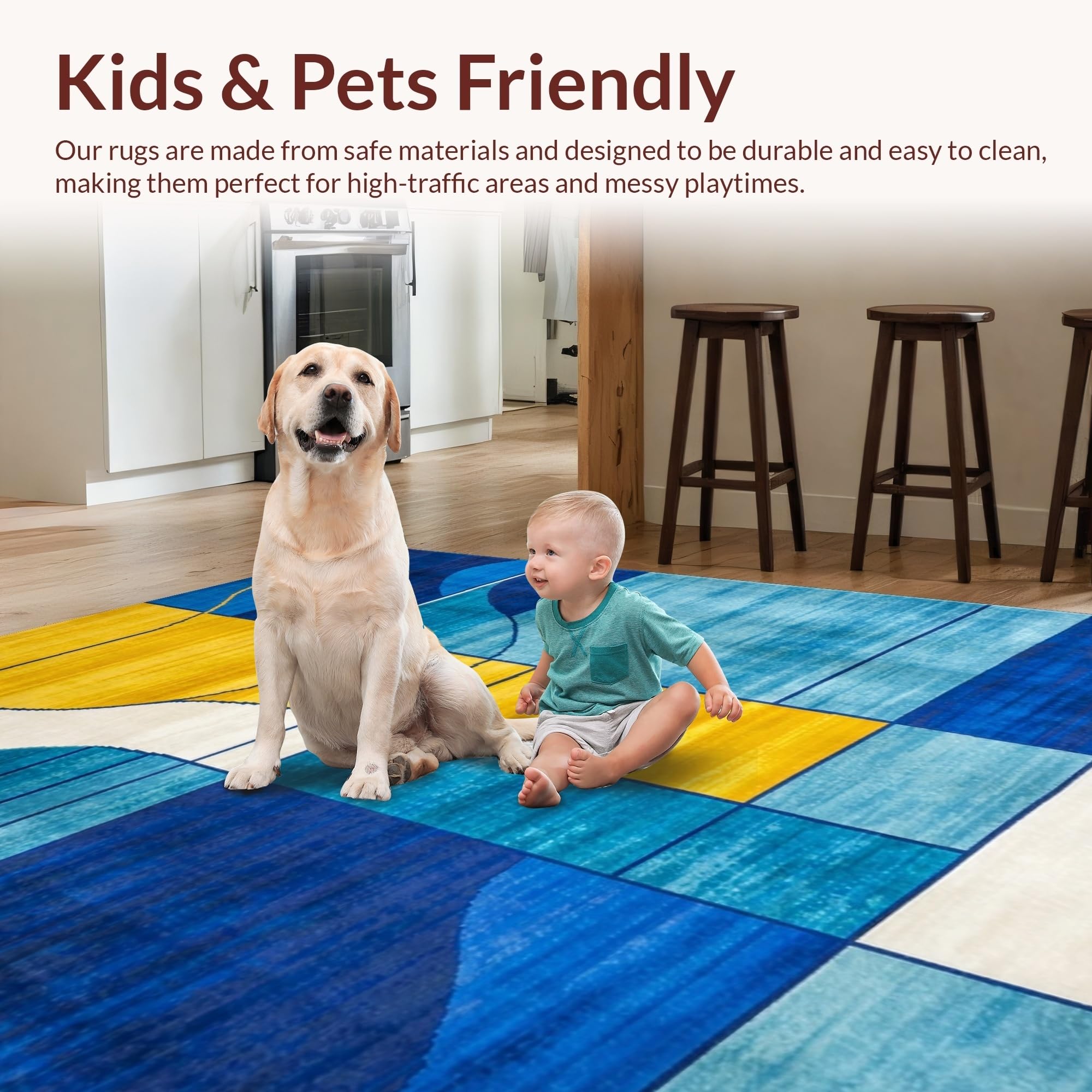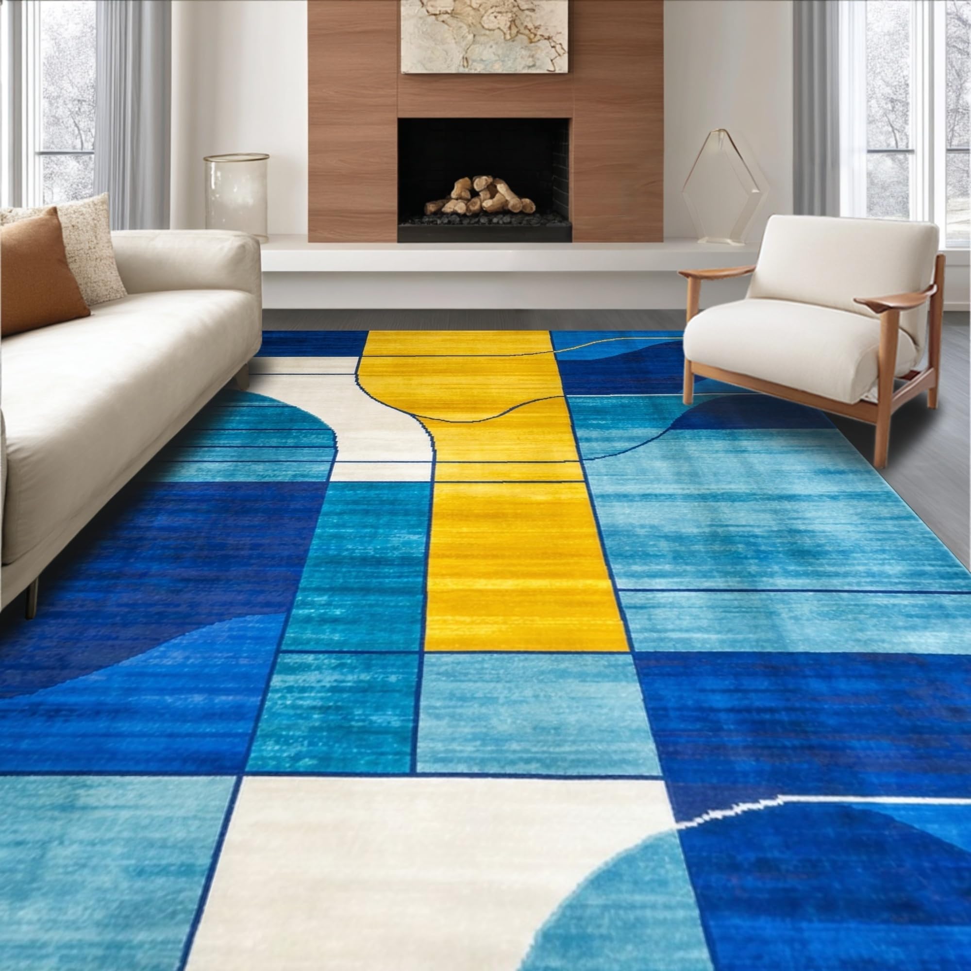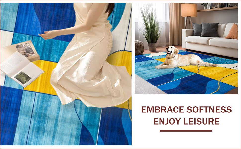 Ultra Soft Area Rug, Non Slip, Stain Resistant, Washable Area Rugs for Living Room, Bedroom, Luxurious Soft Textured Patterns(Blue) Overview: