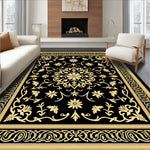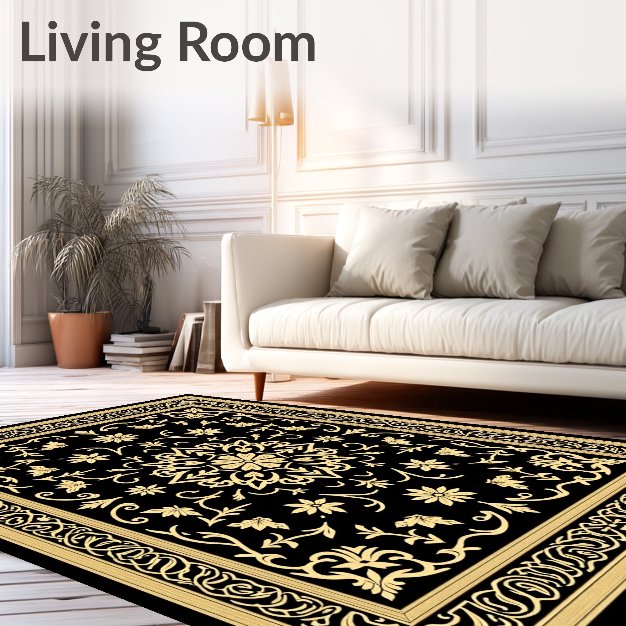 Ultra Soft Area Rug, Non Slip, Stain Resistant, Washable Area Rugs for Living Room, Bedroom, Luxurious Symmetrical Botanical Jacquard Heirloom Composition(Black) Overview: