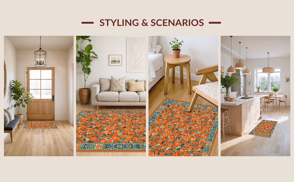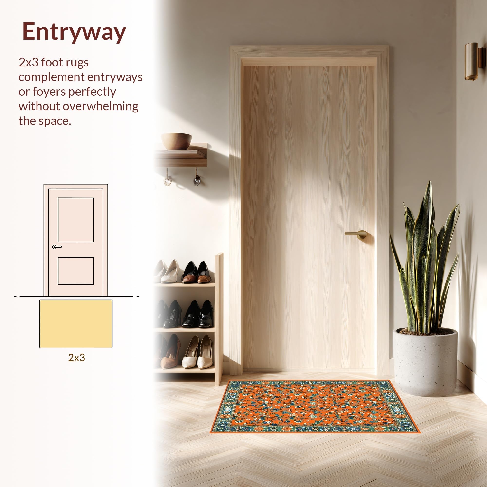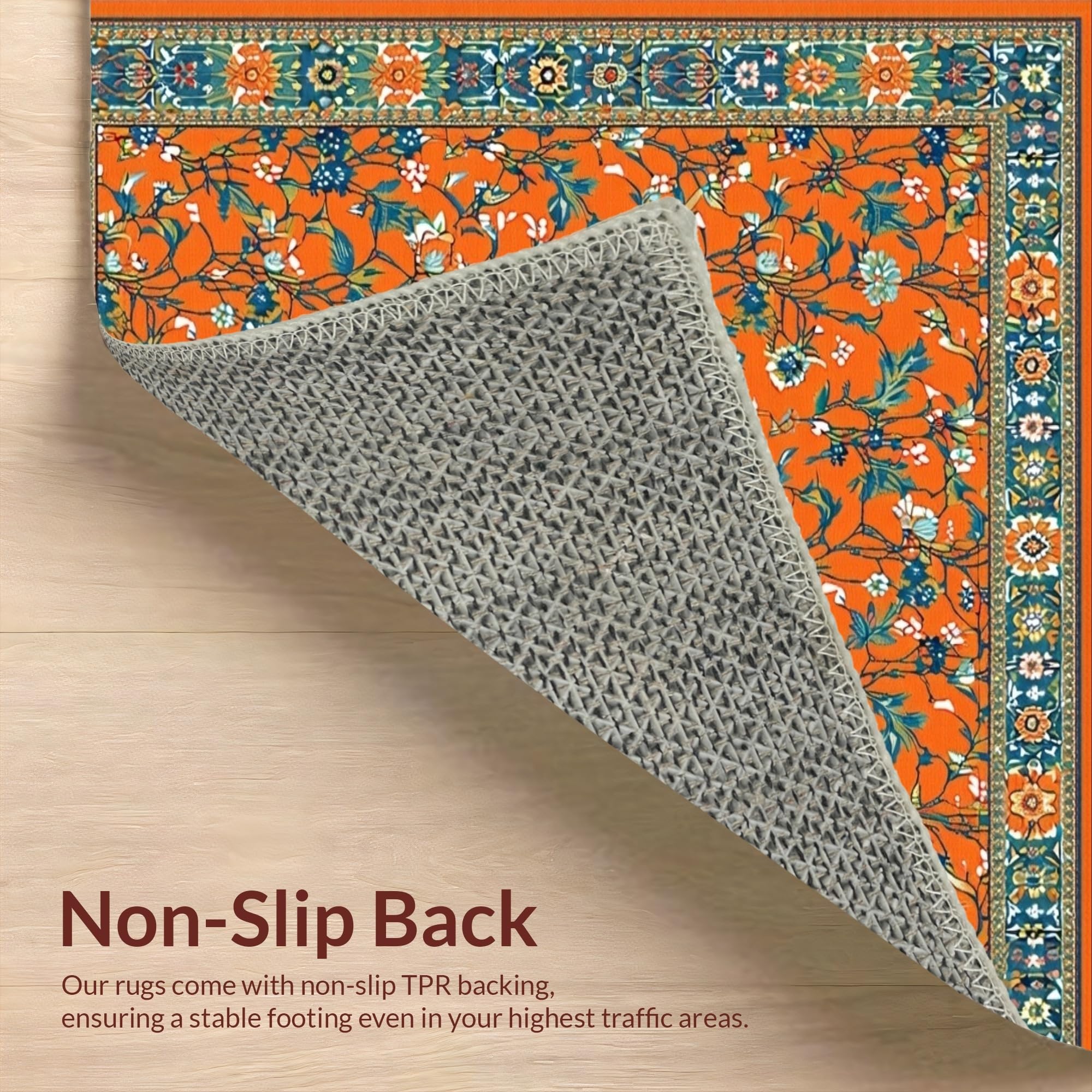 Ultra Soft Area Rug, Non Slip, Stain Resistant, Washable Area Rugs for Living Room, Bedroom, Luxurious Textured Garden Motif(Orange) Overview:
