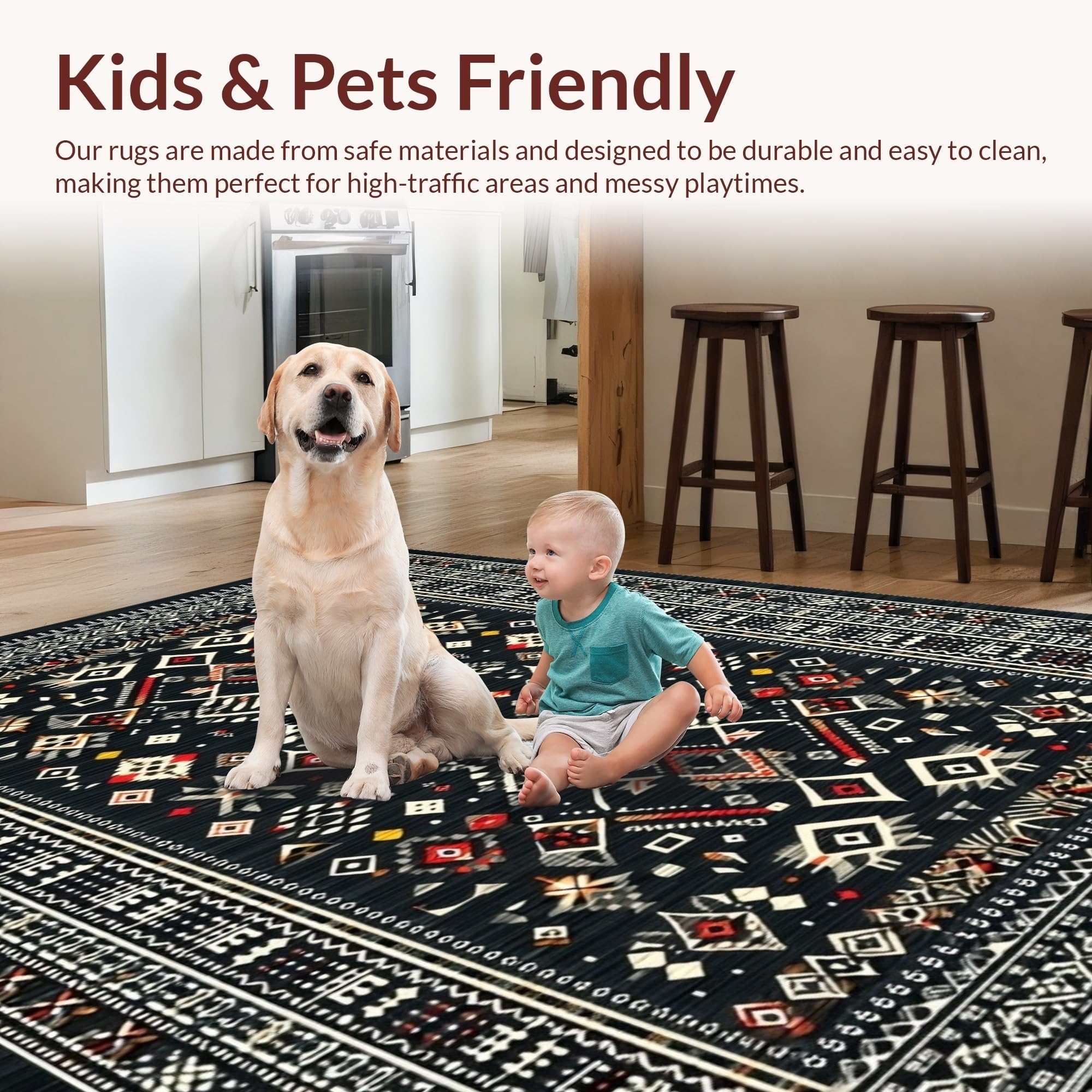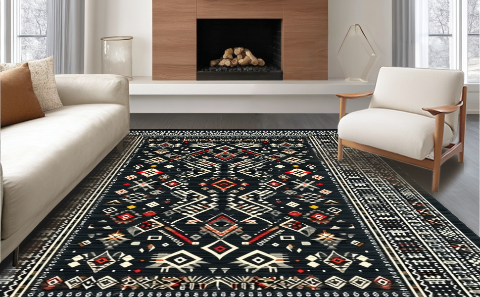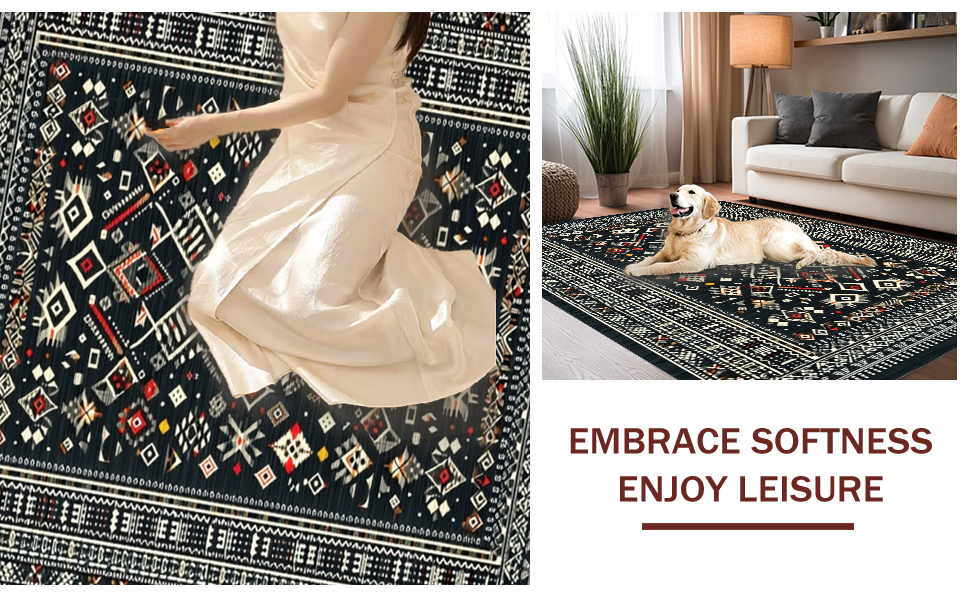 Ultra Soft Area Rug, Non Slip, Stain Resistant, Washable Area Rugs for Living Room, Bedroom, Luxurious Textured Lattice Design(Black) Overview: