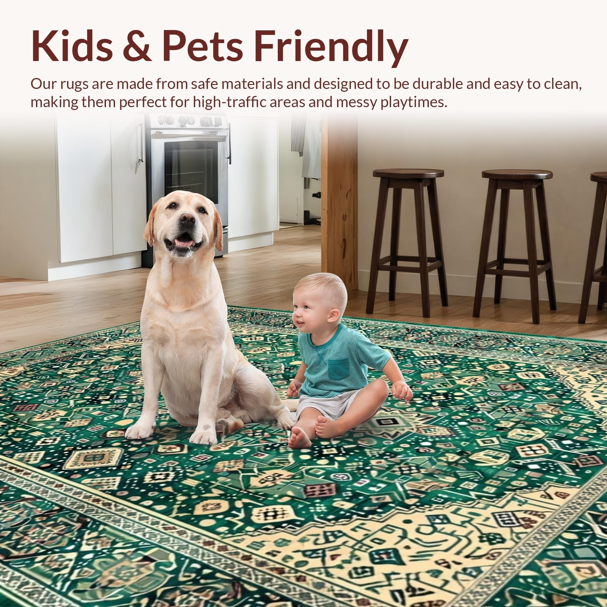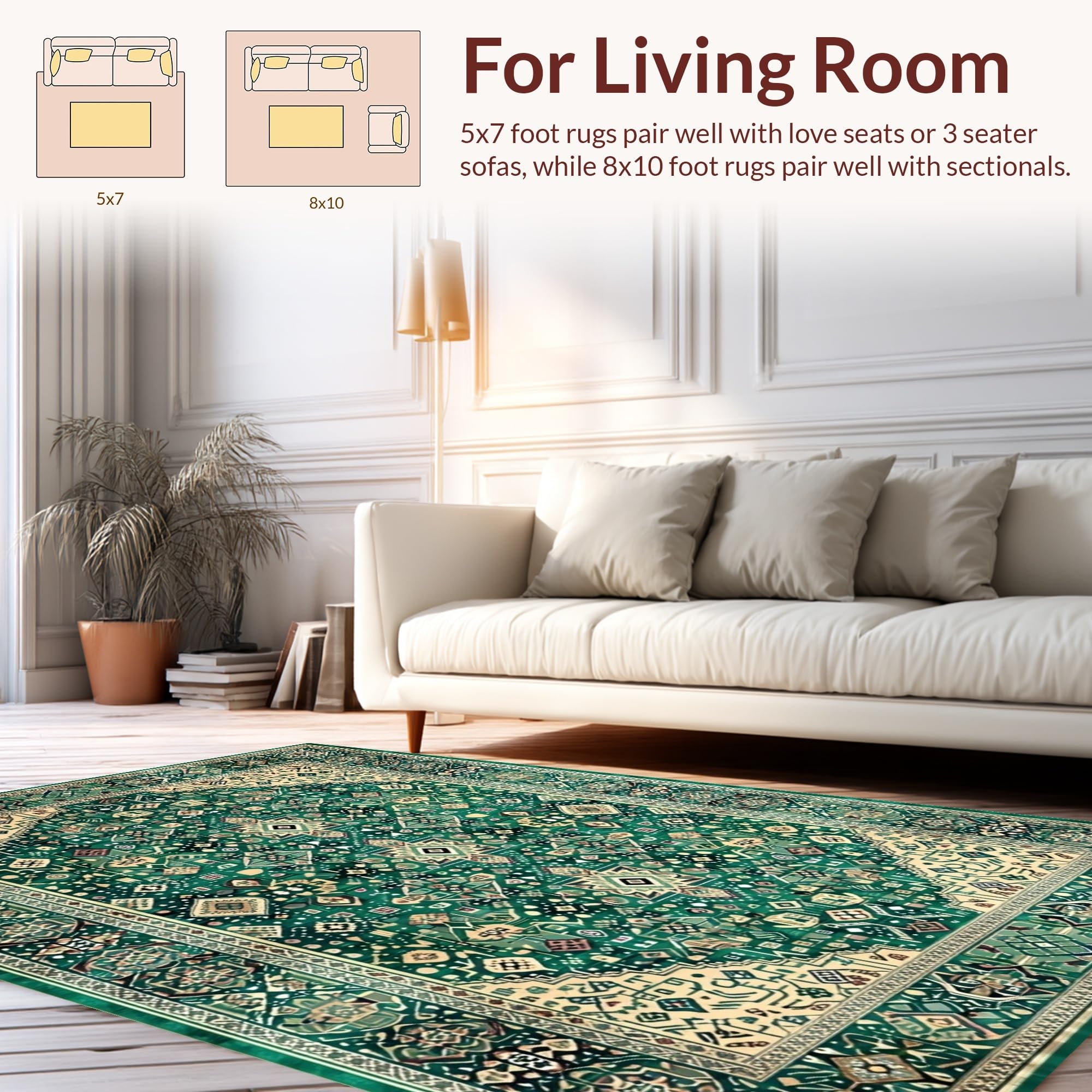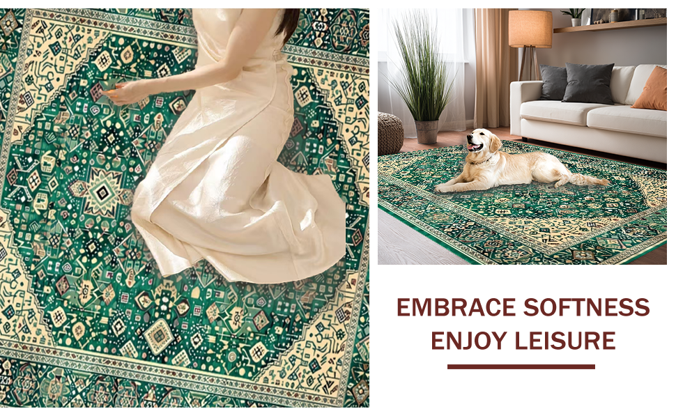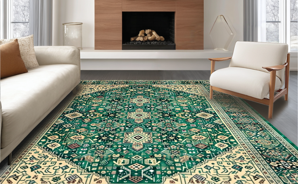 Ultra Soft Area Rug, Non Slip, Stain Resistant, Washable Area Rugs for Living Room, Bedroom, Luxurious Vibrant Floral Design(Green) Overview: