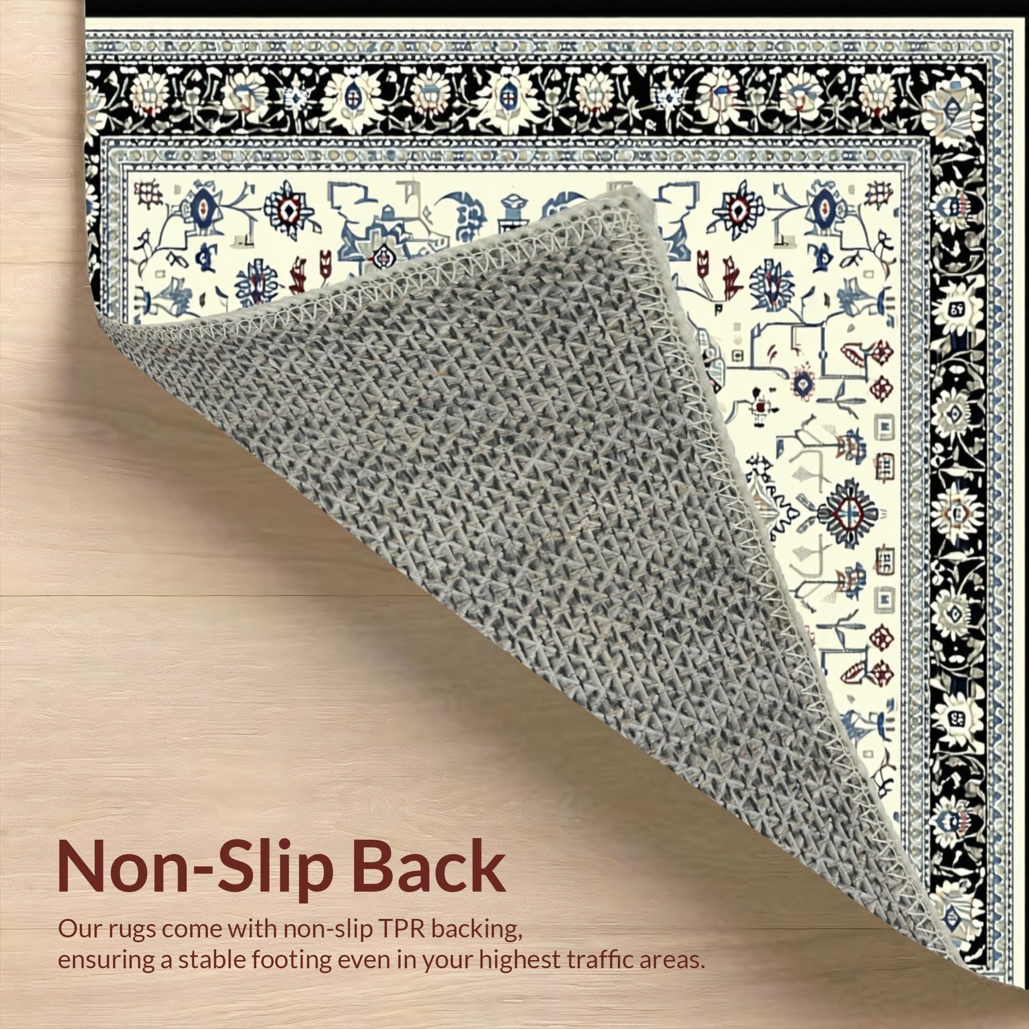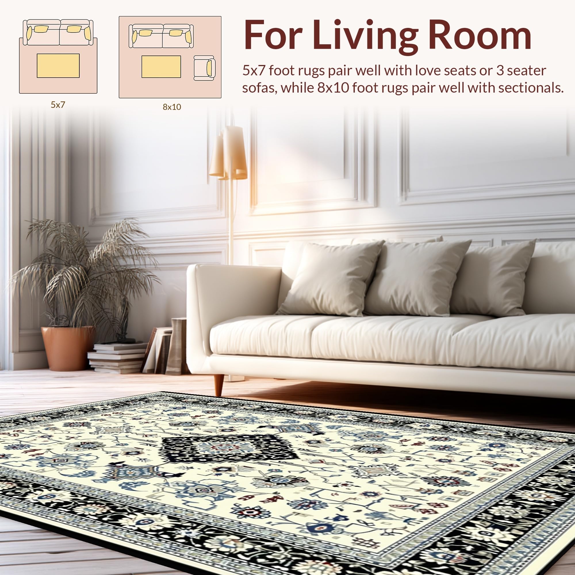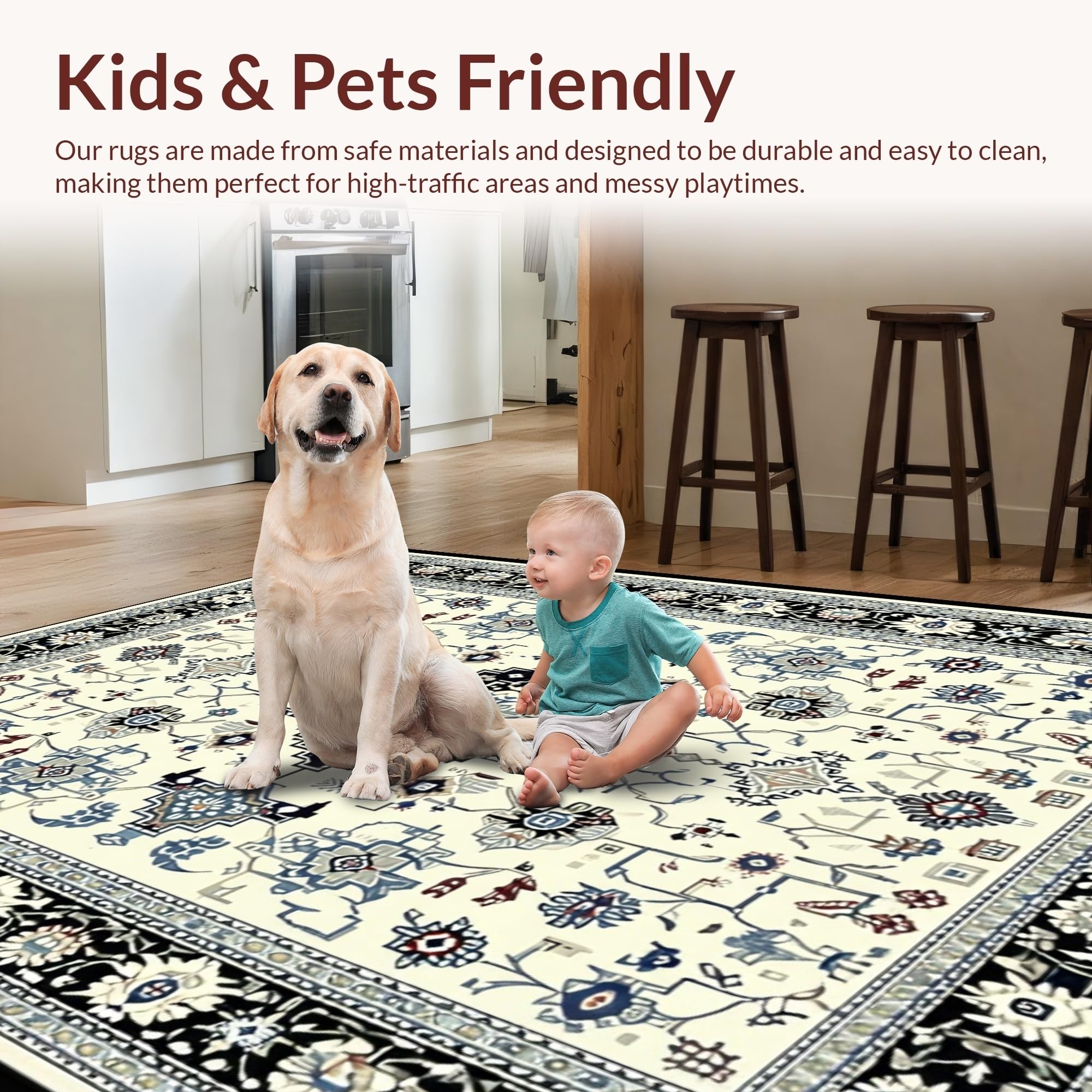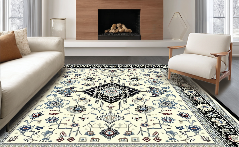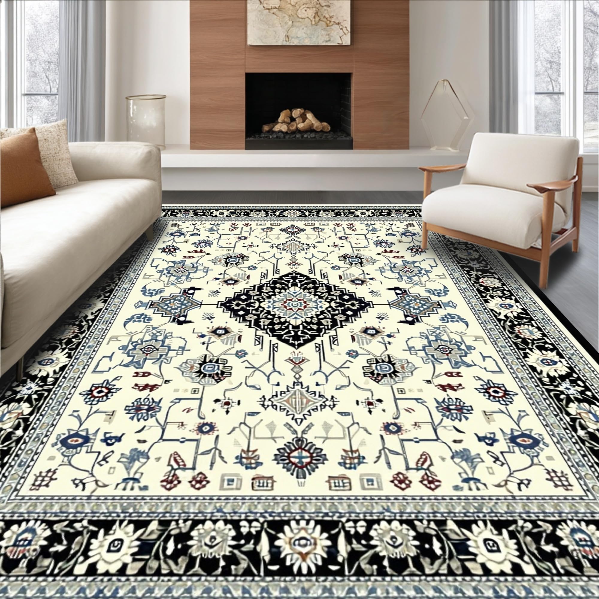 Ultra Soft Area Rug, Non Slip, Stain Resistant, Washable Area Rugs for Living Room, Bedroom, Luxurious Vibrant Symmetrical Elements(White) Overview: