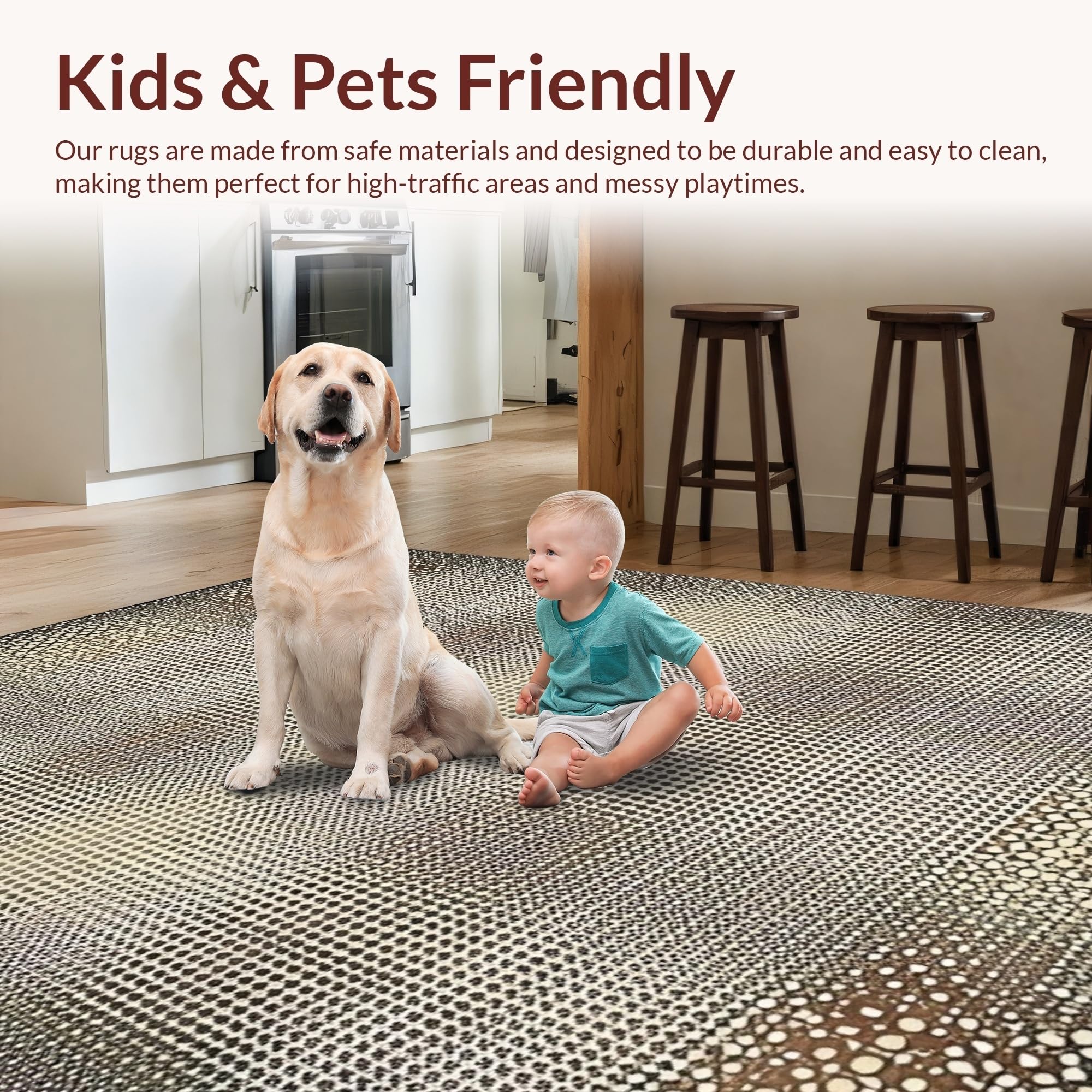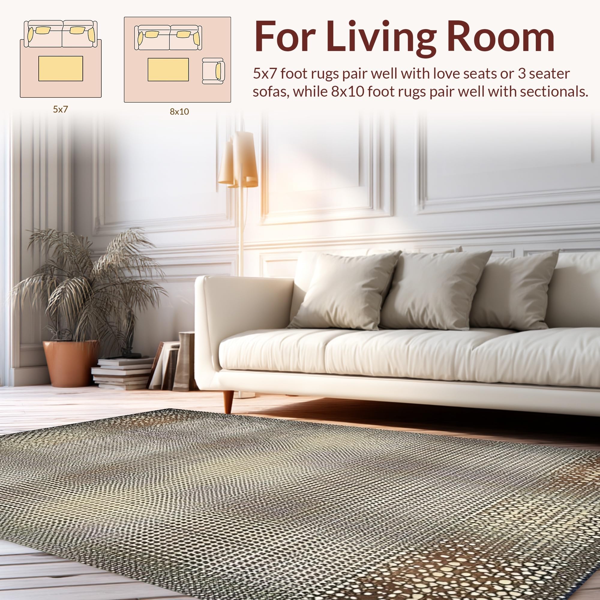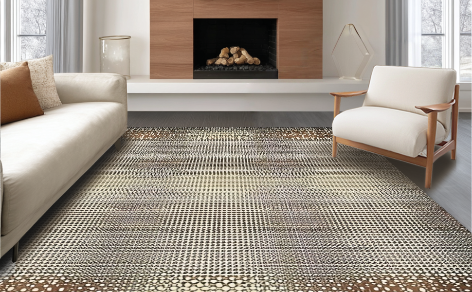 Ultra Soft Area Rug, Non Slip, Stain Resistant, Washable Area Rugs for Living Room, Bedroom, Luxurious Vintage Cattle Design(Beige) Overview: