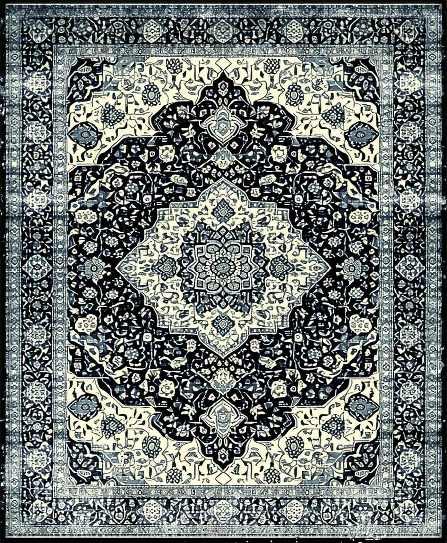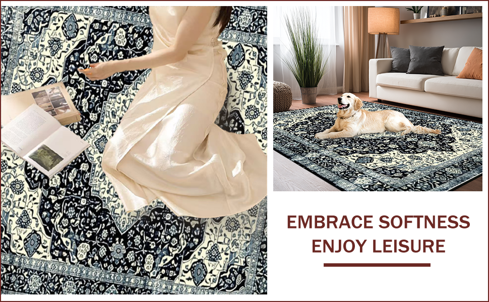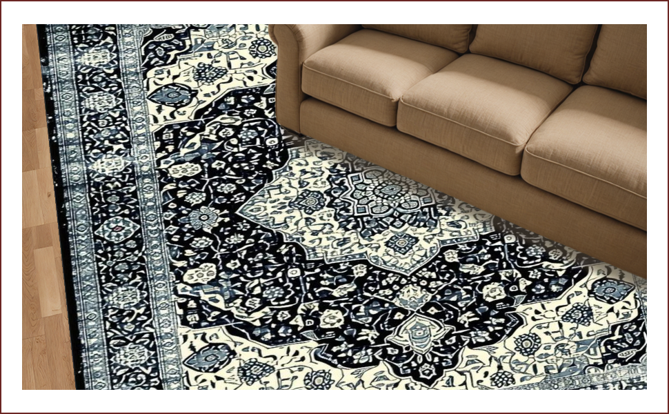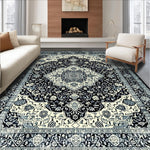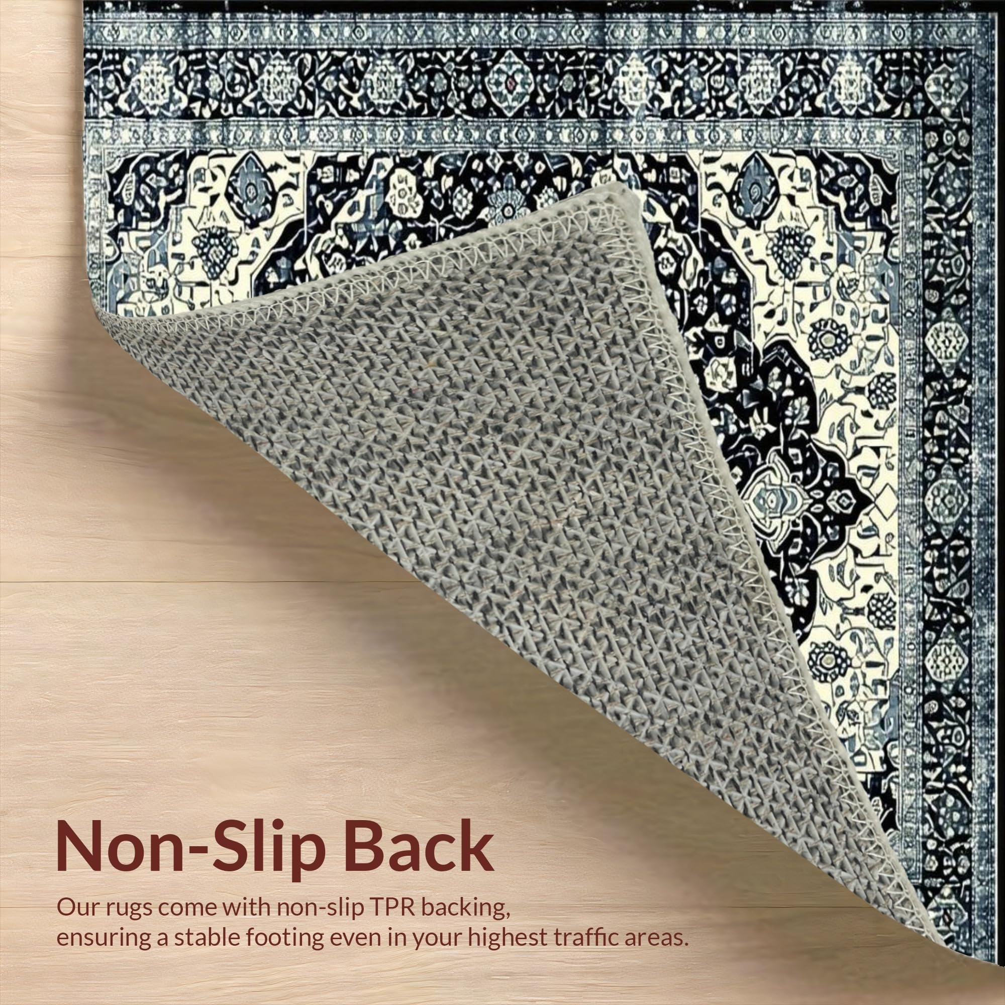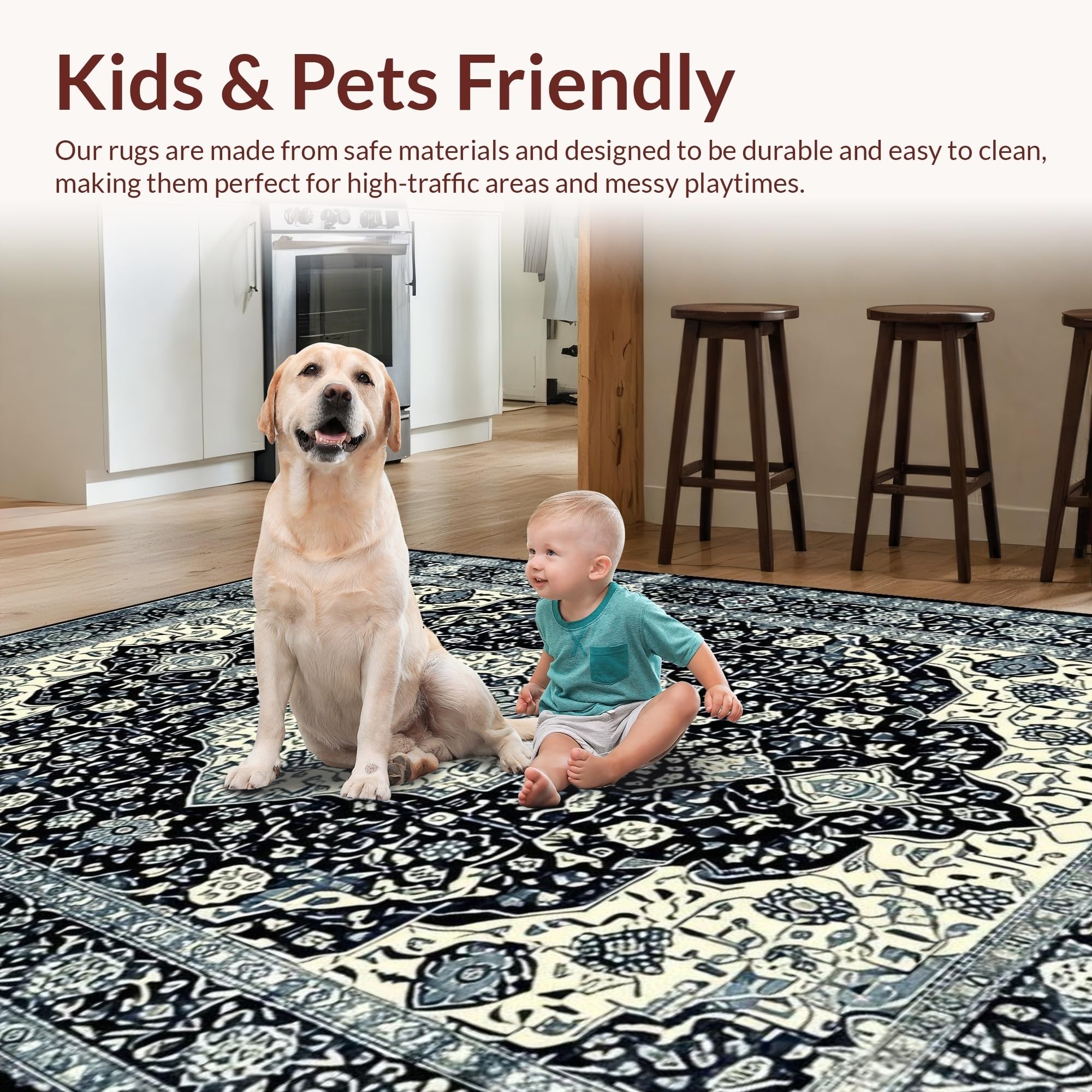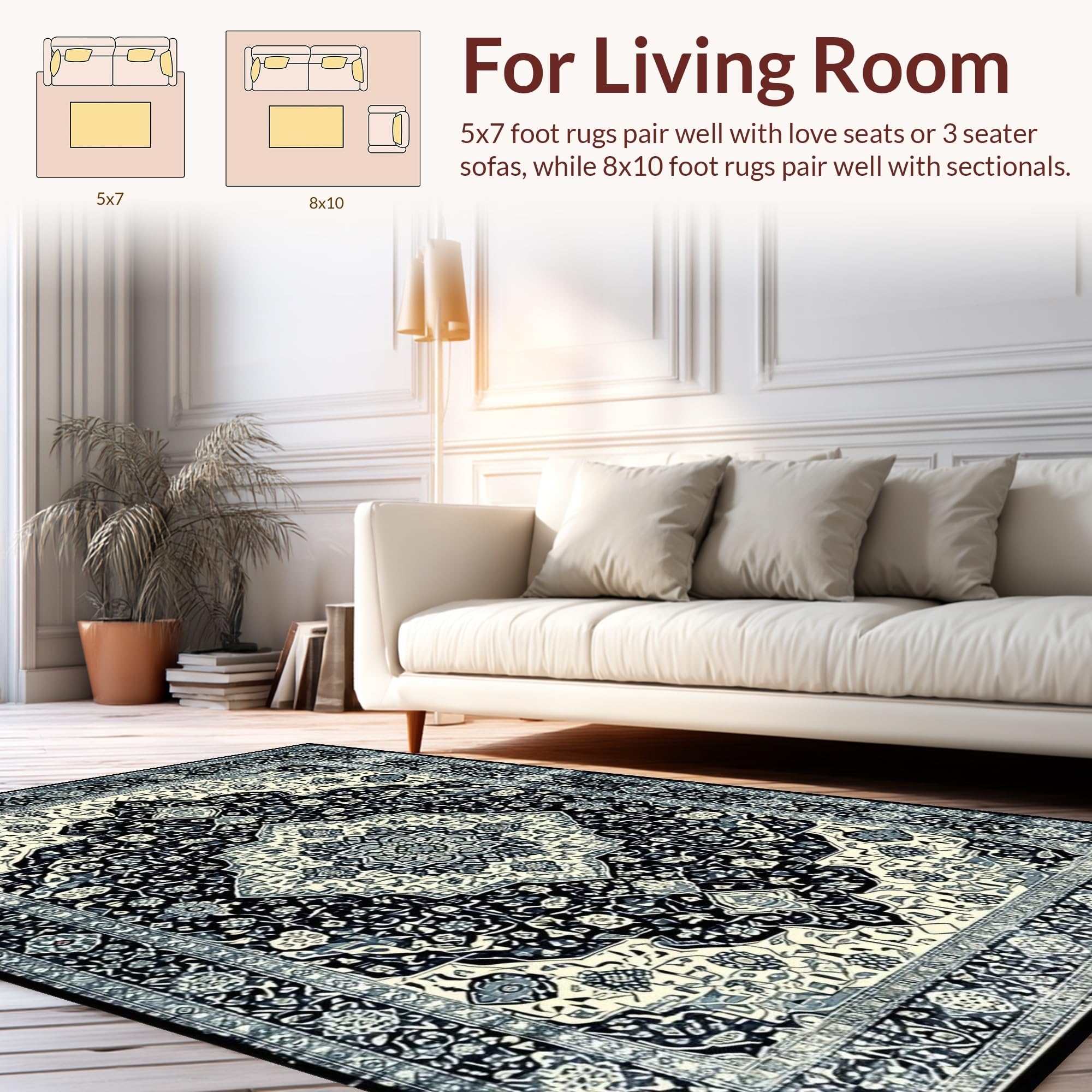 Ultra Soft Area Rug, Non Slip, Stain Resistant, Washable Area Rugs for Living Room, Bedroom, Luxurious Vintage Damask Style(Black) Overview: