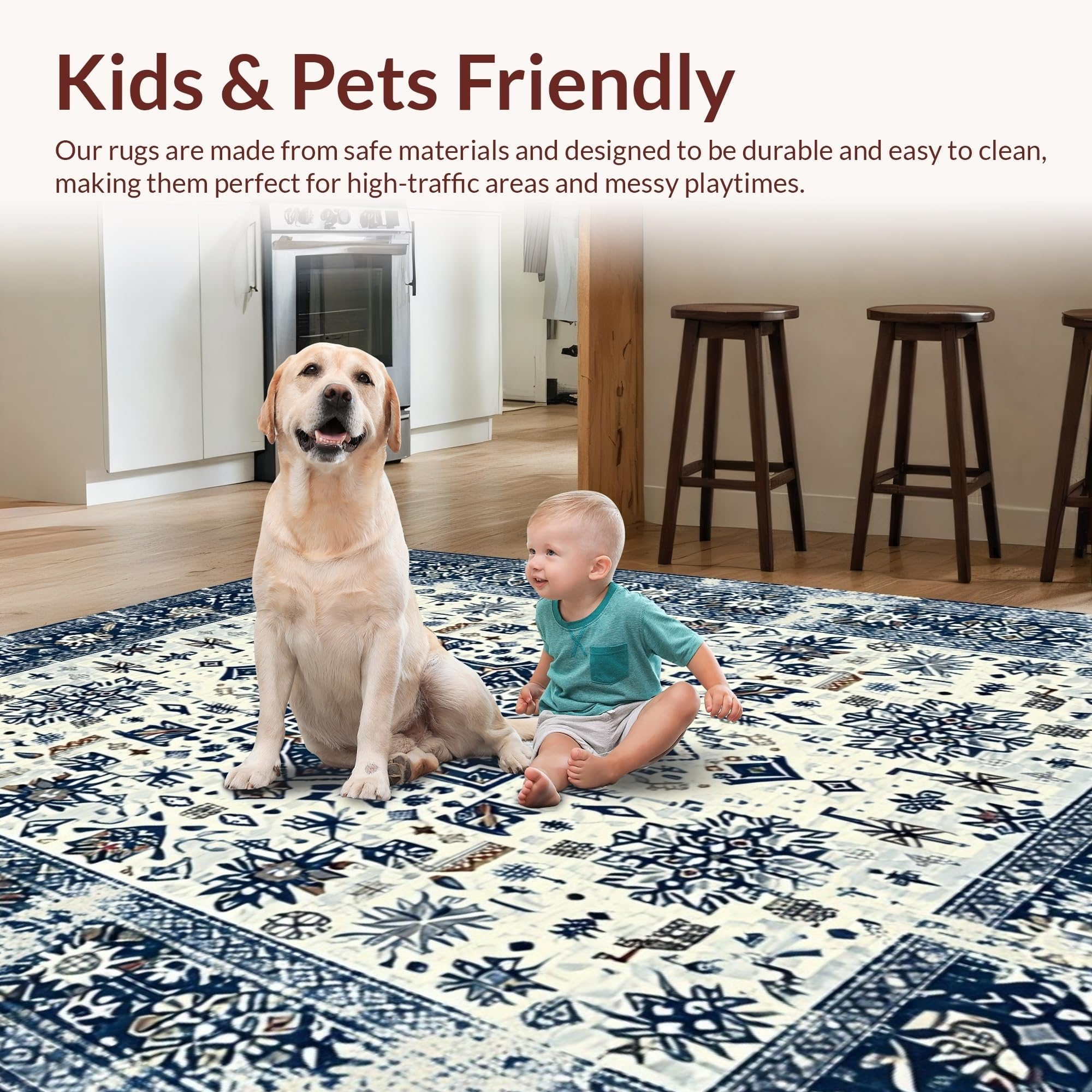 Ultra Soft Area Rug, Non Slip, Stain Resistant, Washable Area Rugs for Living Room, Bedroom, Luxurious Vintage Diamond Pattern(White) Overview:
