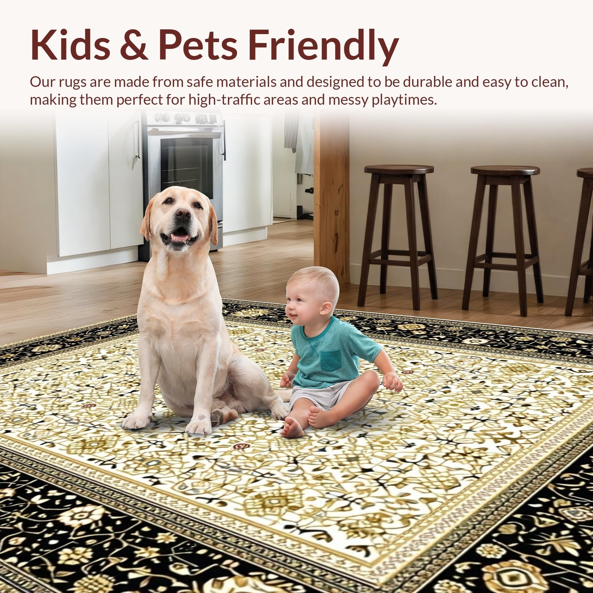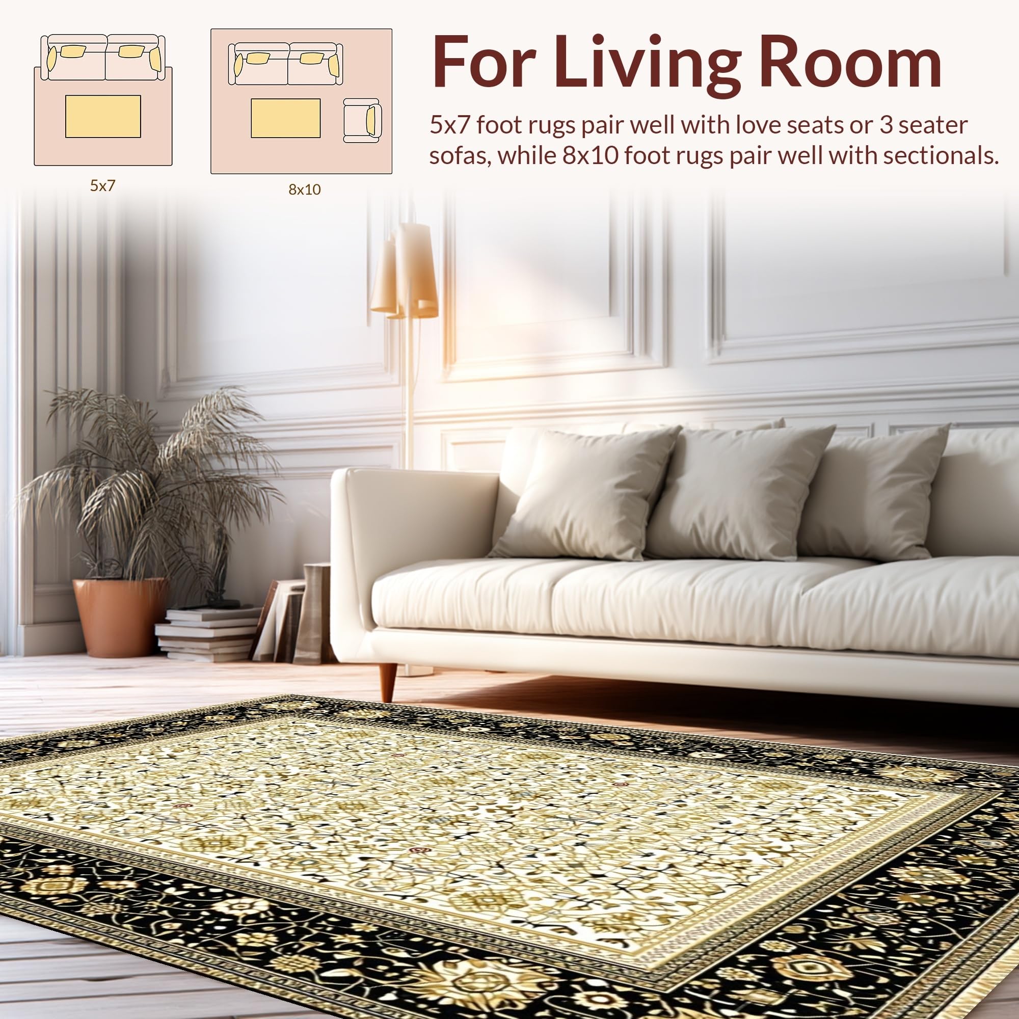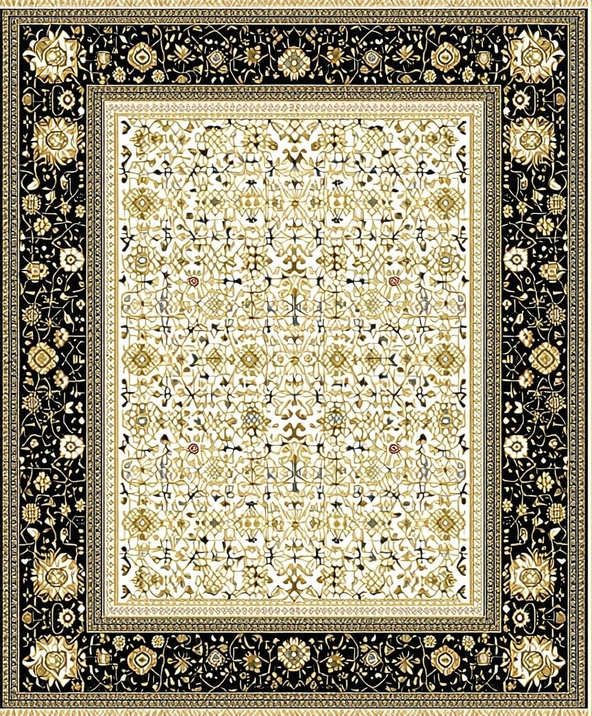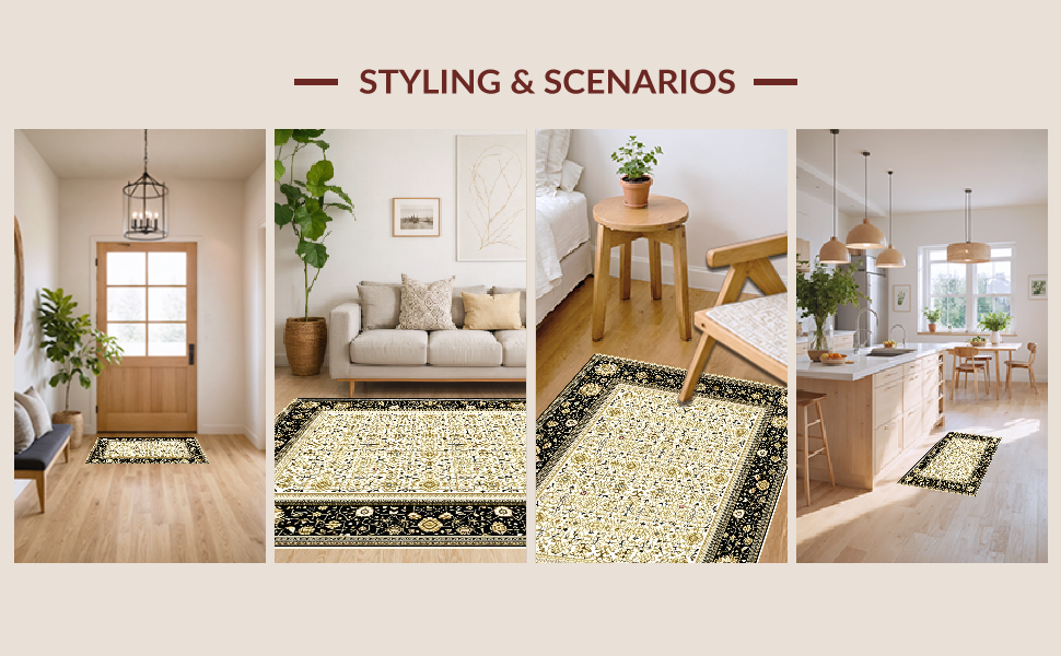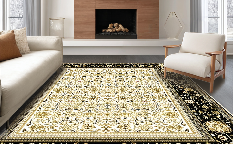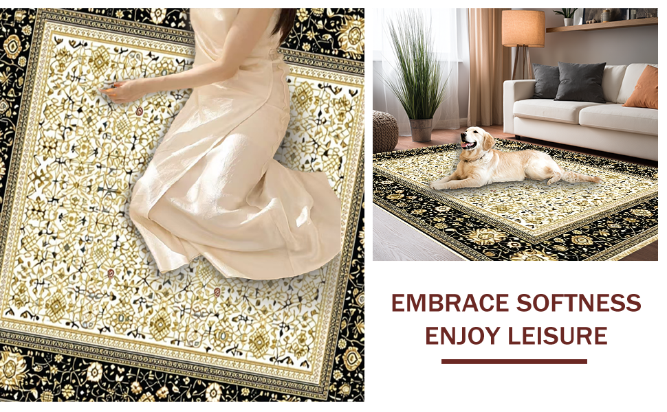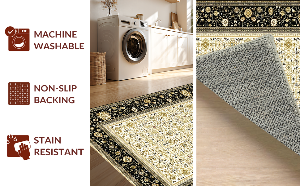 Ultra Soft Area Rug, Non Slip, Stain Resistant, Washable Area Rugs for Living Room, Bedroom, Luxurious Vintage Geometric Arrangement(Black) Overview: