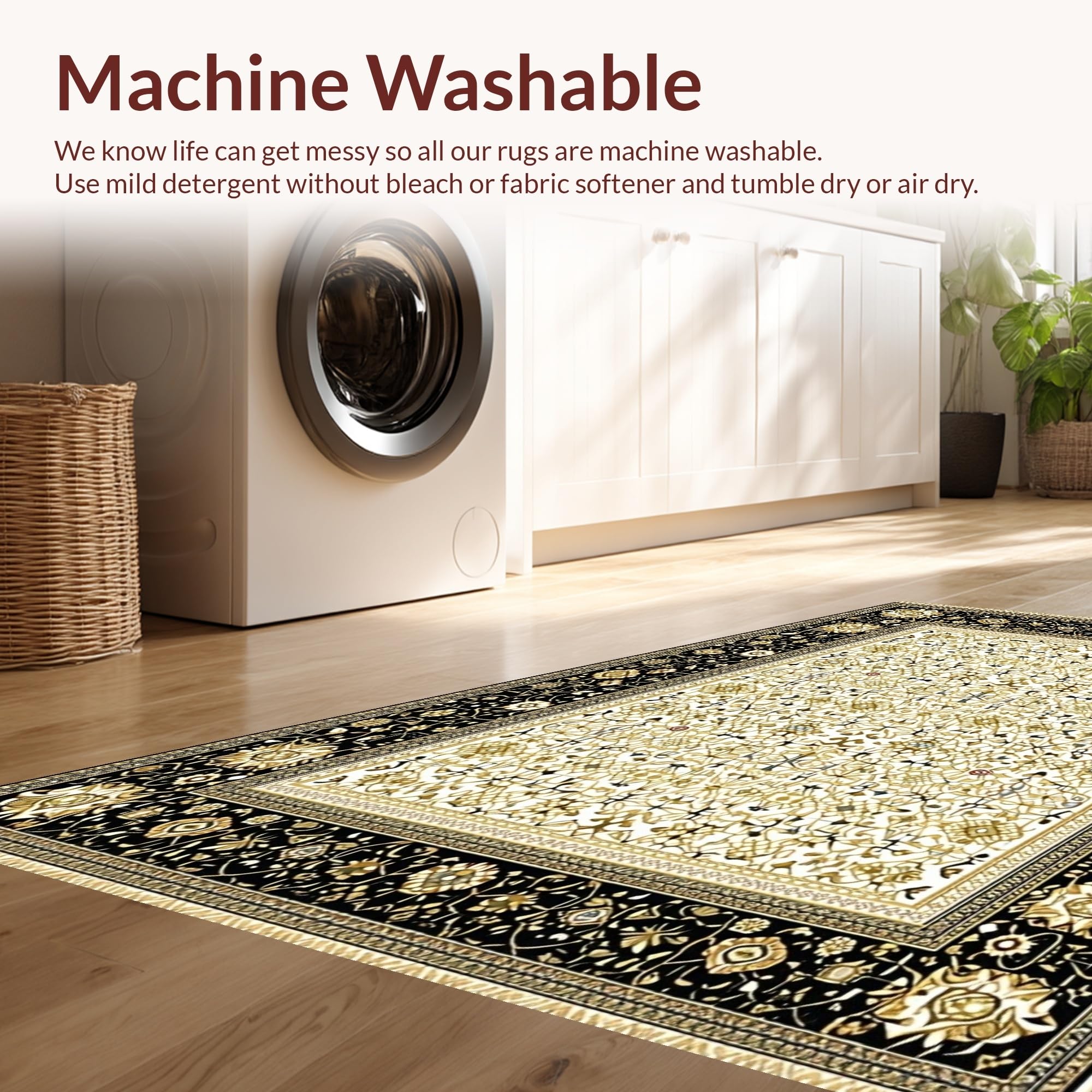 - Machine Washable: Our rugs can be easily thrown in the wash machine.