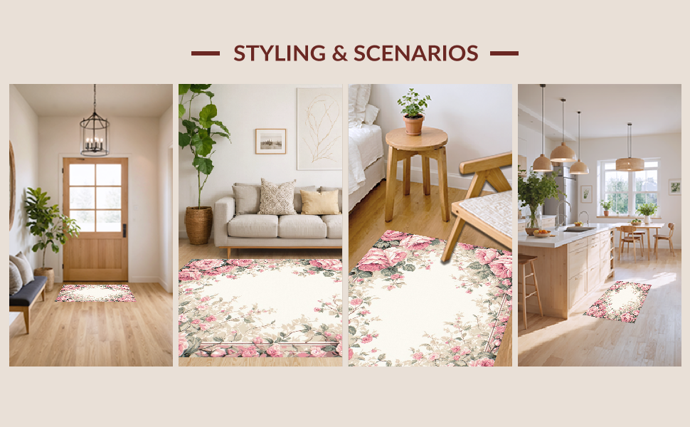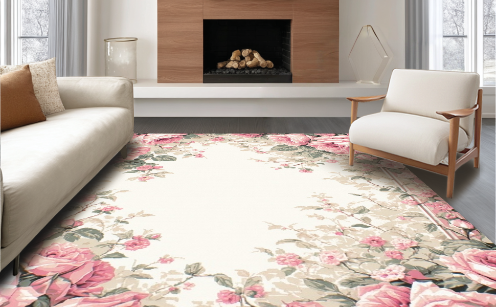 Ultra Soft Area Rug, Non Slip, Stain Resistant, Washable Area Rugs for Living Room, Bedroom, Luxurious Vintage-Inspired Circular Motif(Pink) Overview: