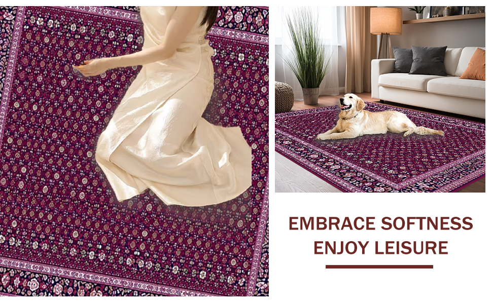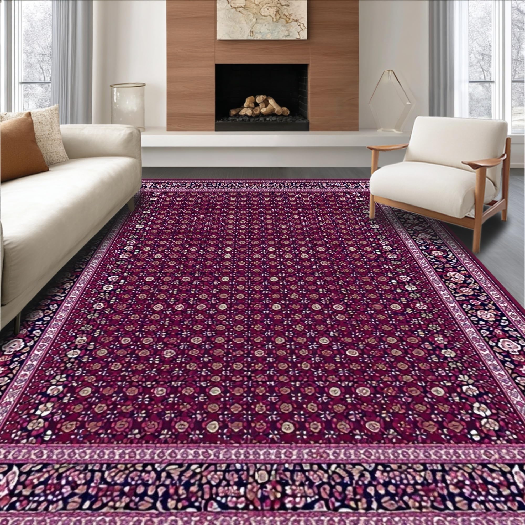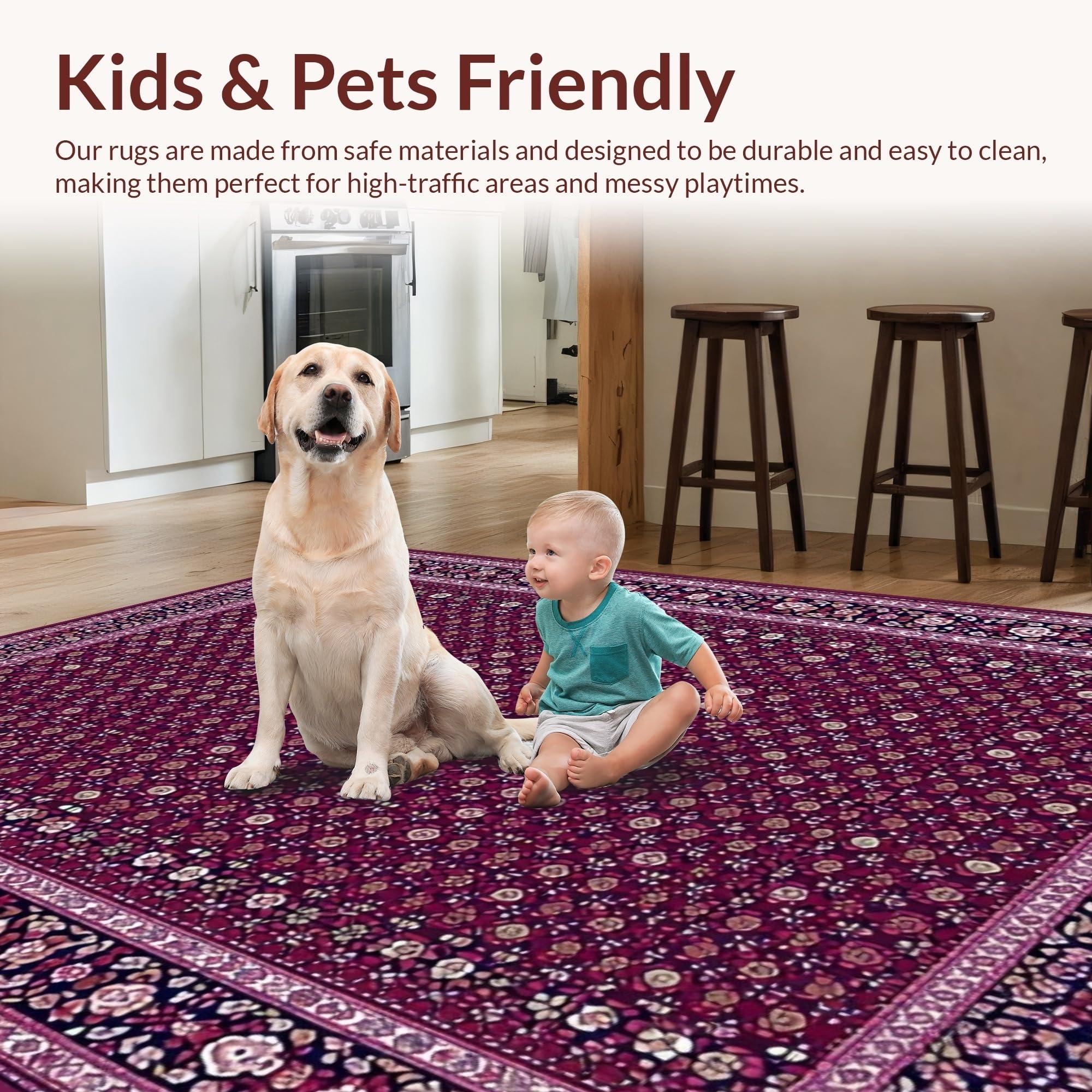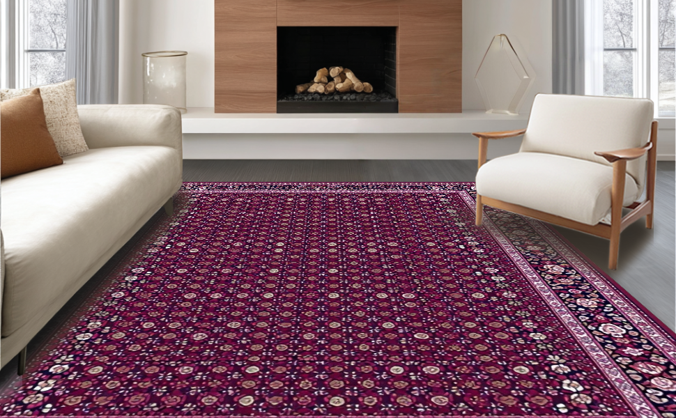 Ultra Soft Area Rug, Non Slip, Stain Resistant, Washable Area Rugs for Living Room, Bedroom, Luxurious Vintage-Inspired Design(Red) Overview: