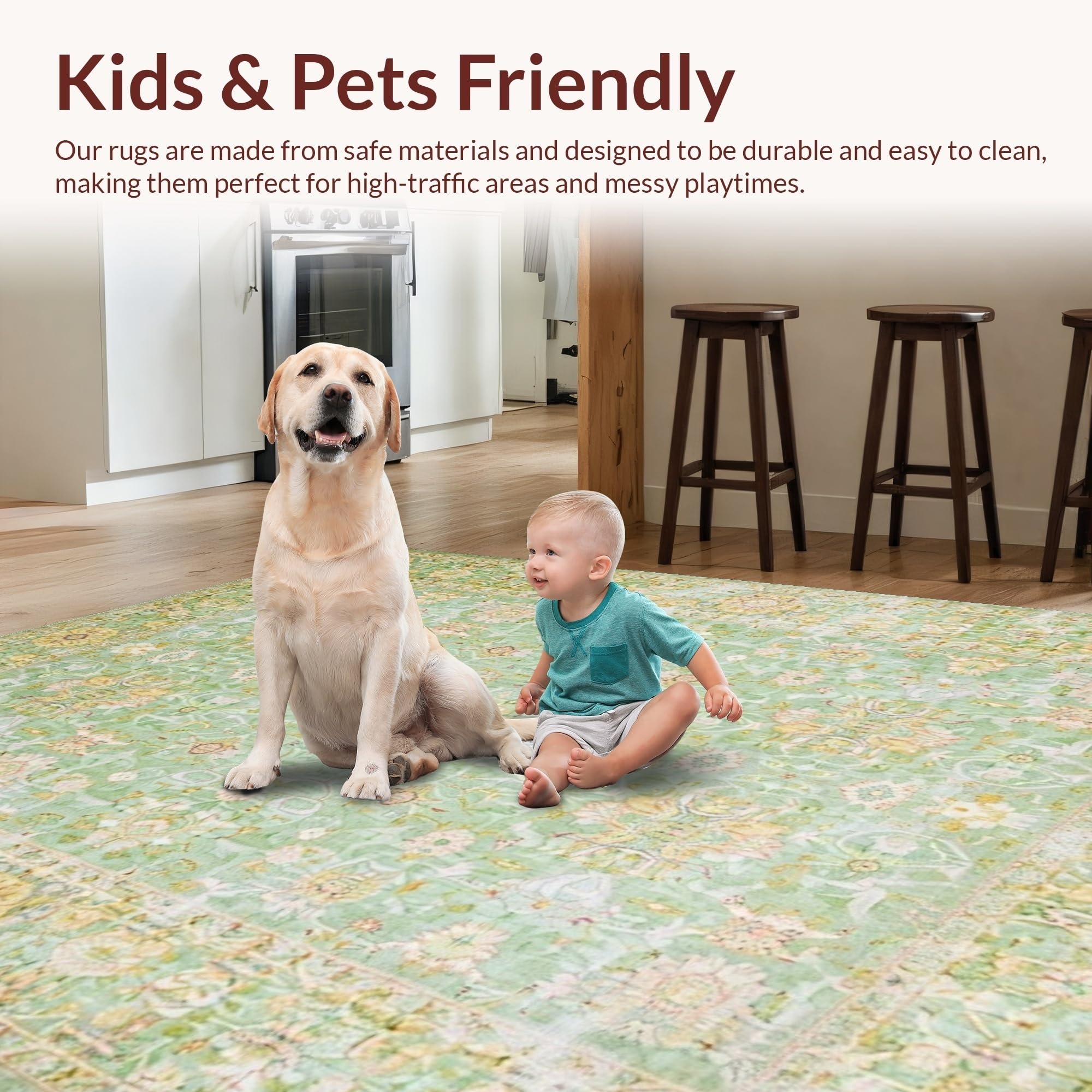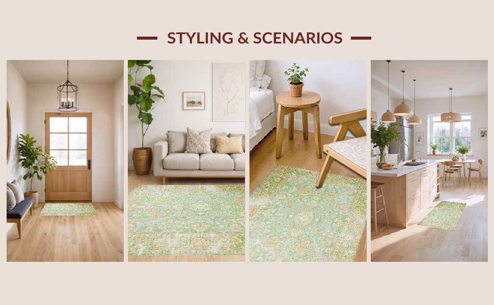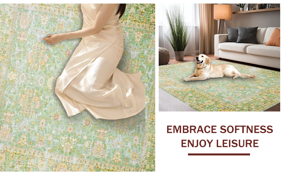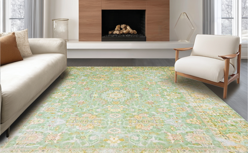 Ultra Soft Area Rug, Non Slip, Stain Resistant, Washable Area Rugs for Living Room, Bedroom, Luxurious Vintage Sage Green Palette(Green) Overview: