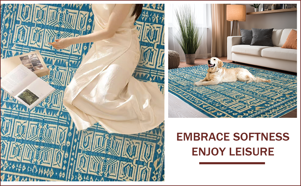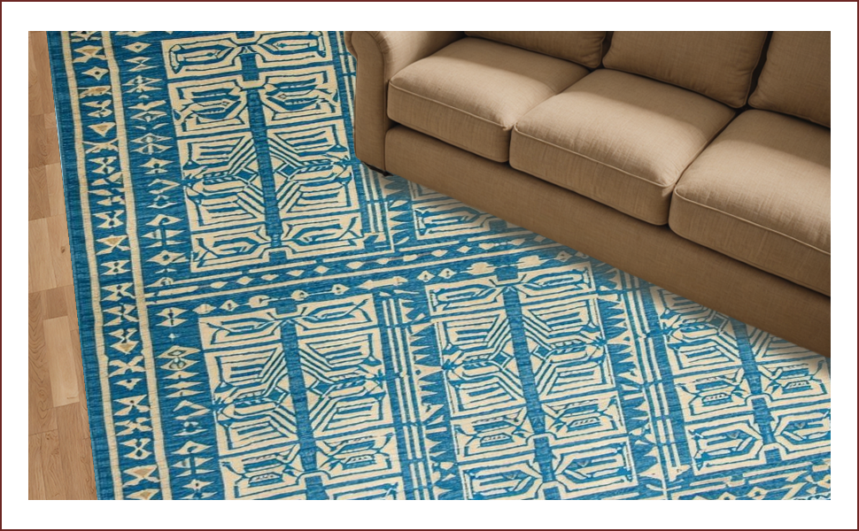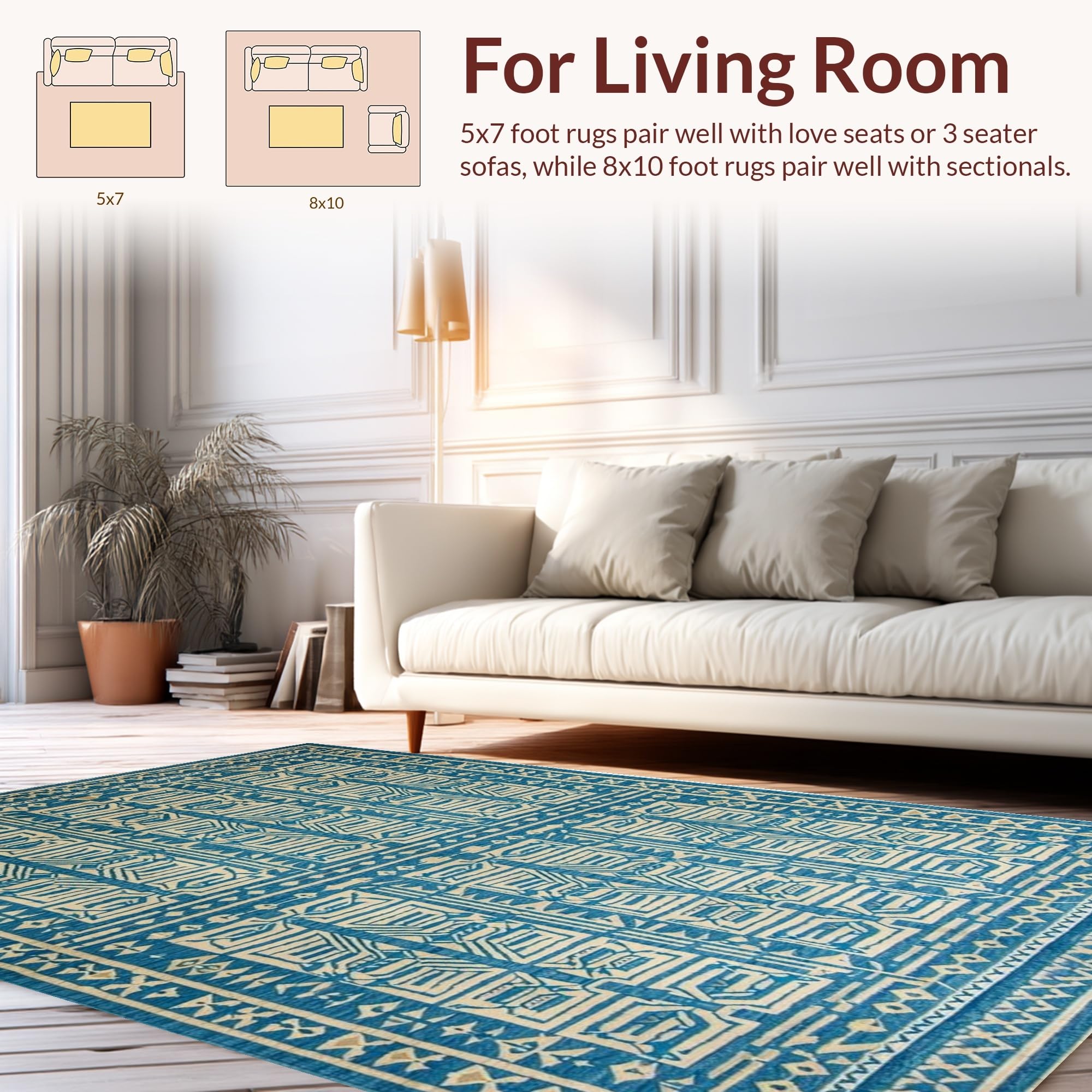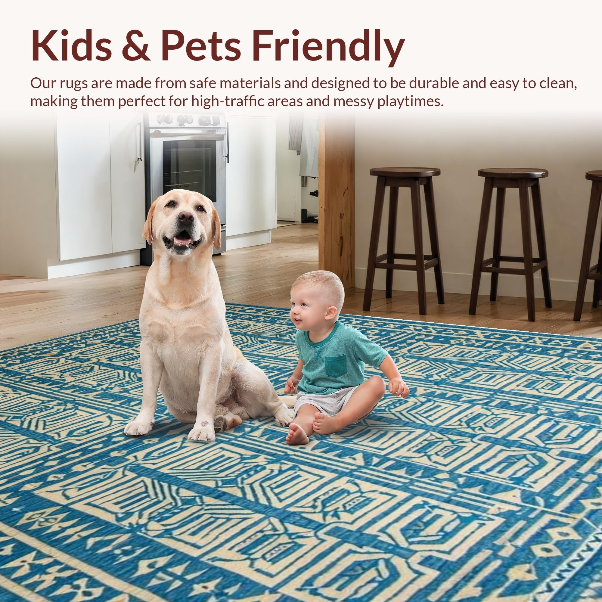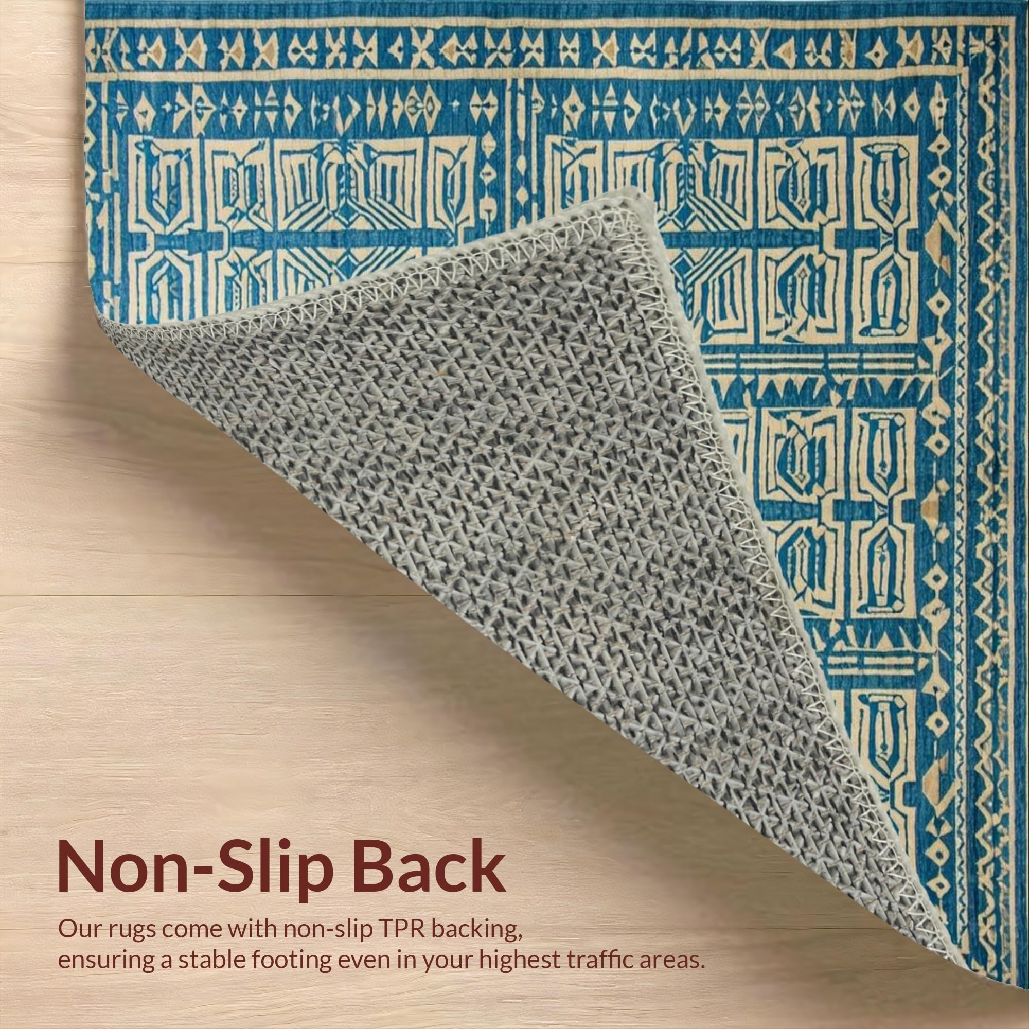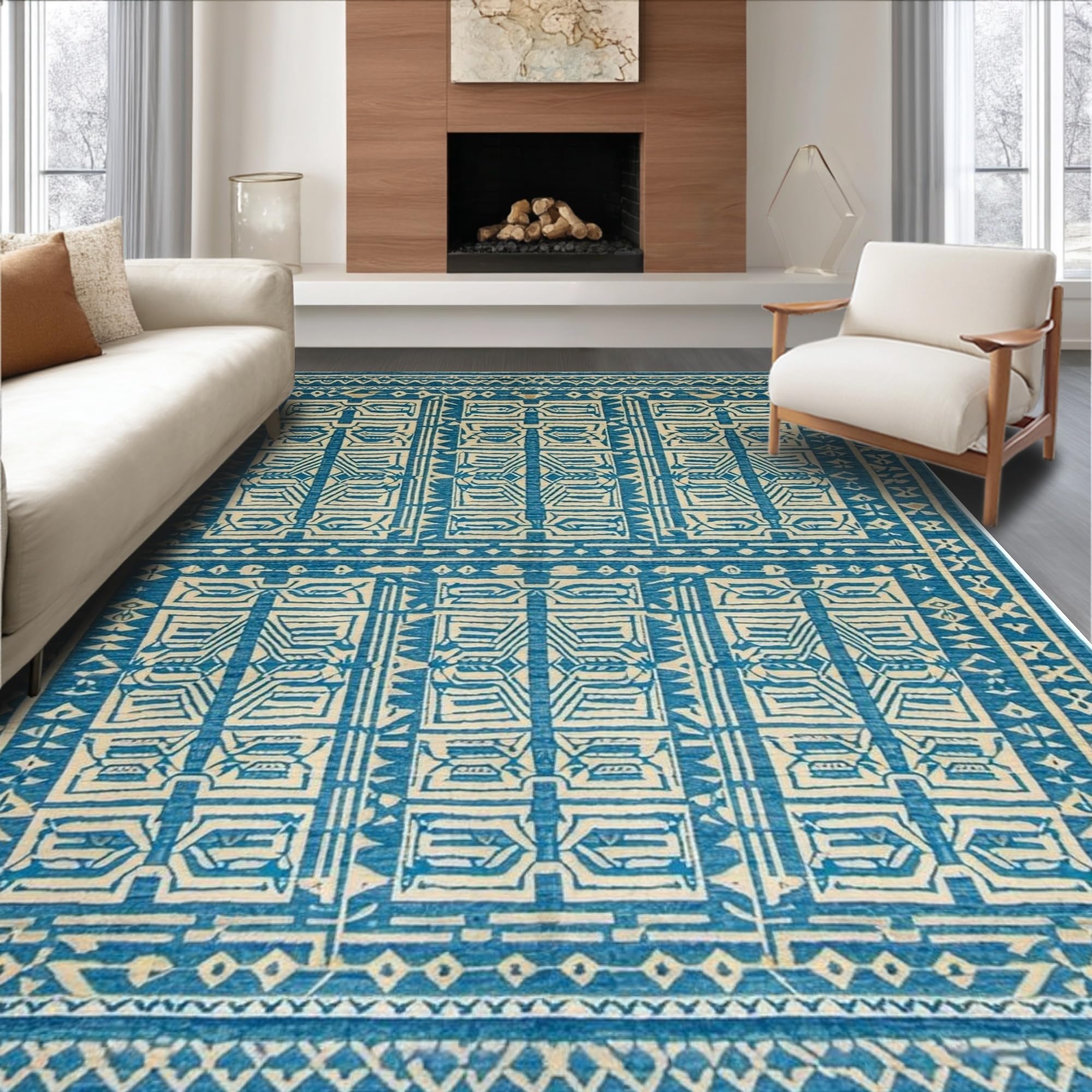 Ultra Soft Area Rug, Non Slip, Stain Resistant, Washable Area Rugs for Living Room, Bedroom, Luxurious Vintage Tiled Aesthetic(Blue) Overview: