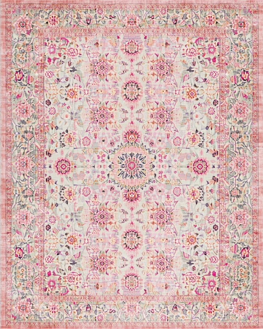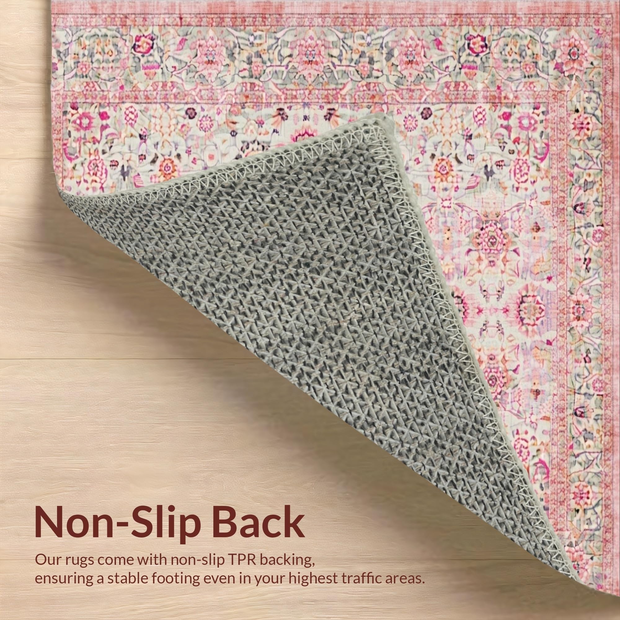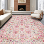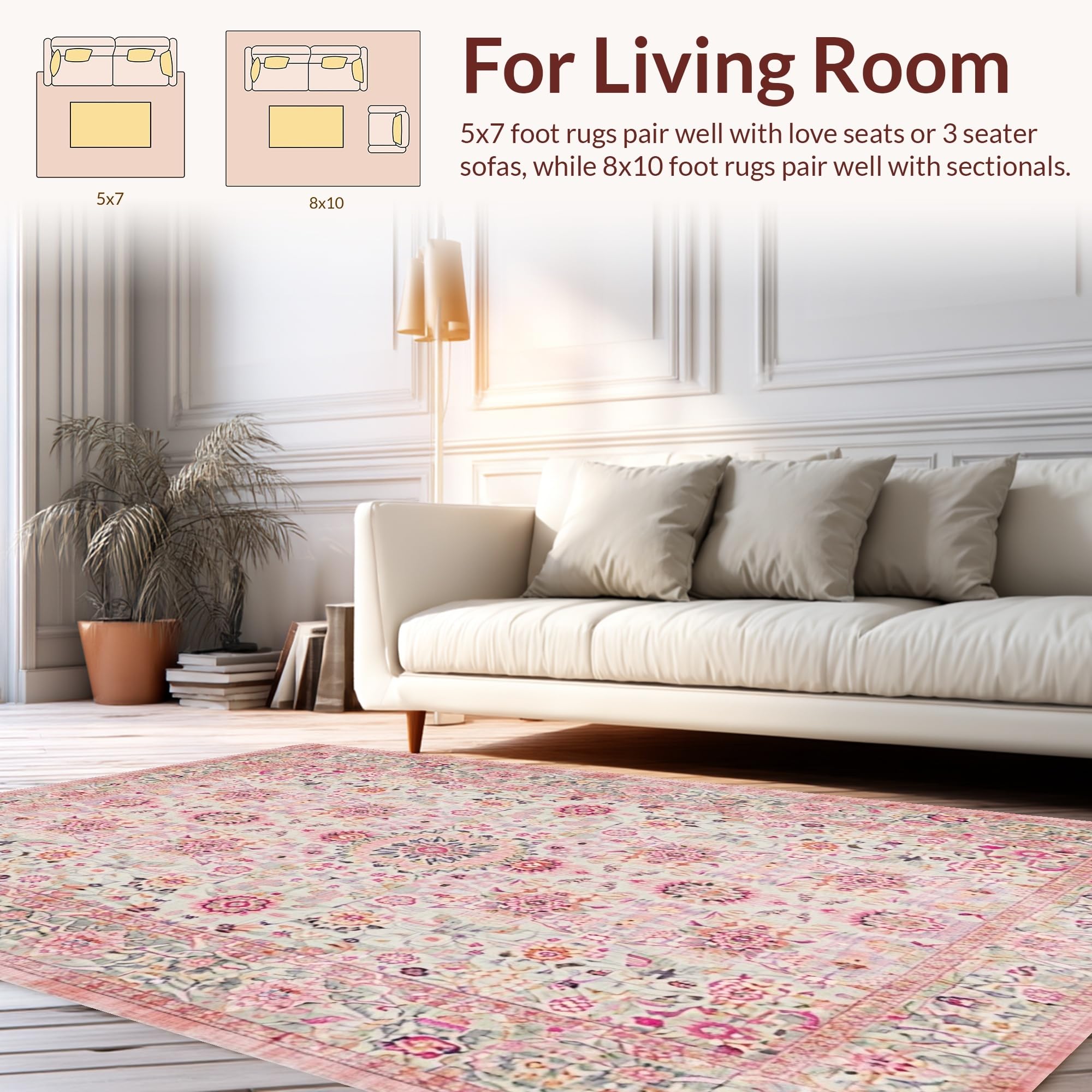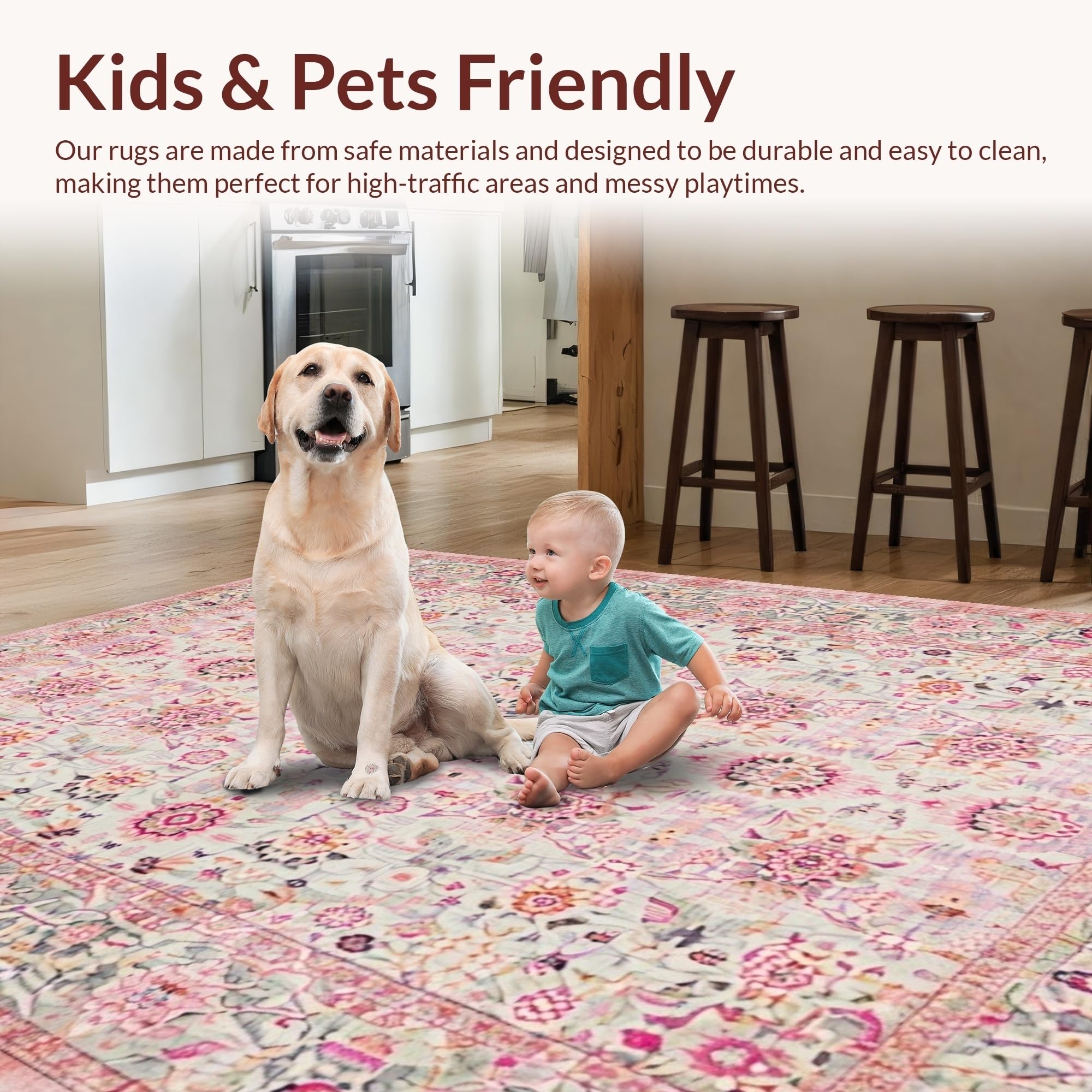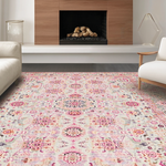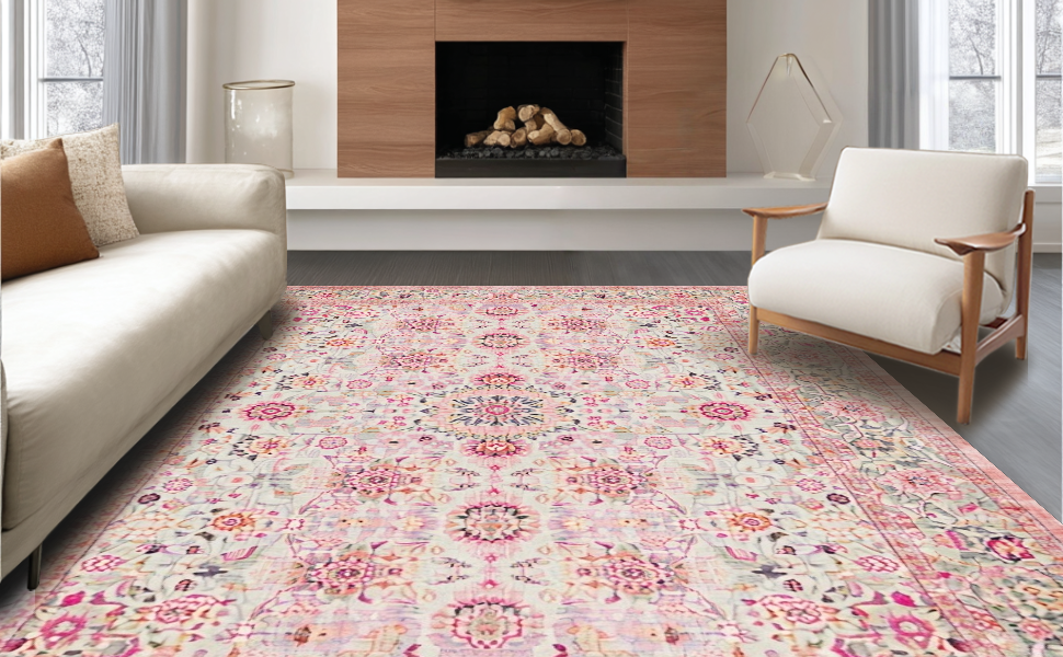 Ultra Soft Area Rug, Non Slip, Stain Resistant, Washable Area Rugs for Living Room, Bedroom, Luxurious Warm Toned Medallion(Pink) Overview:
