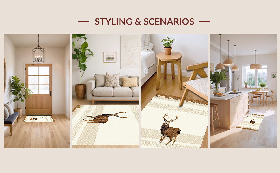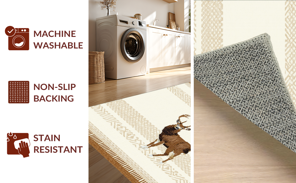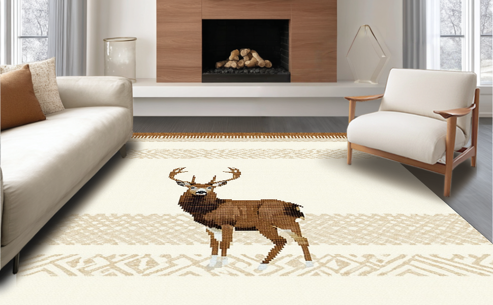 Ultra Soft Area Rug, Non Slip, Stain Resistant, Washable Area Rugs for Living Room, Bedroom, Luxurious Warm Tones Wildlife Design(Beige) Overview: