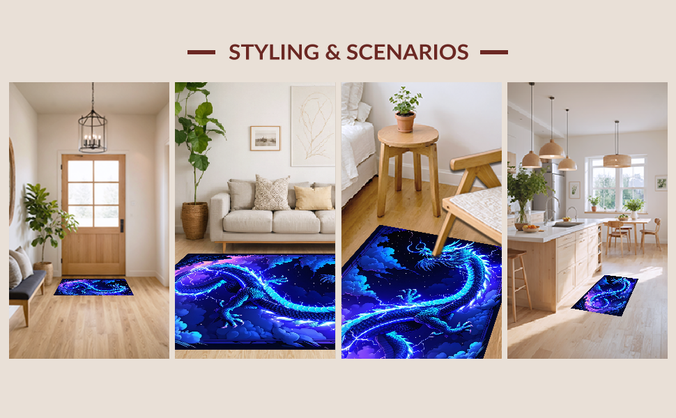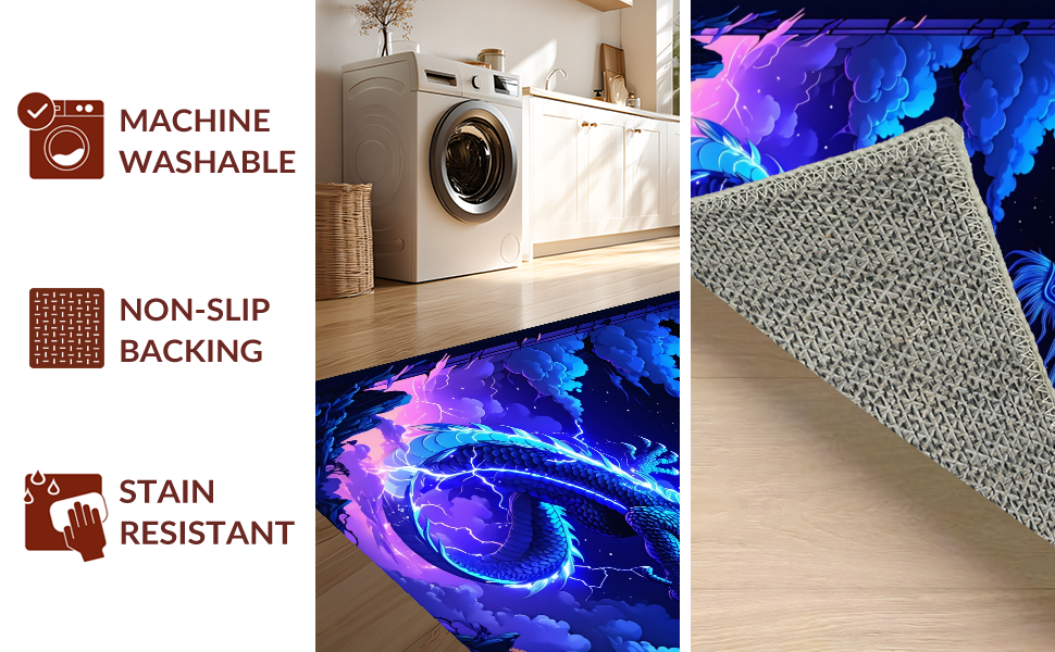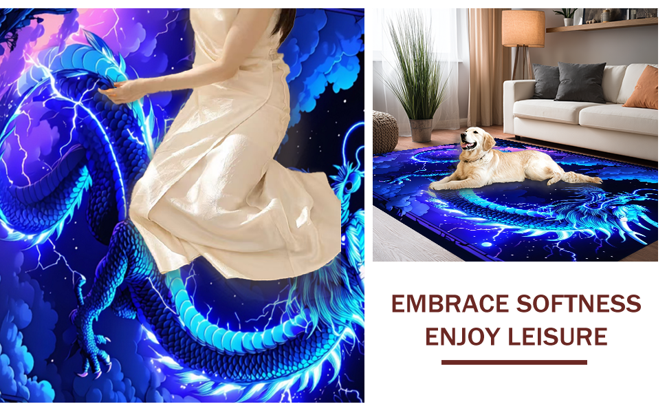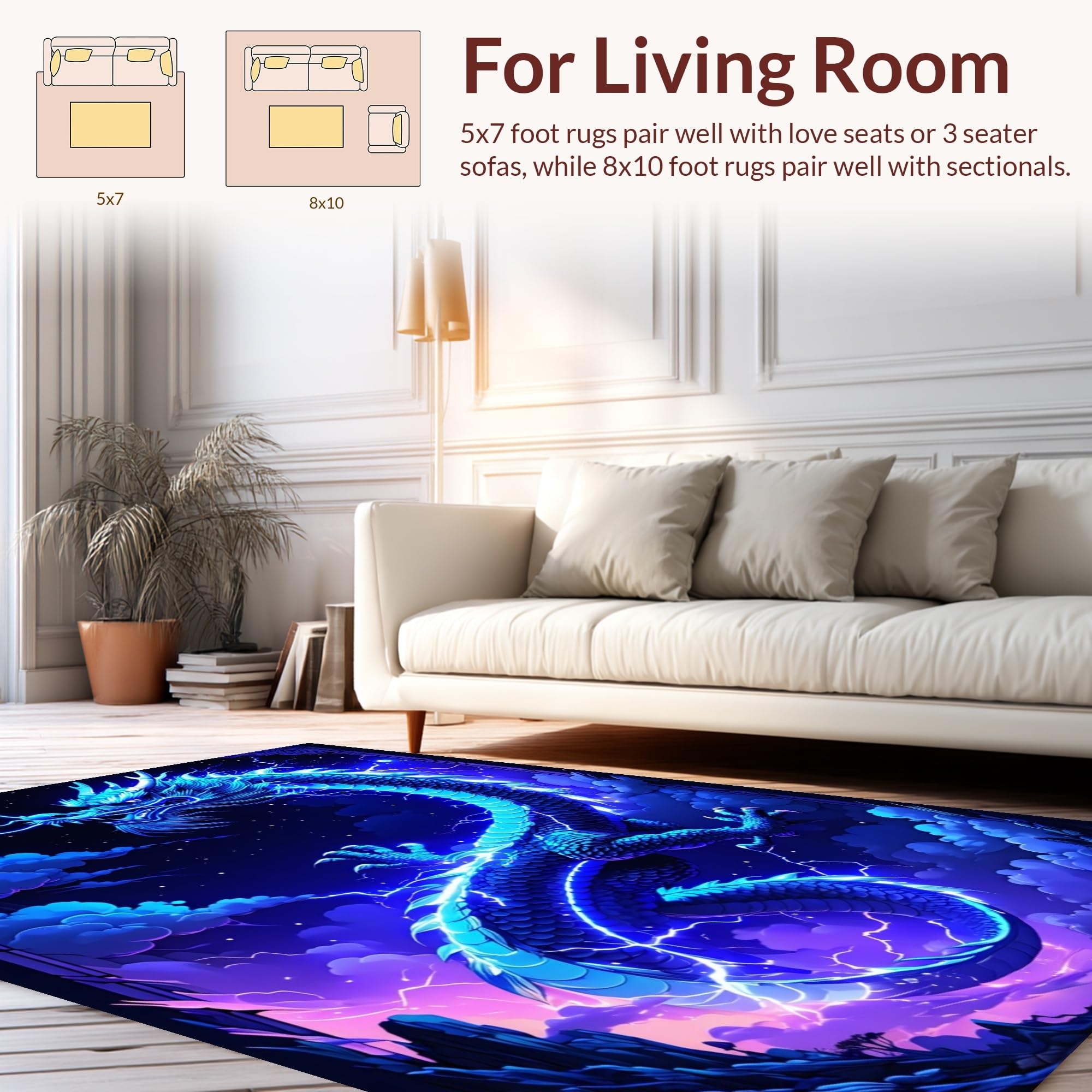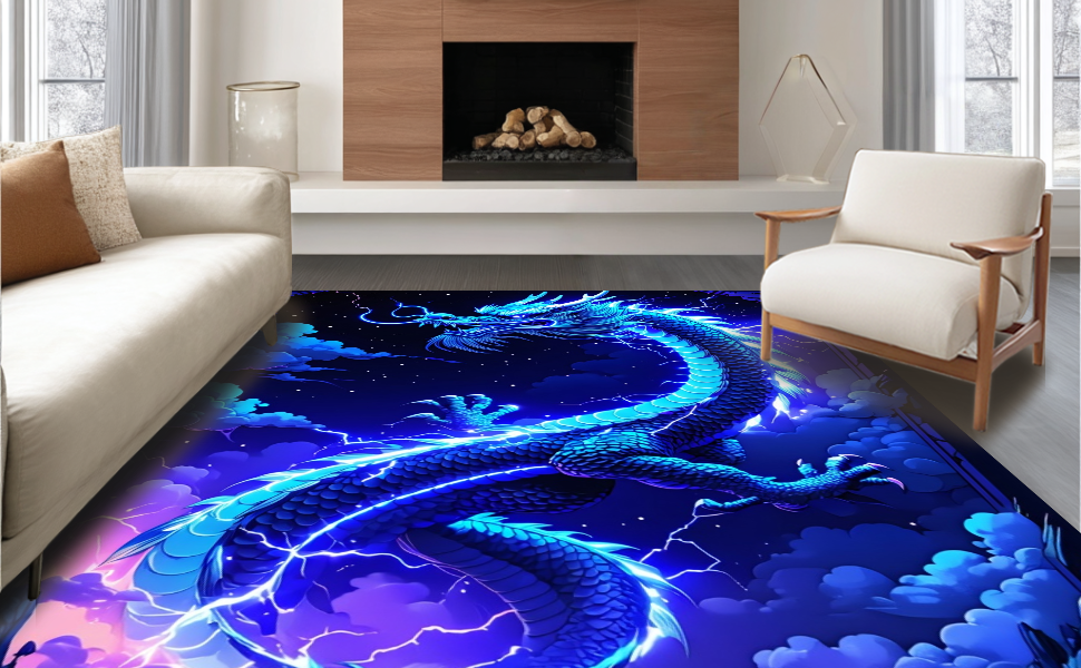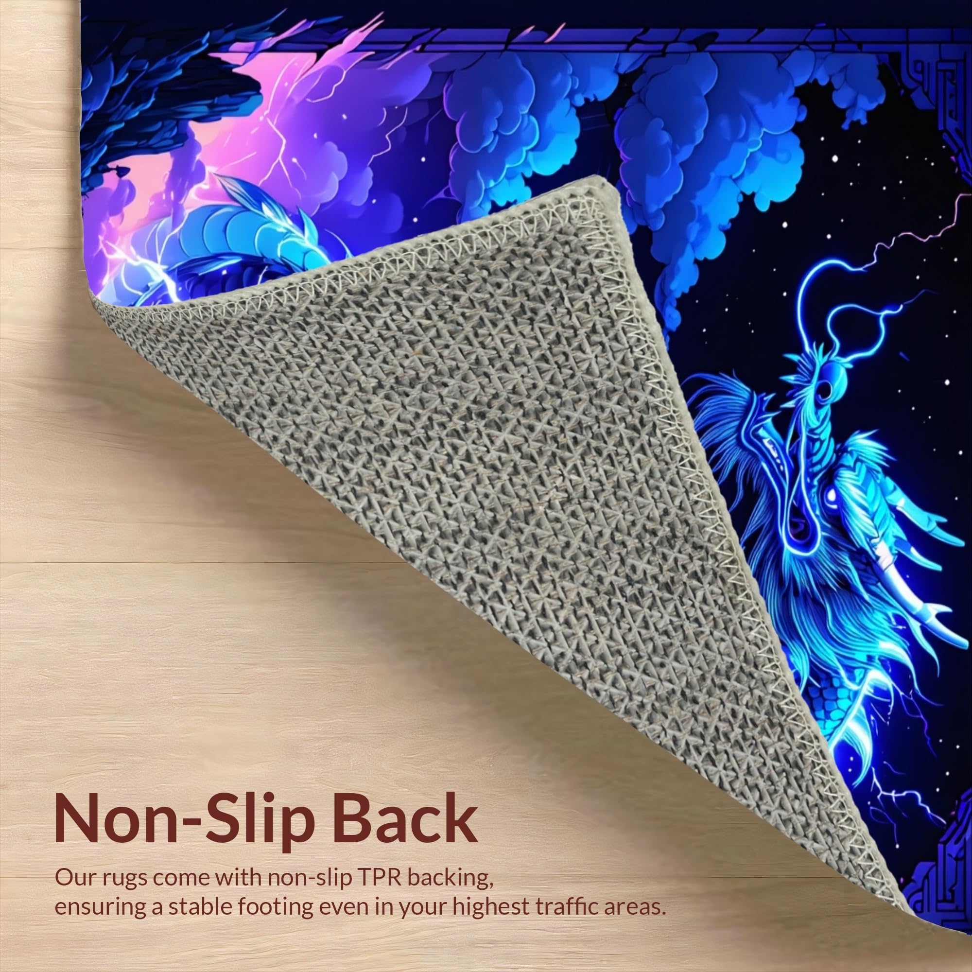 Ultra Soft Area Rug, Non Slip, Stain Resistant, Washable Area Rugs for Living Room, Bedroom, Magical Lightning Creature Artwork(Blue) Overview: