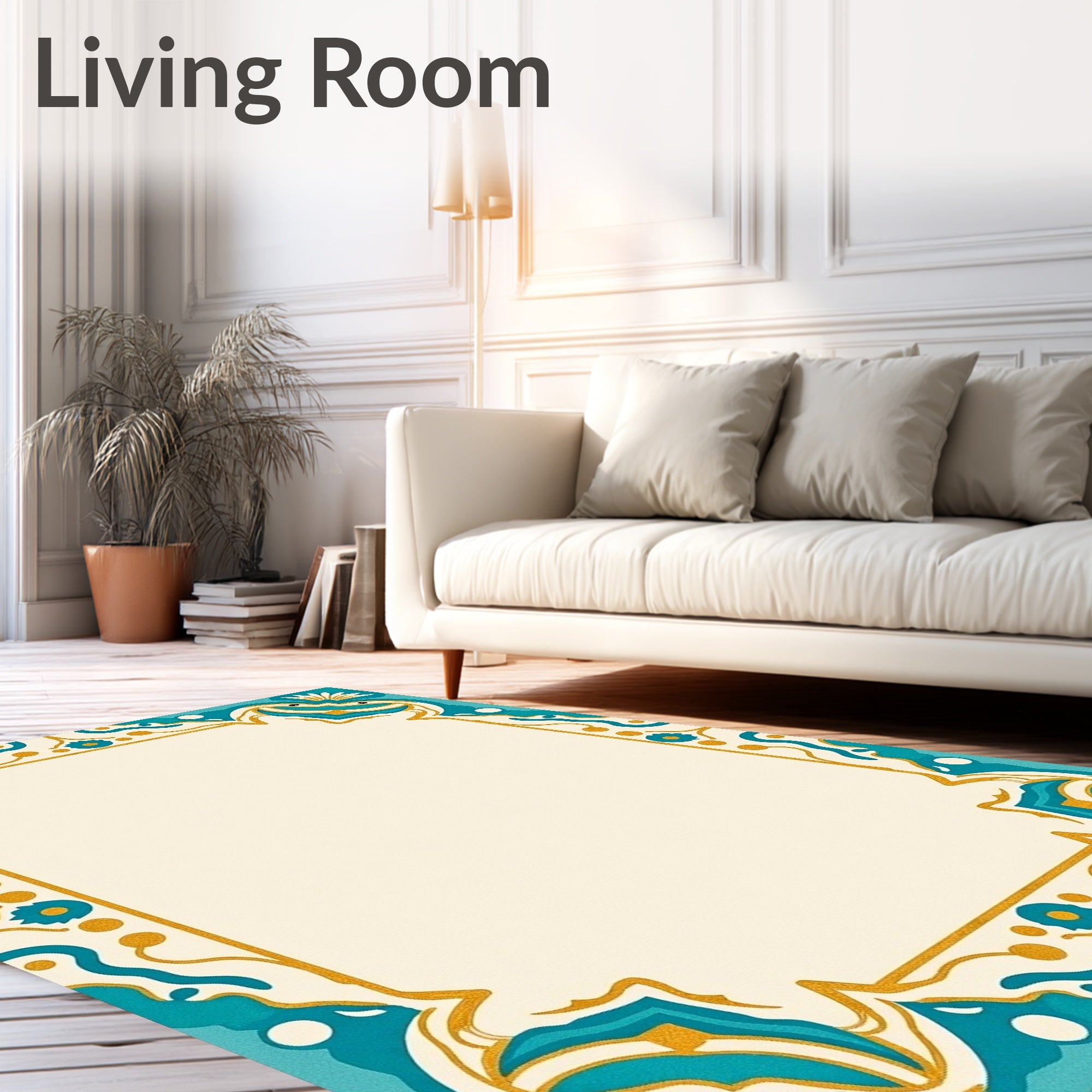 Ultra Soft Area Rug, Non Slip, Stain Resistant, Washable Area Rugs for Living Room, Bedroom, Marine Seashore Treasure Nautilus Shell Embellished(Teal) Overview: