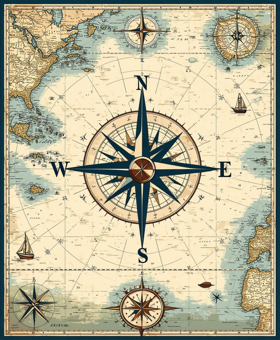Maritime Explorer Half Round Artistic Compass Navigation(Blue)