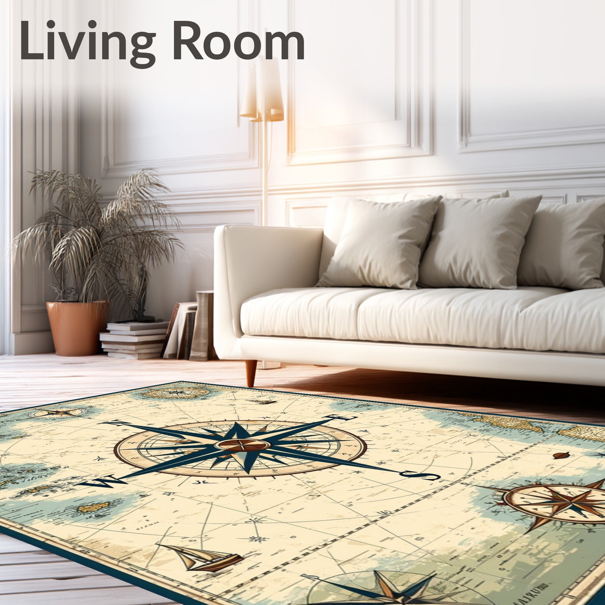 Flatwoven High Traffic Area Rug, Maritime Explorer Half Round Artistic Compass Navigation, Non Slip, Stain Resistant, Washable Area Rugs for Living Room, Bedroom (Blue) Overview: