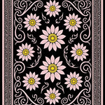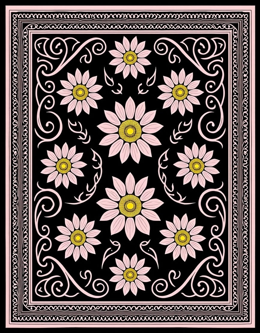 Meadow Bloom Trellis Motif with Stylized Petals and Interlocking Vines(Black)