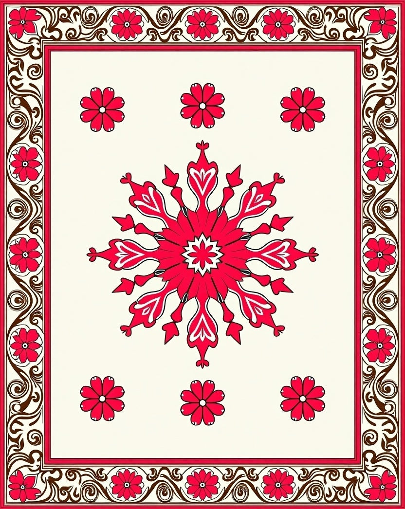 Medallion Burst Tapestry with Intricate Floral Motifs and Ornate Details(Red)