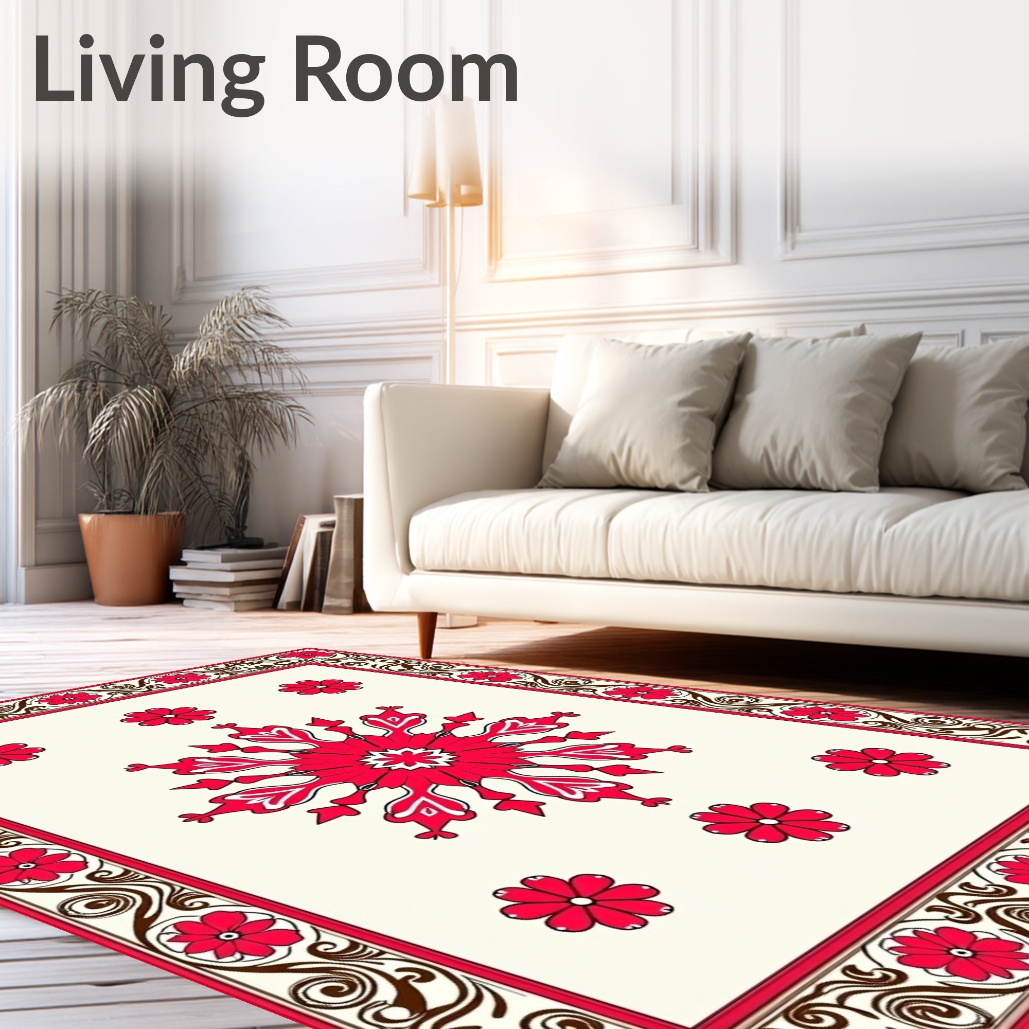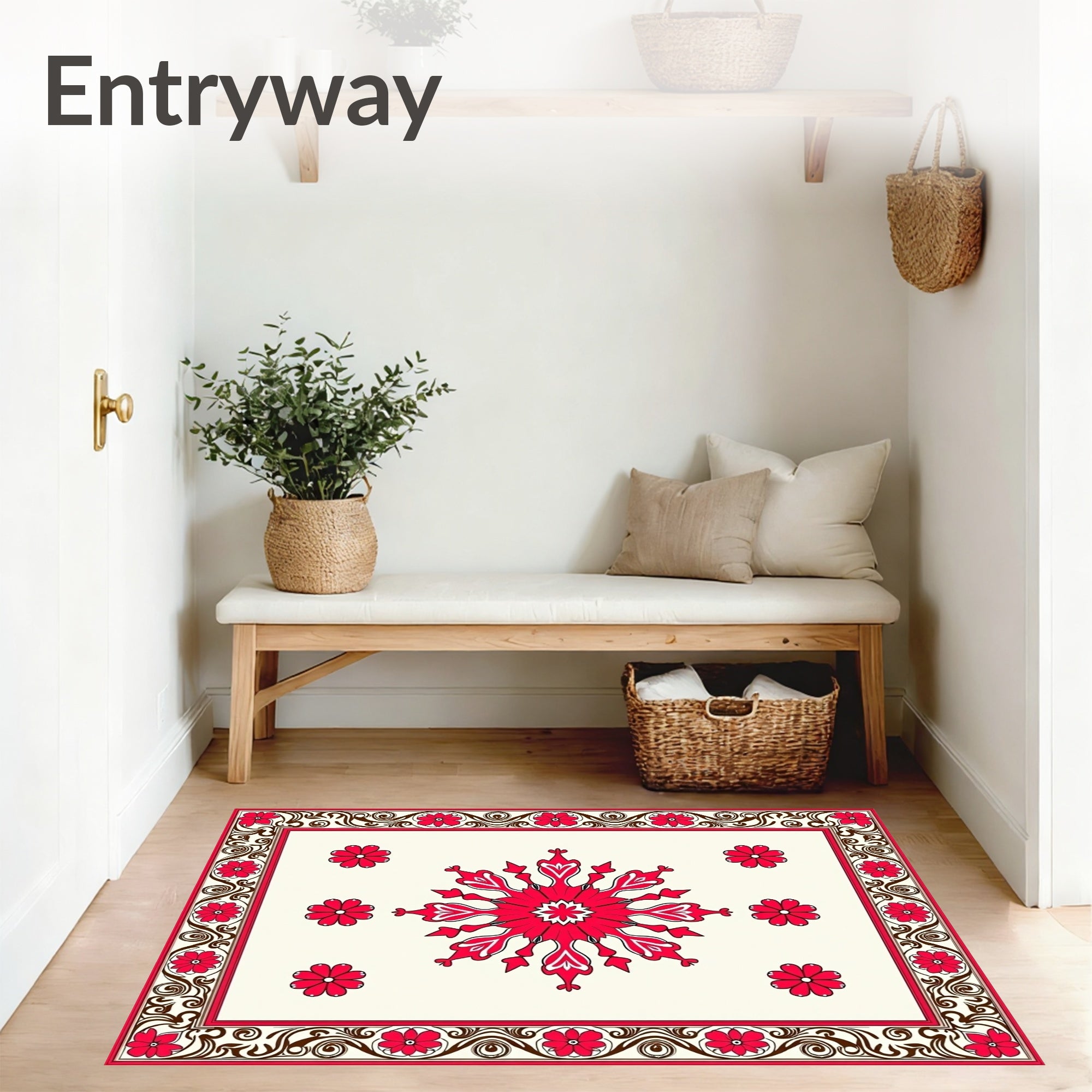 Flatwoven High Traffic Area Rug, Medallion Burst Tapestry with Intricate Floral Motifs and Ornate Details, Non Slip, Stain Resistant, Washable Area Rugs for Living Room, Bedroom (Red) Overview:
